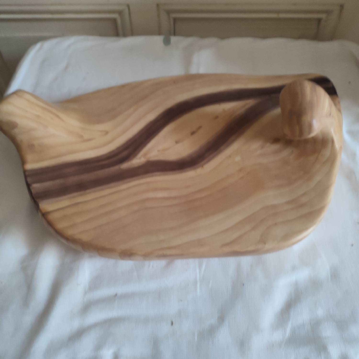 Beautiful free-form cheese board by Grandjean Jourdan in Vallauris, ceramic with a faux olive wood finish