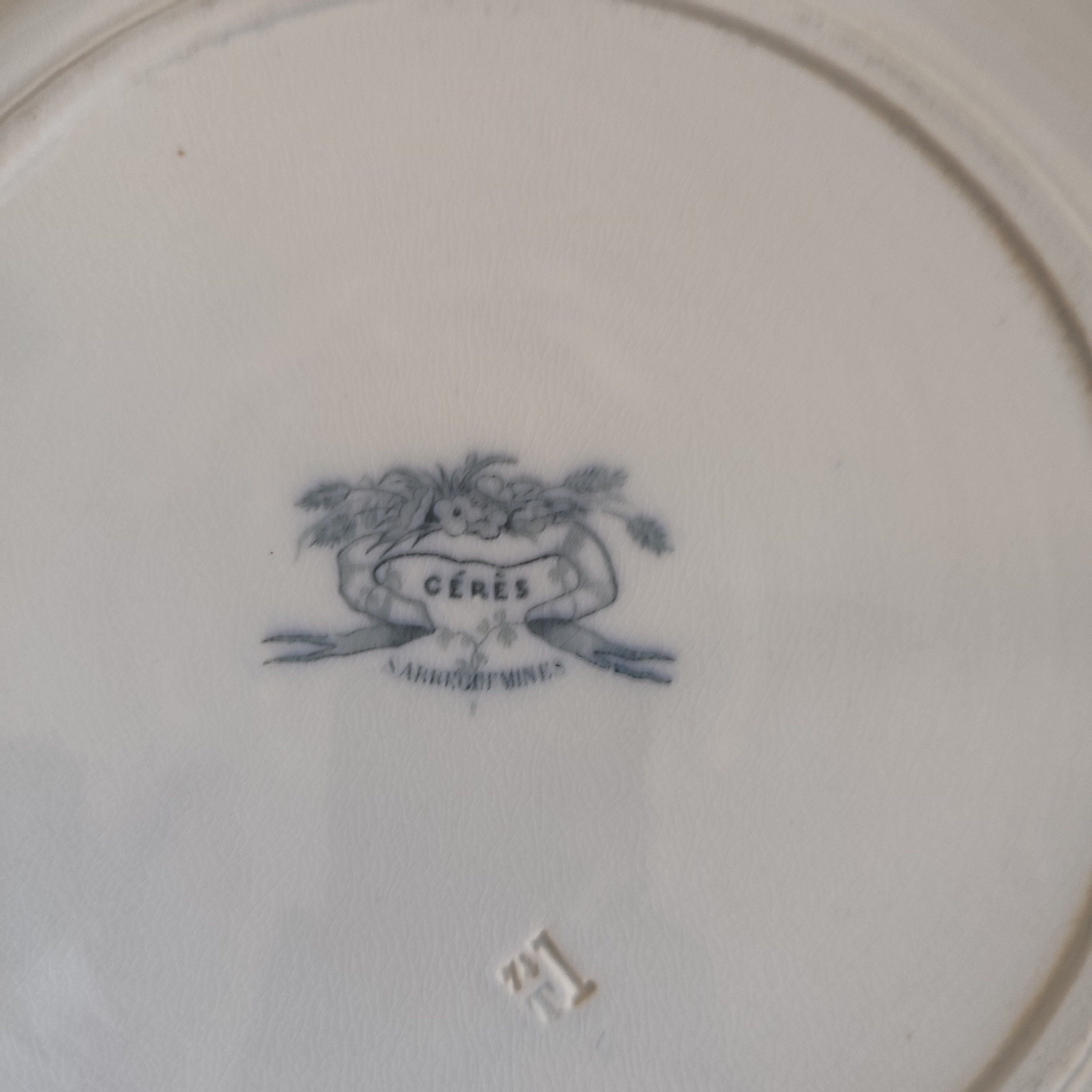 Sarreguemines large round earthenware dish, Cérès model, blue flower decoration, French earthenware
