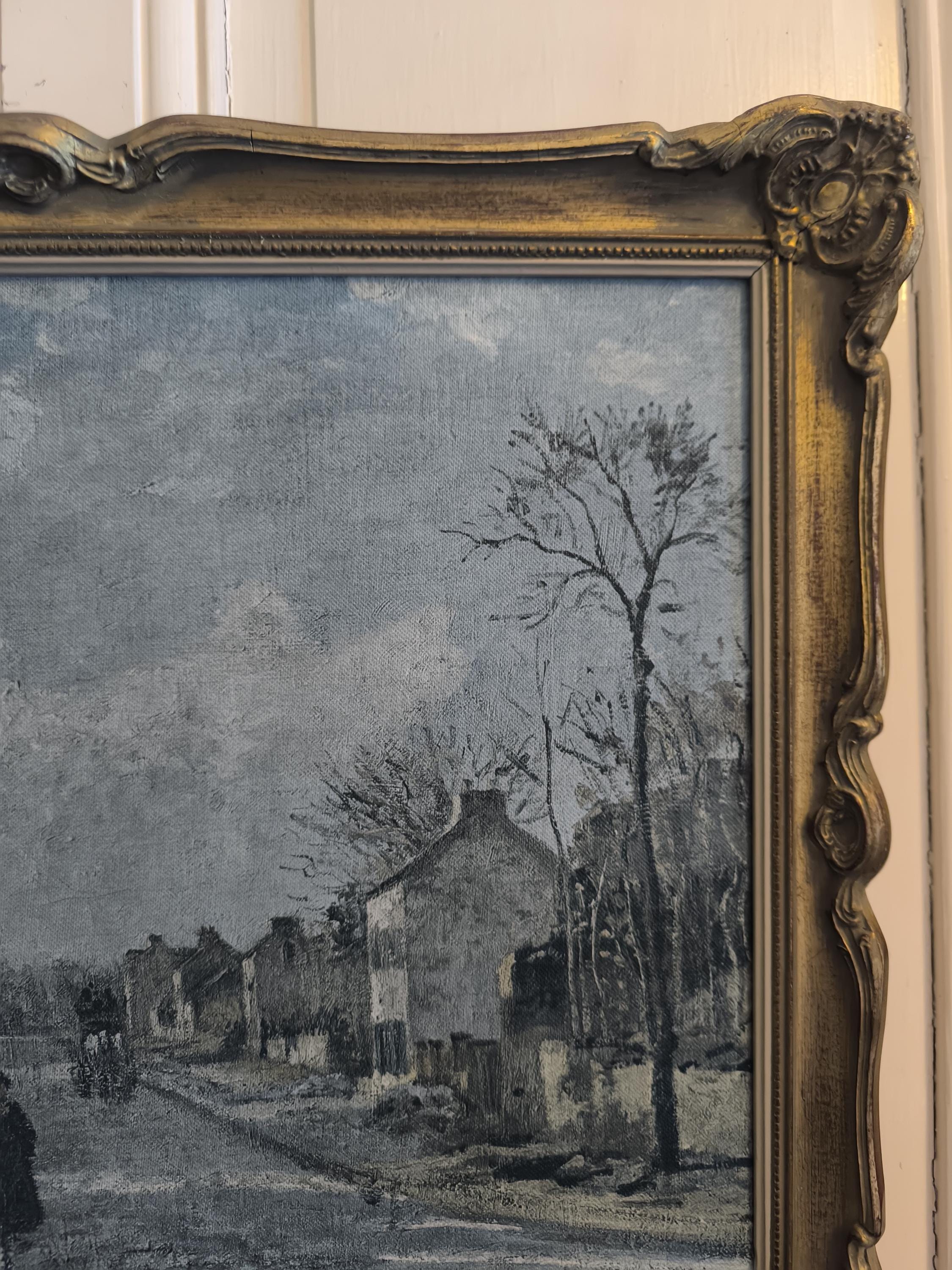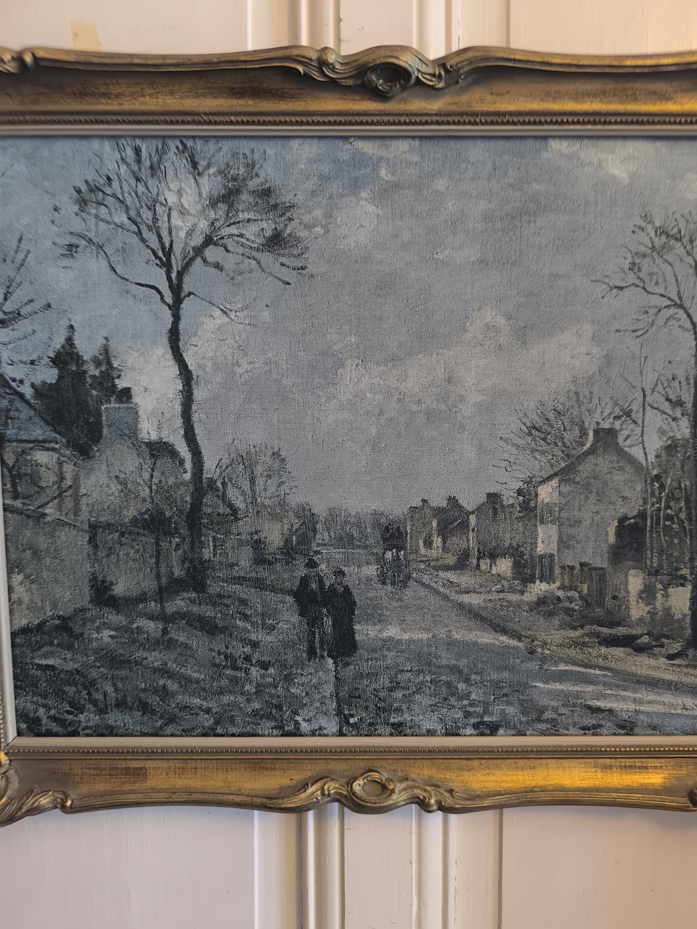 Pissarro painting "Route de Louveciennes" reproduction on canvas French Impressionist art Baroque gilded frame
