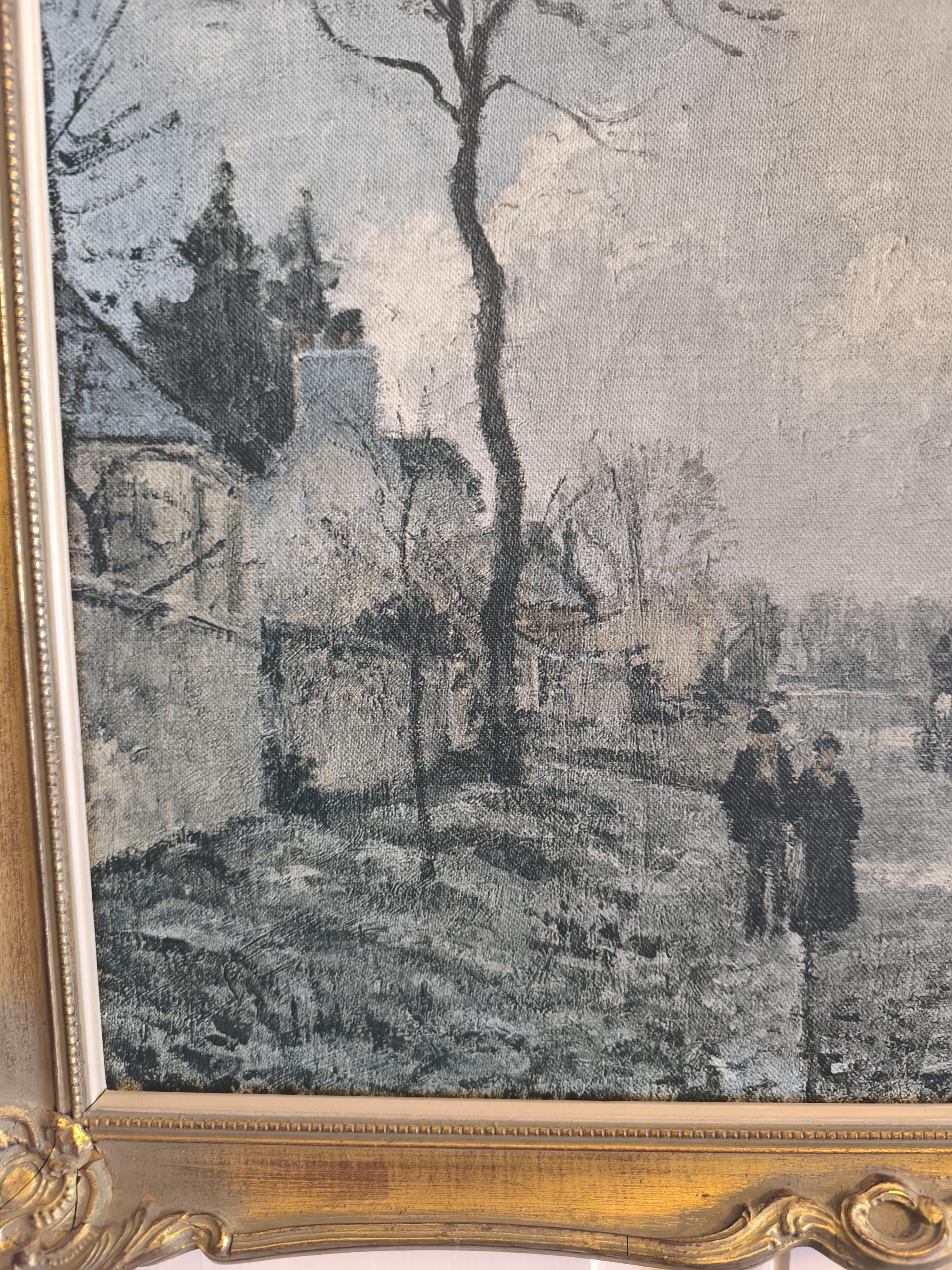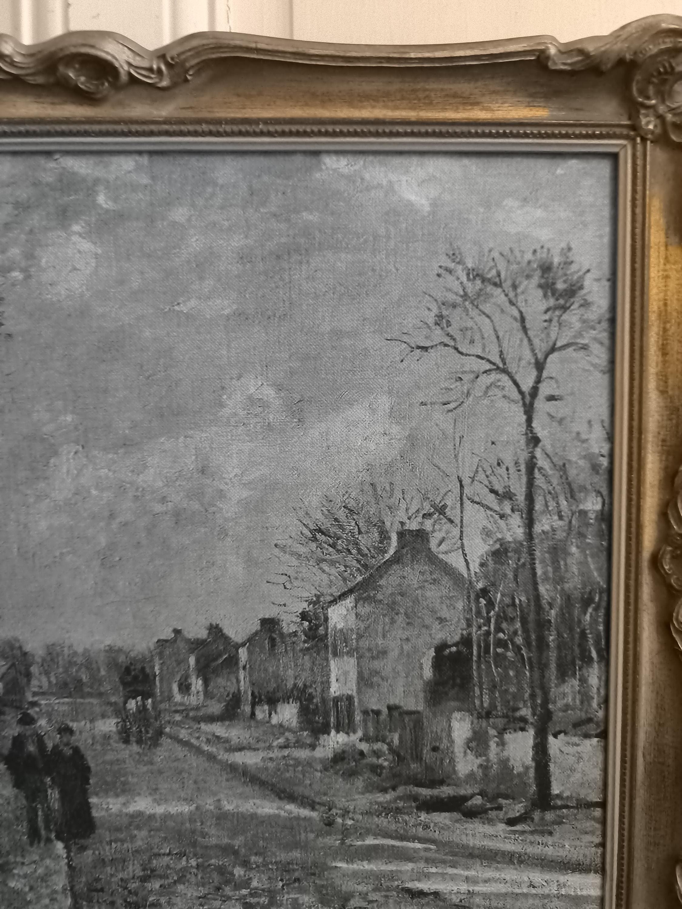 Pissarro Painting "Route de Louveciennes" - Canvas Reproduction - Baroque Gold Frame - French Impressionist Art