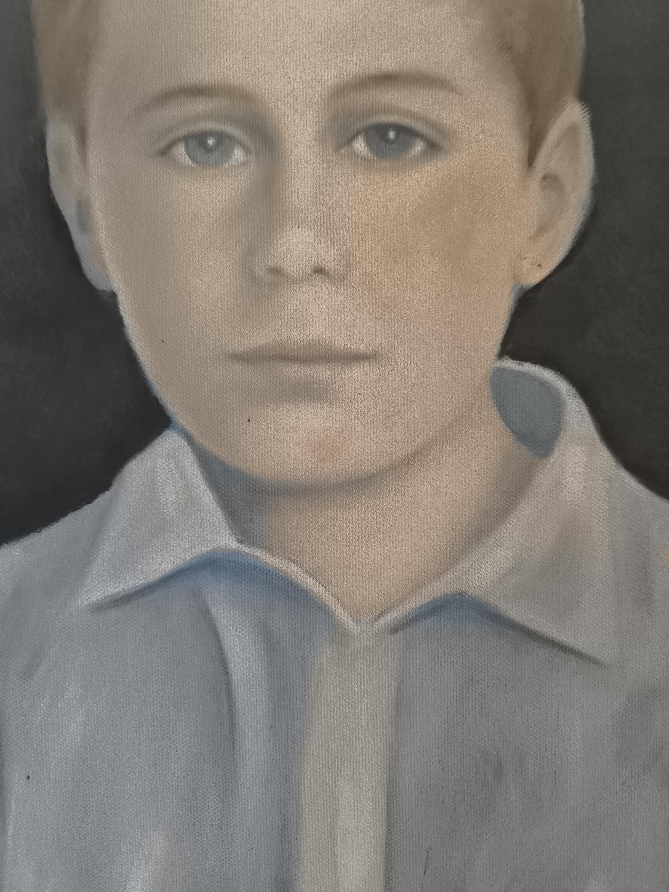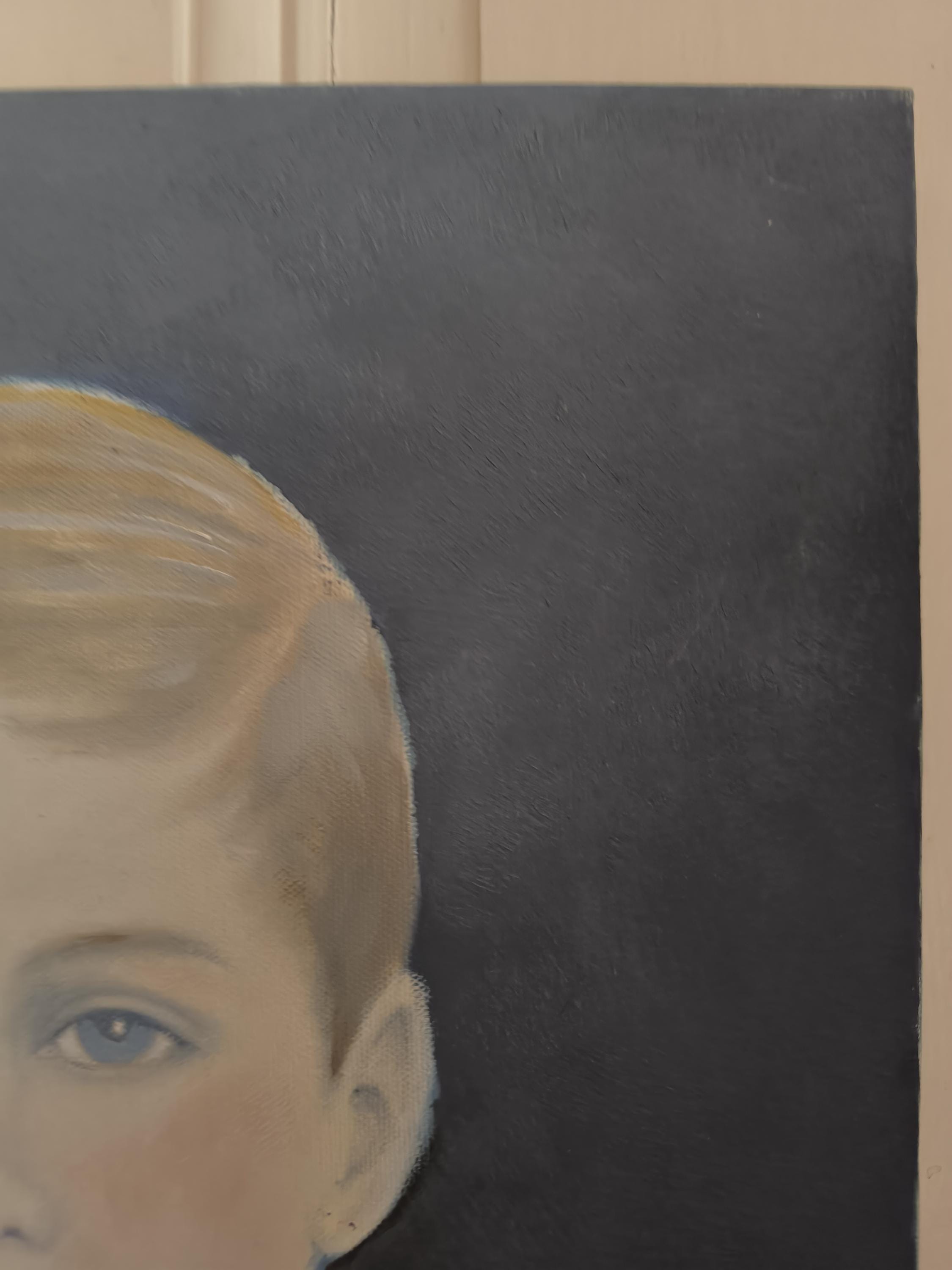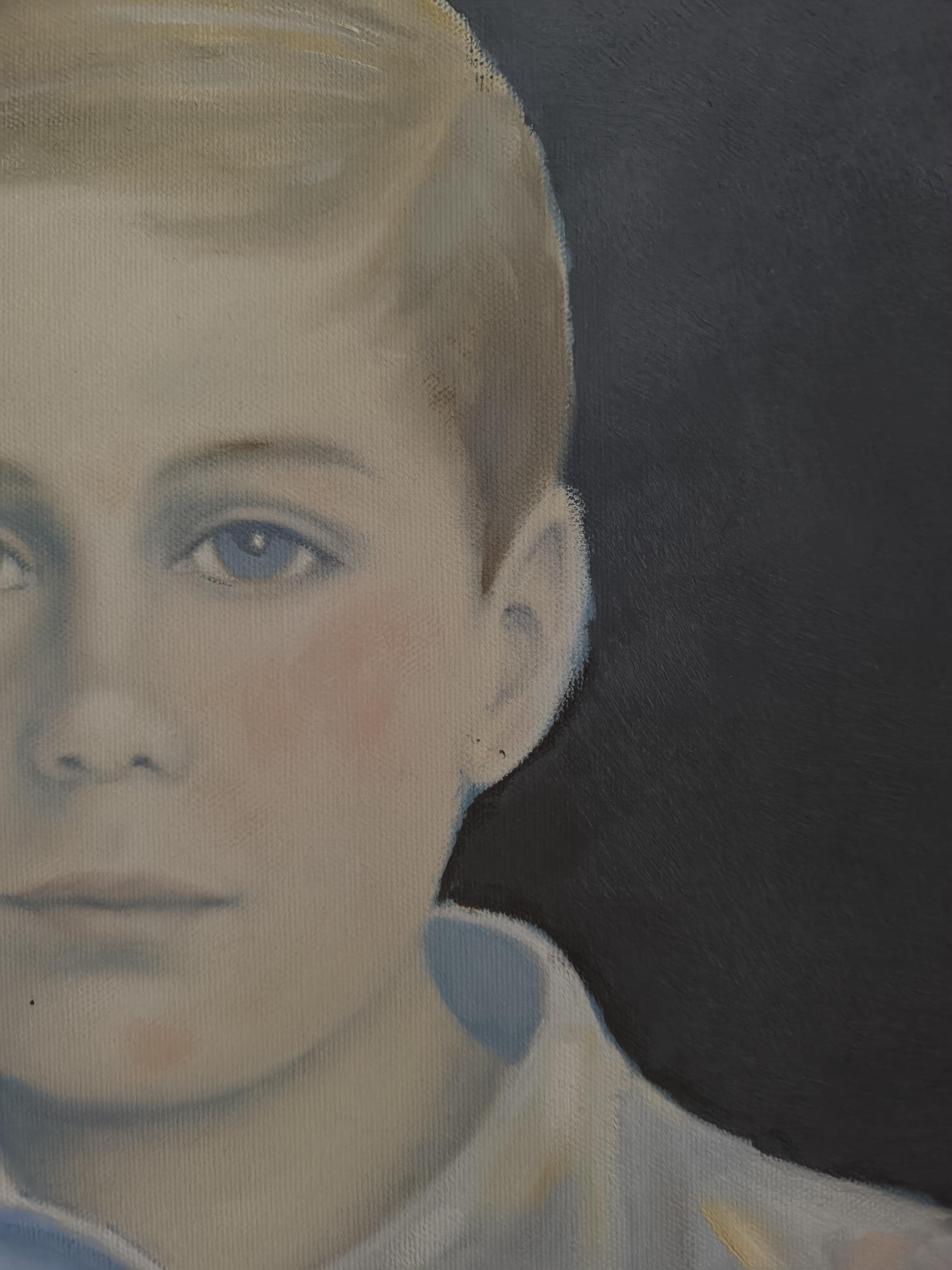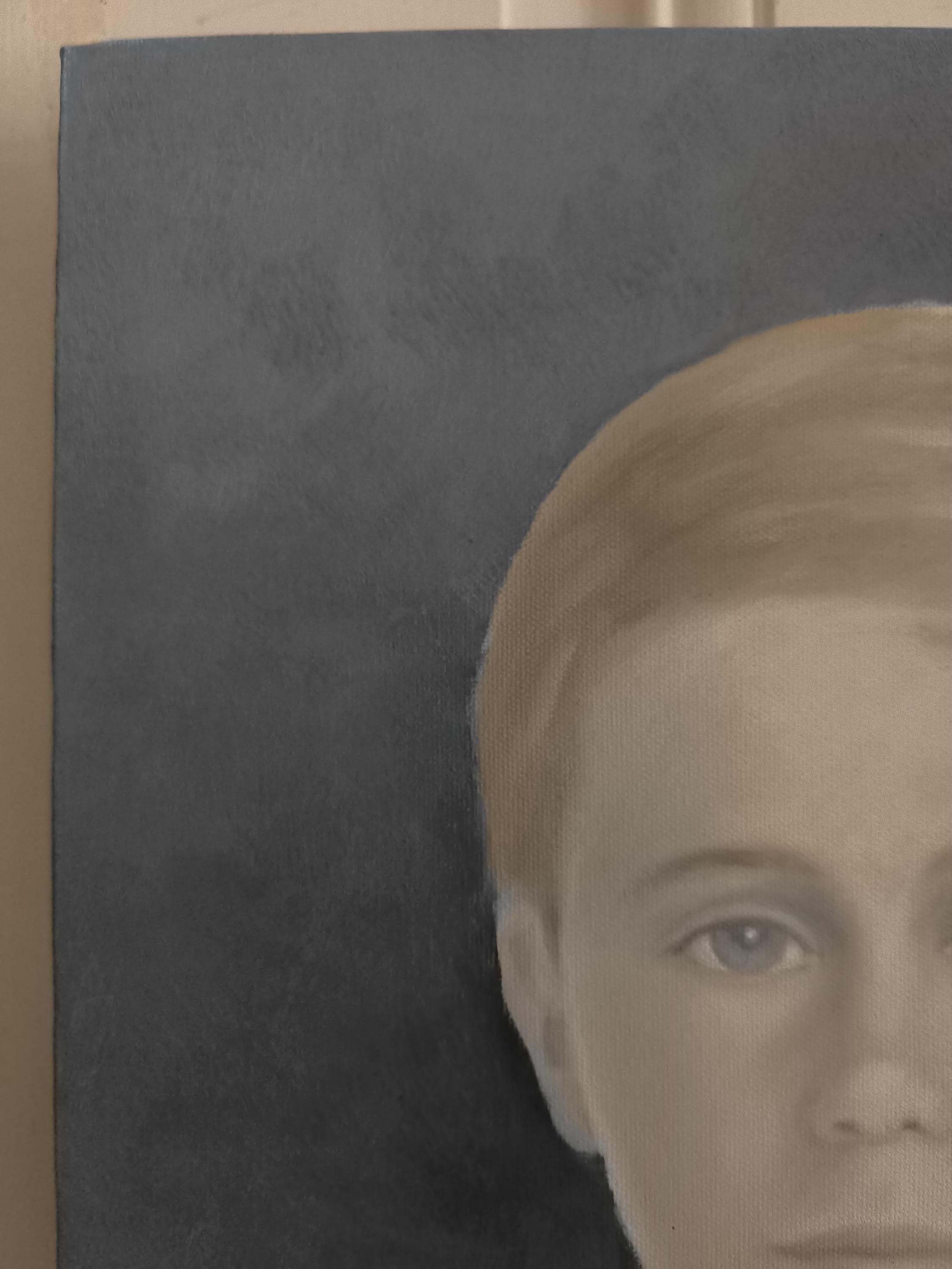 Superb Portrait of a Young Boy – Realistic Style Oil on Canvas