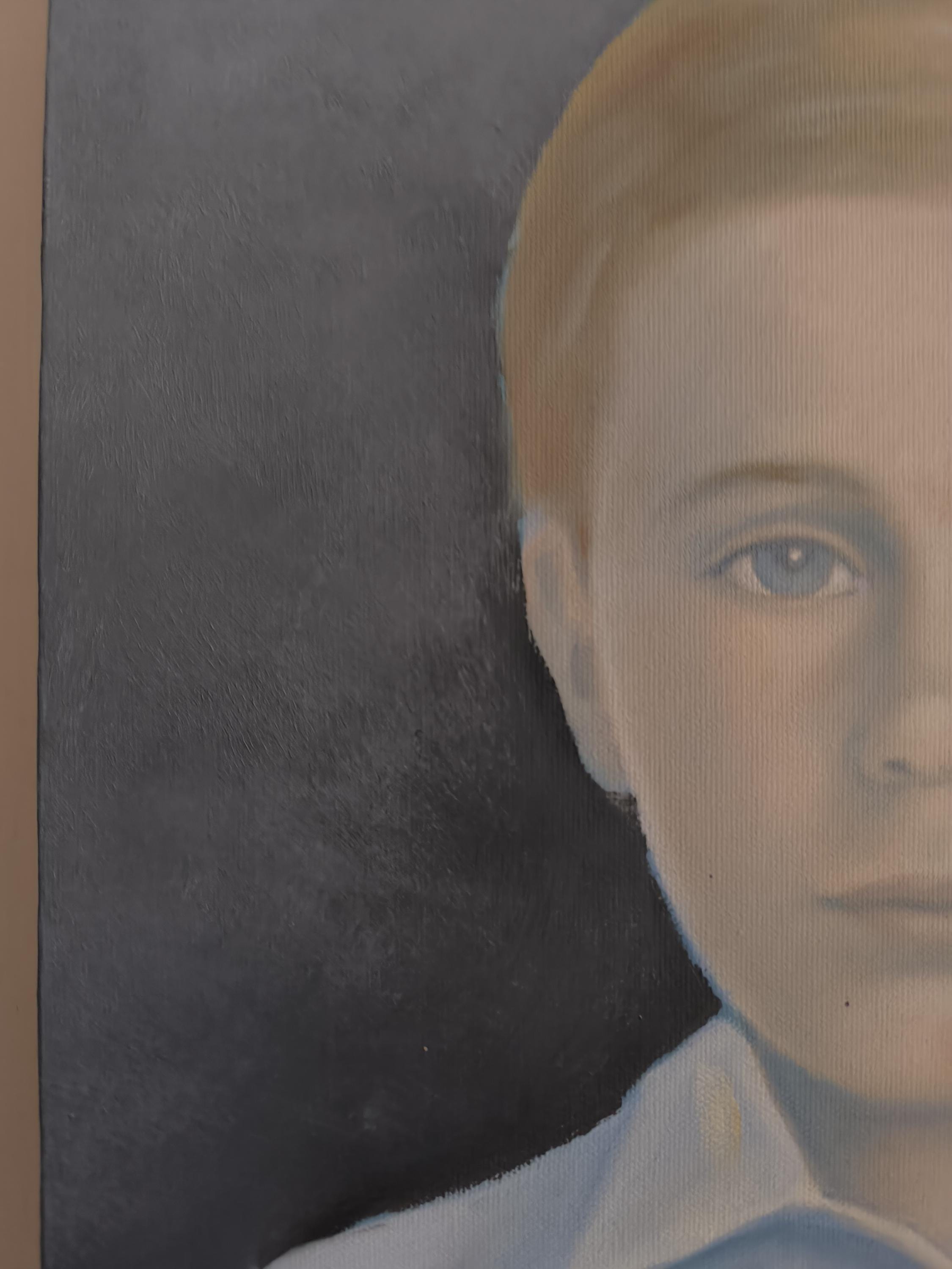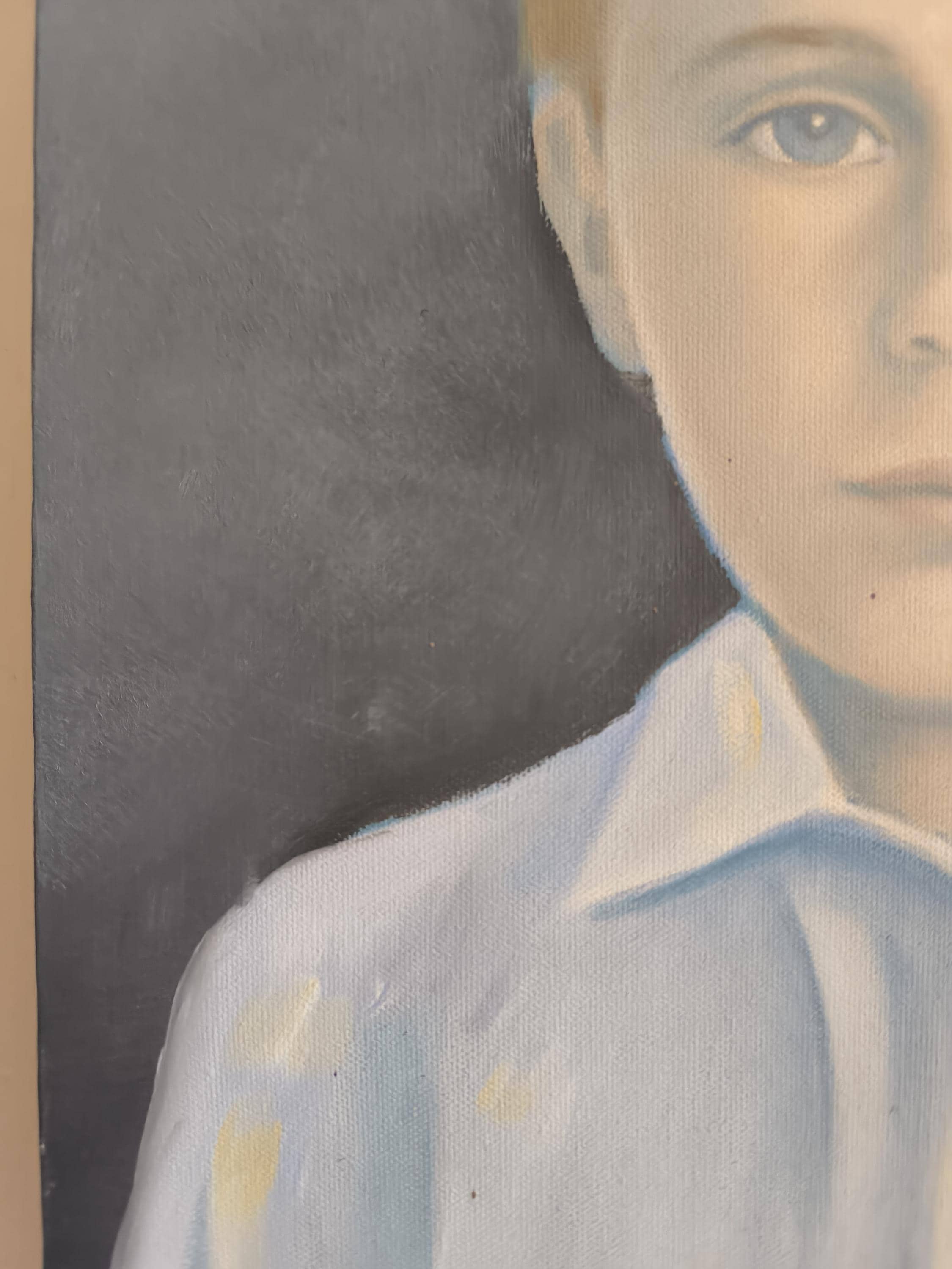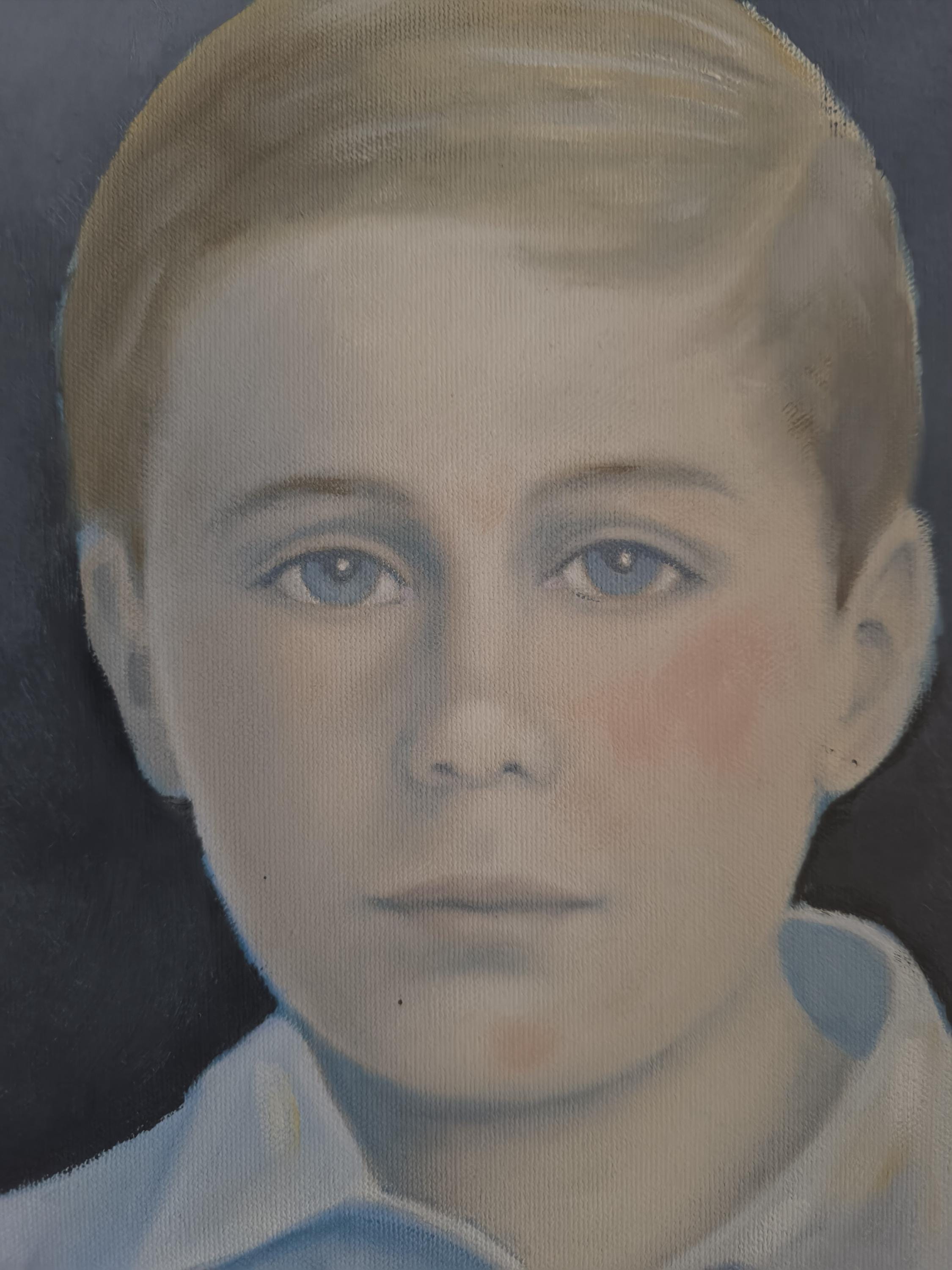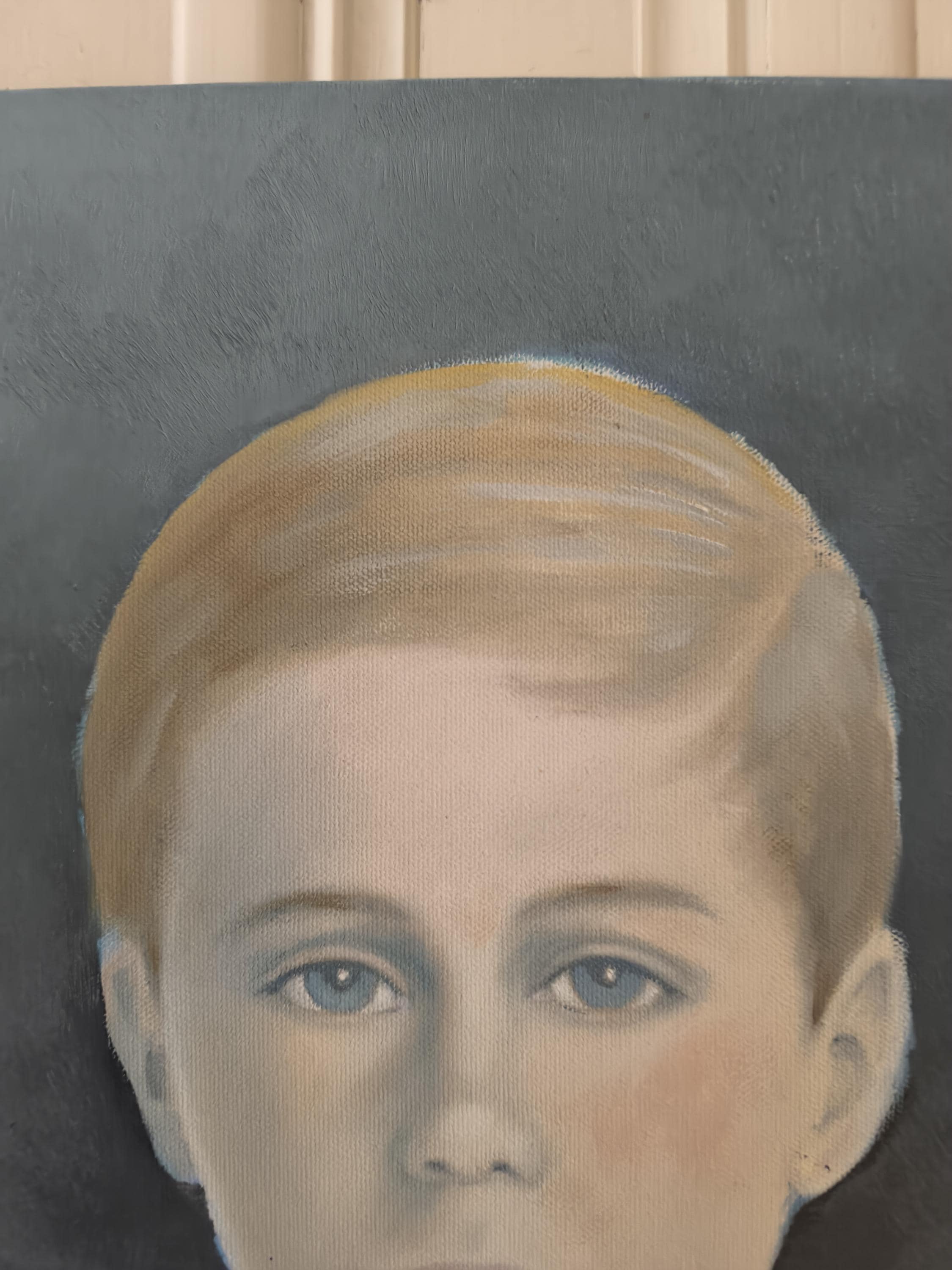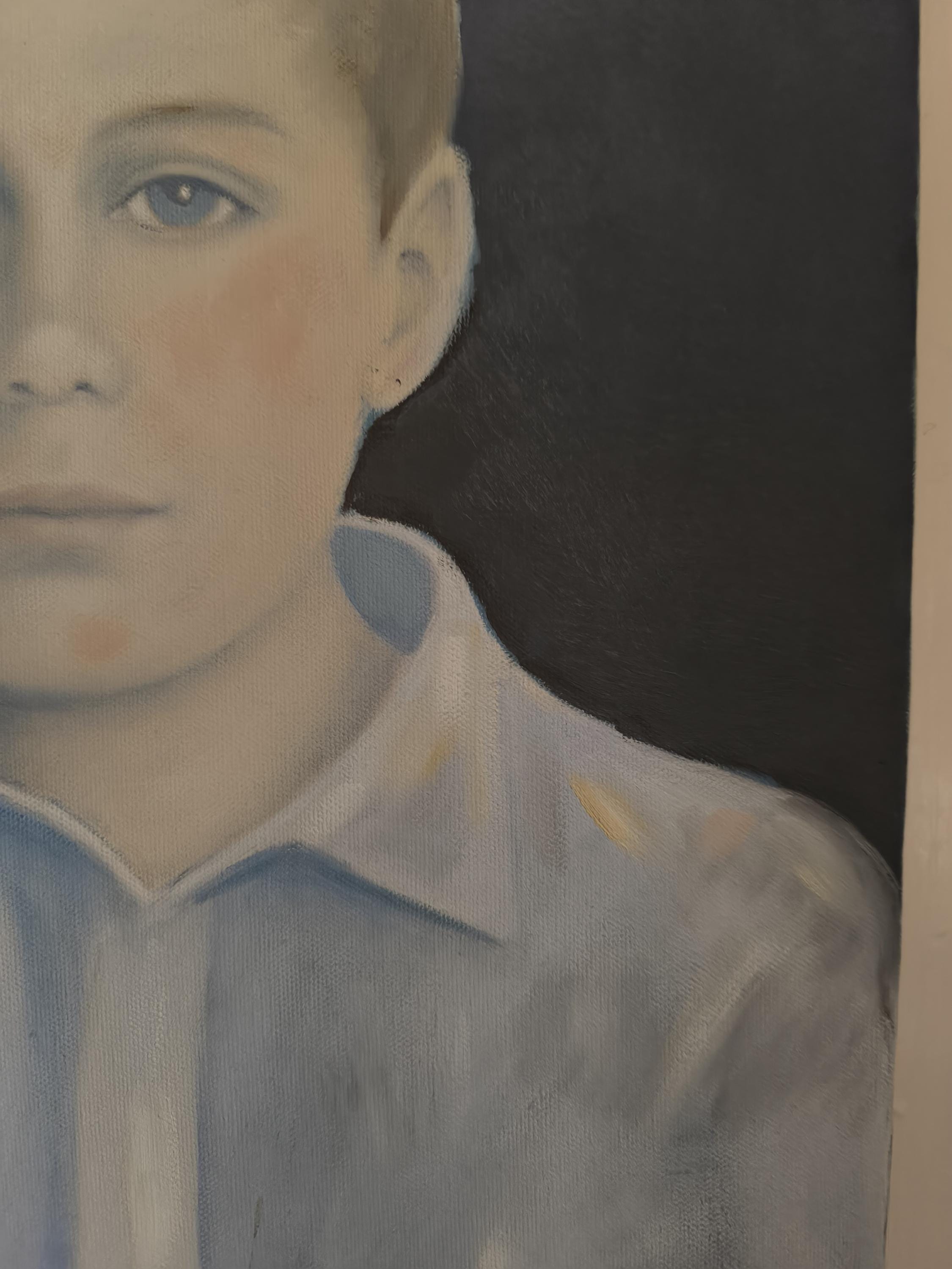Superb Portrait of a Young Boy – Realistic Style Oil on Canvas