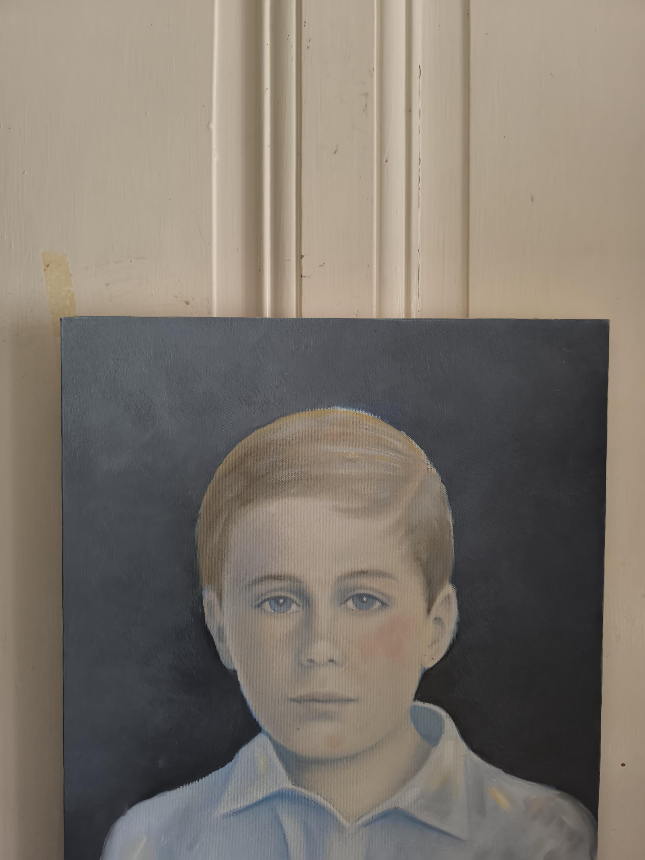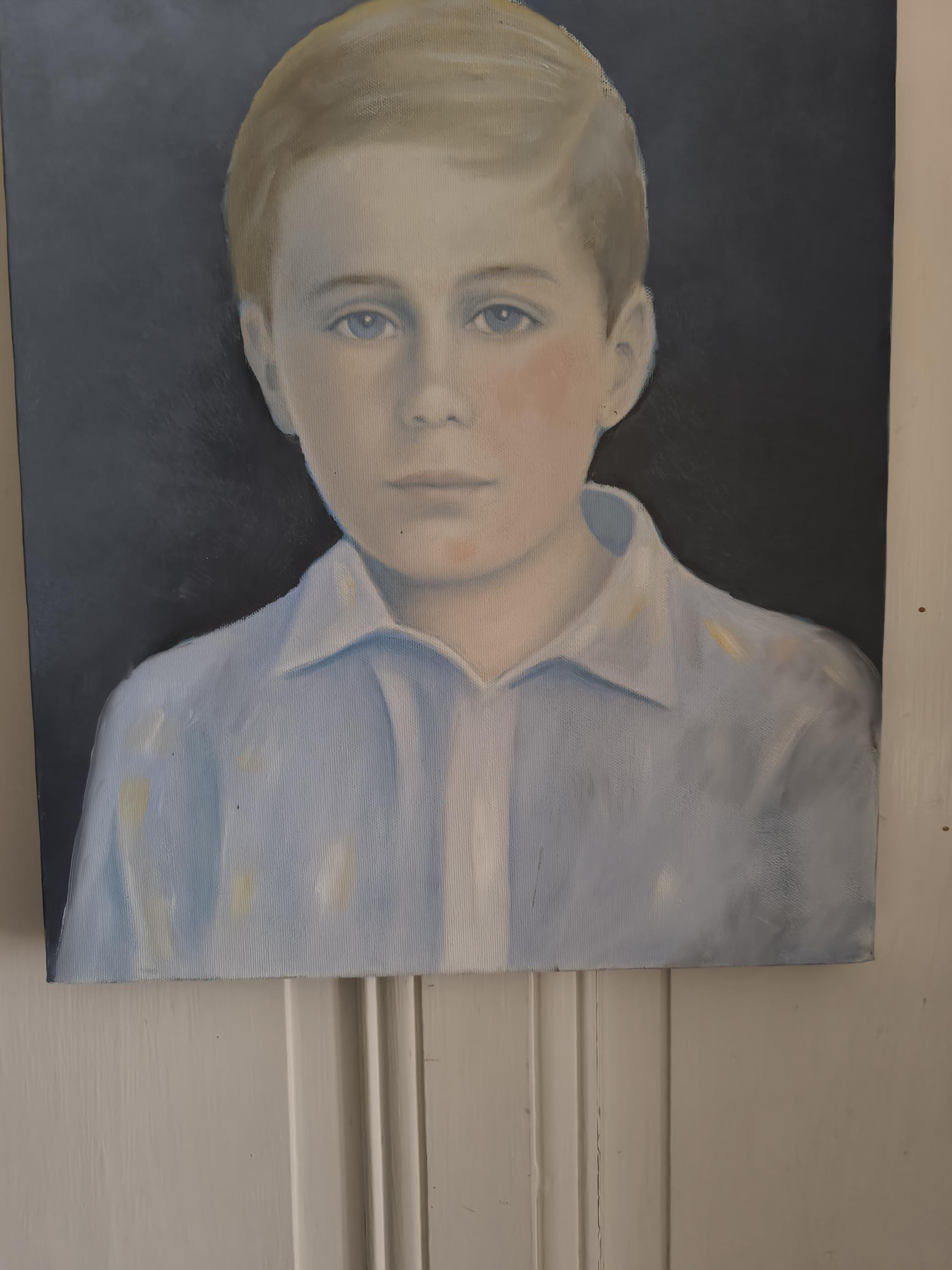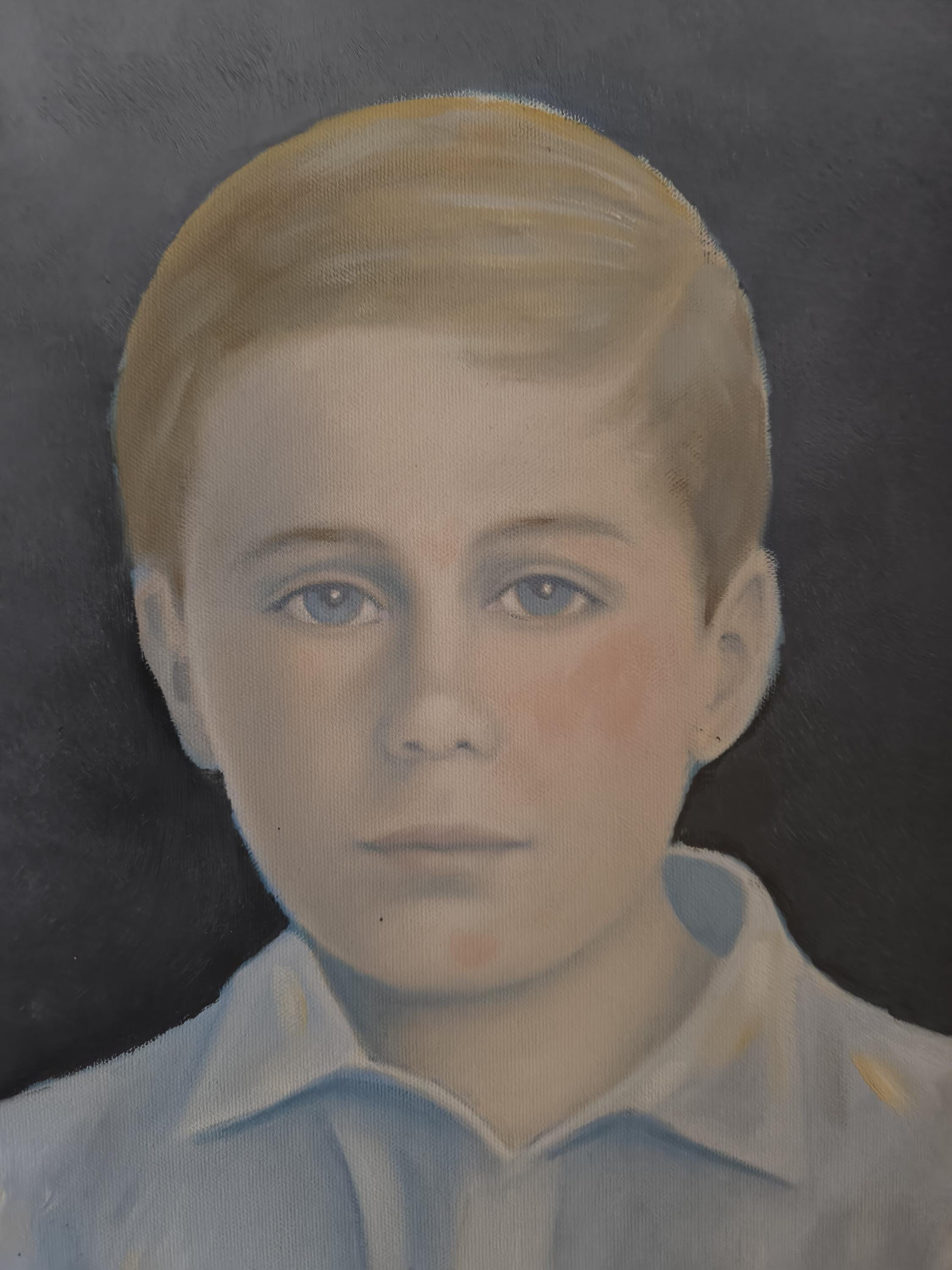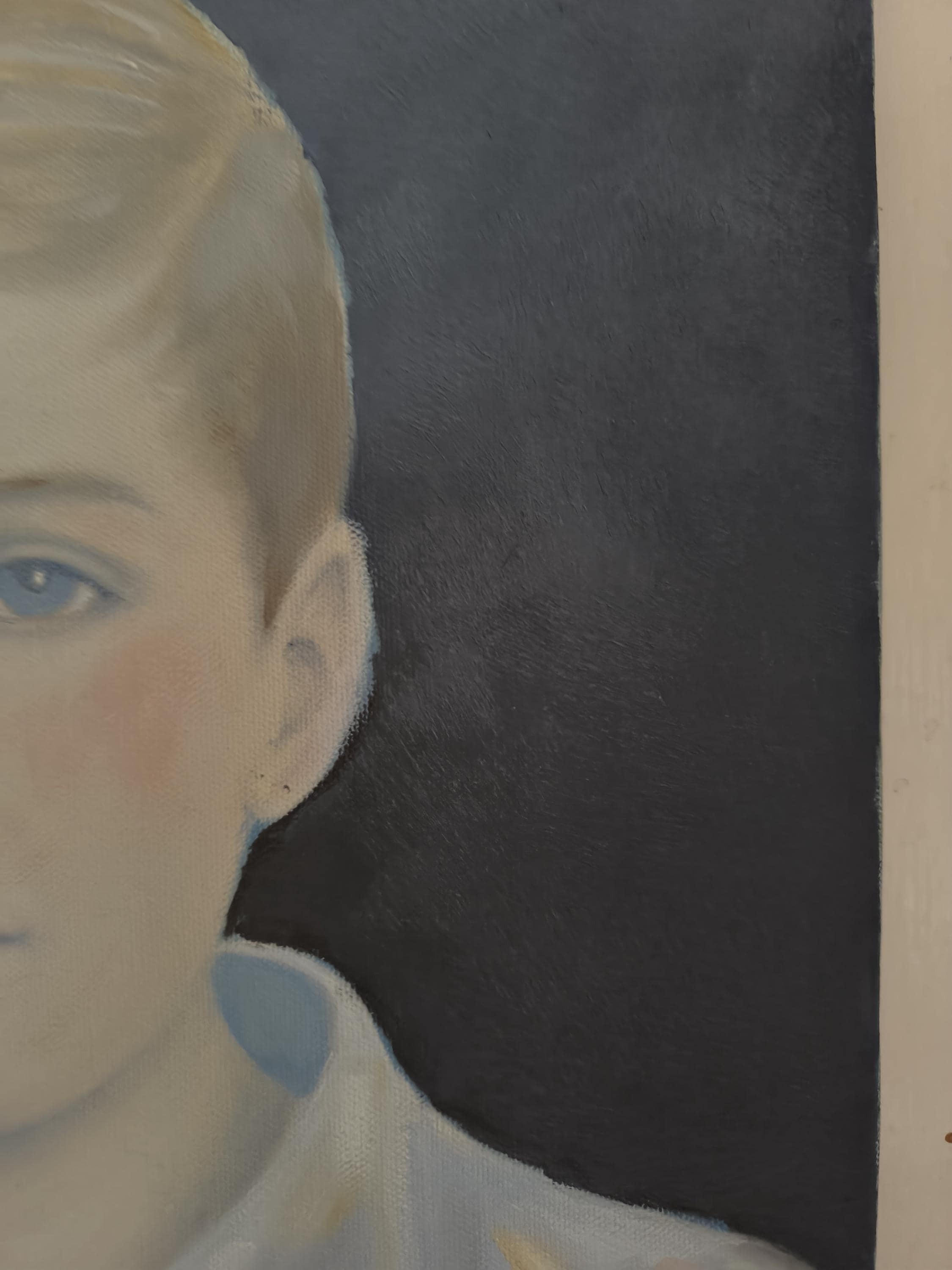 Superb Portrait of a Young Boy – Realistic Style Oil on Canvas