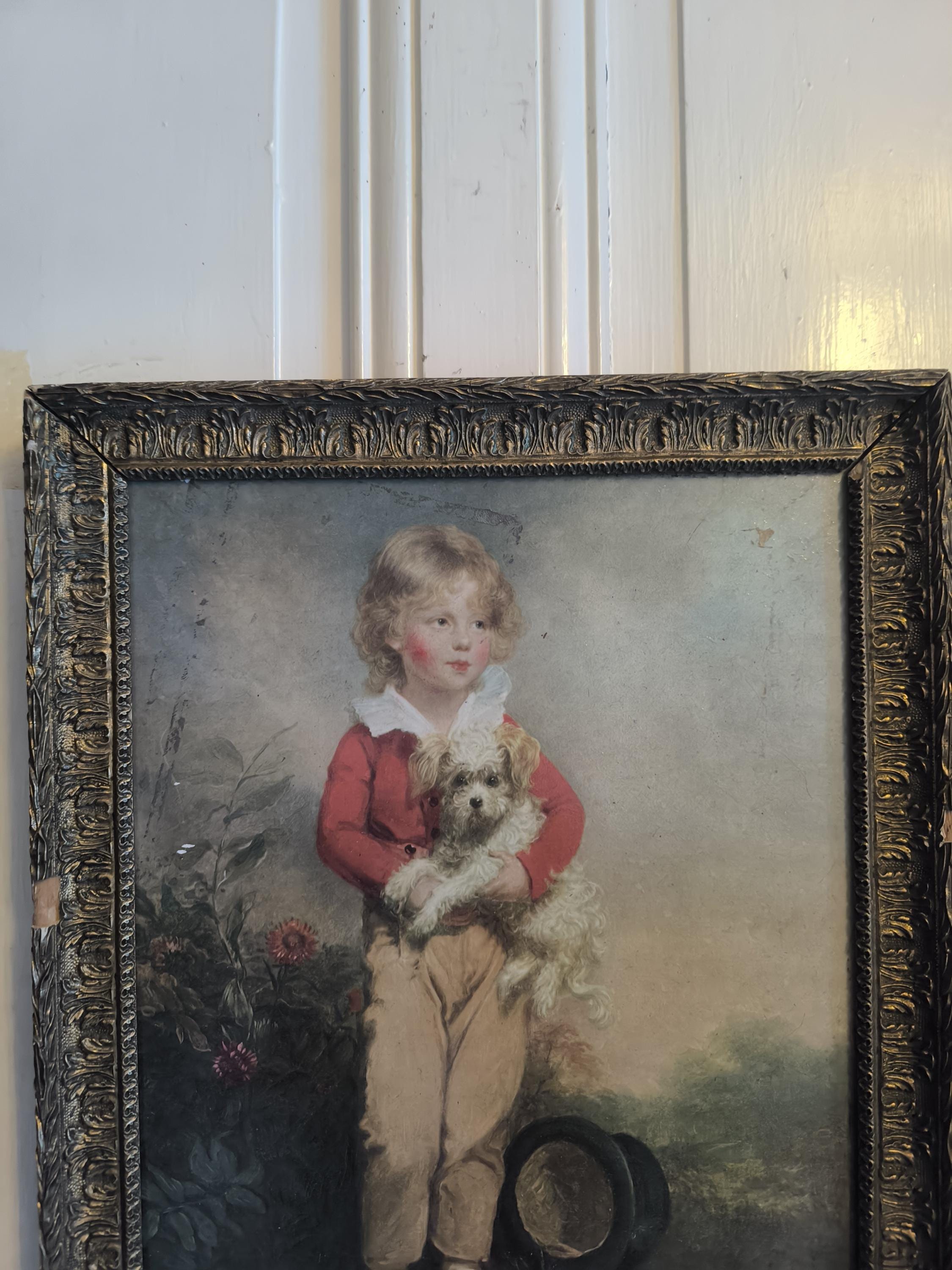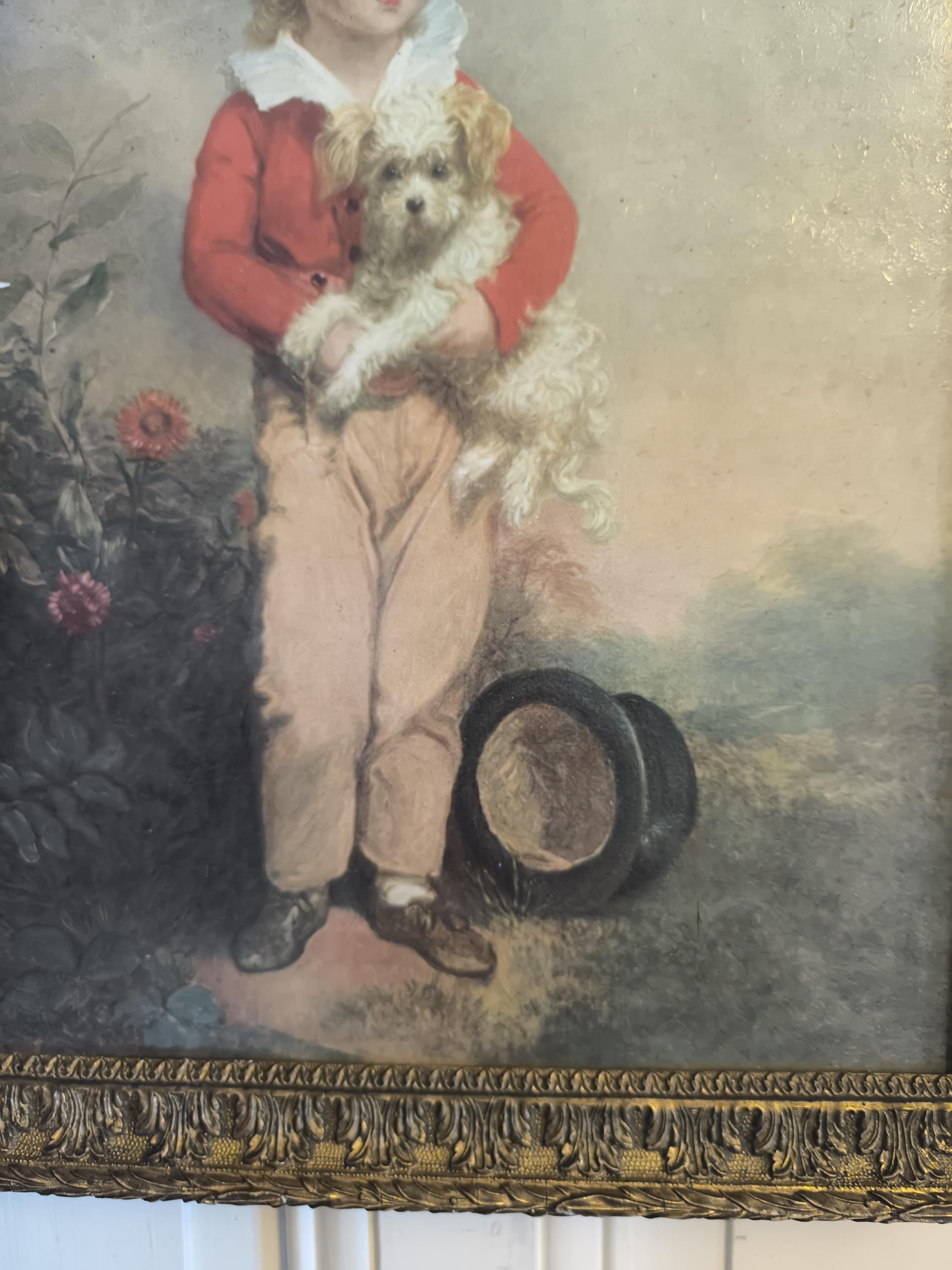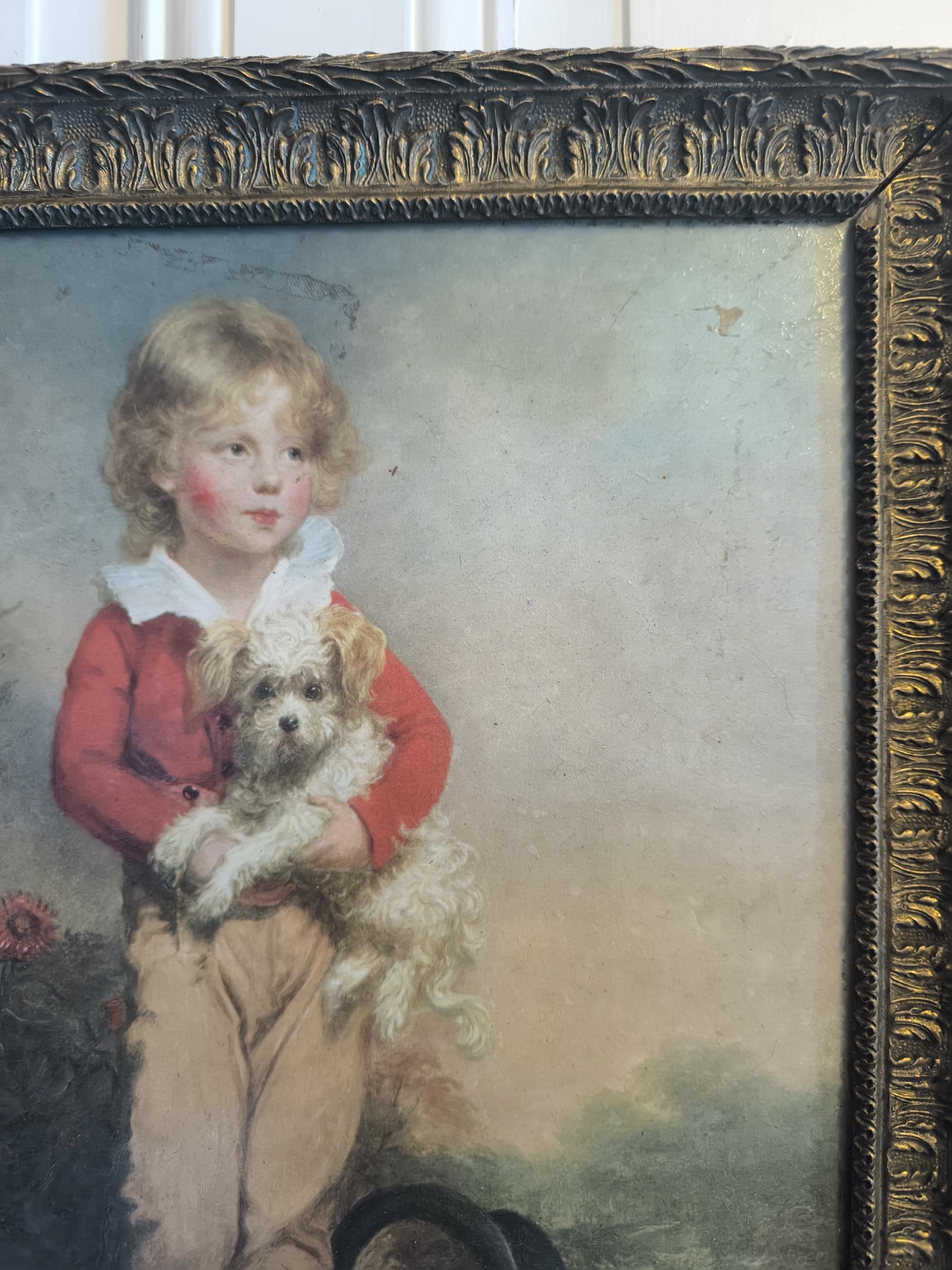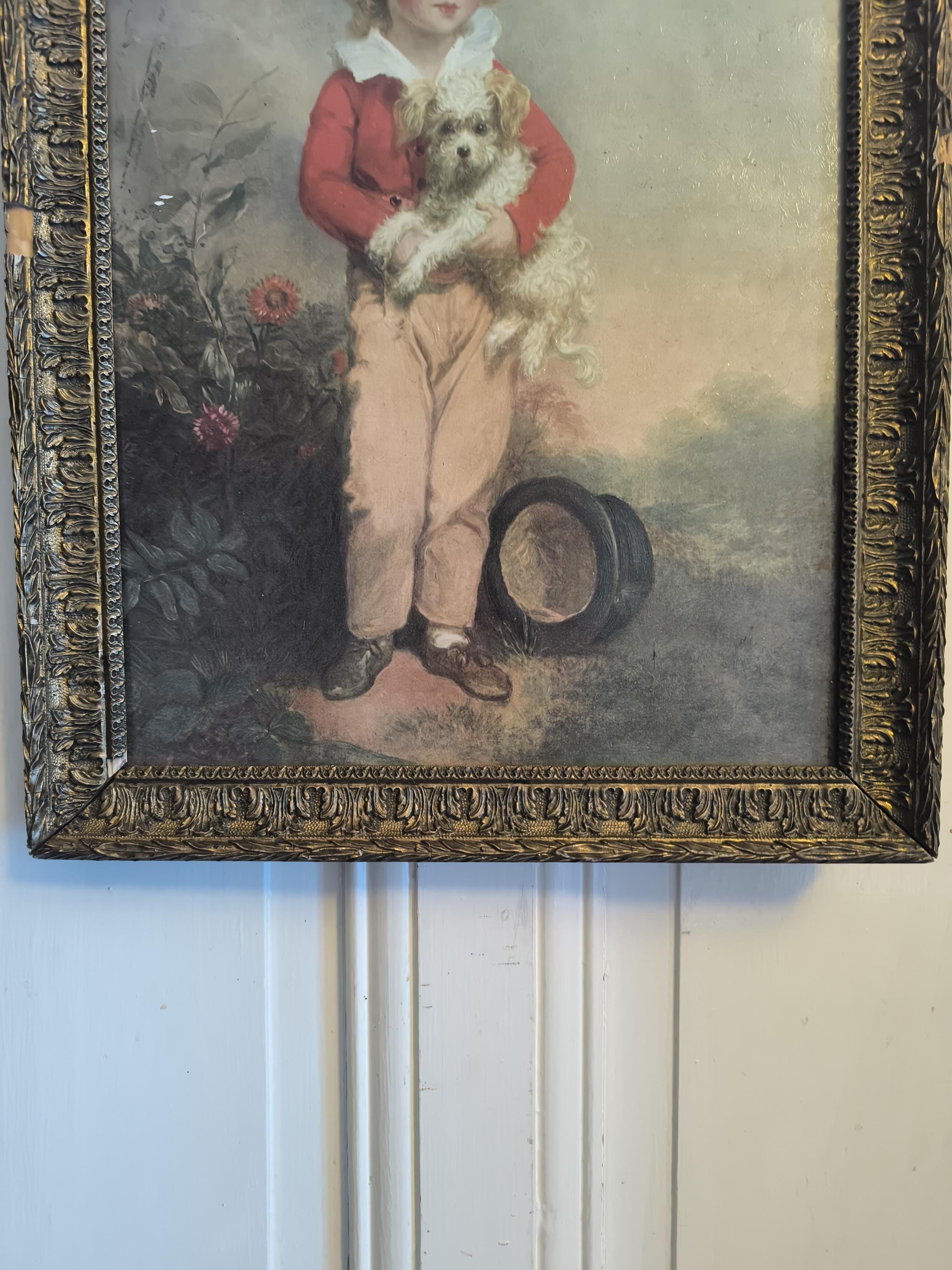 Vintage reproduction "MasterSimpson" after Arthur William Devis boy and his dog Baroque gilt frame