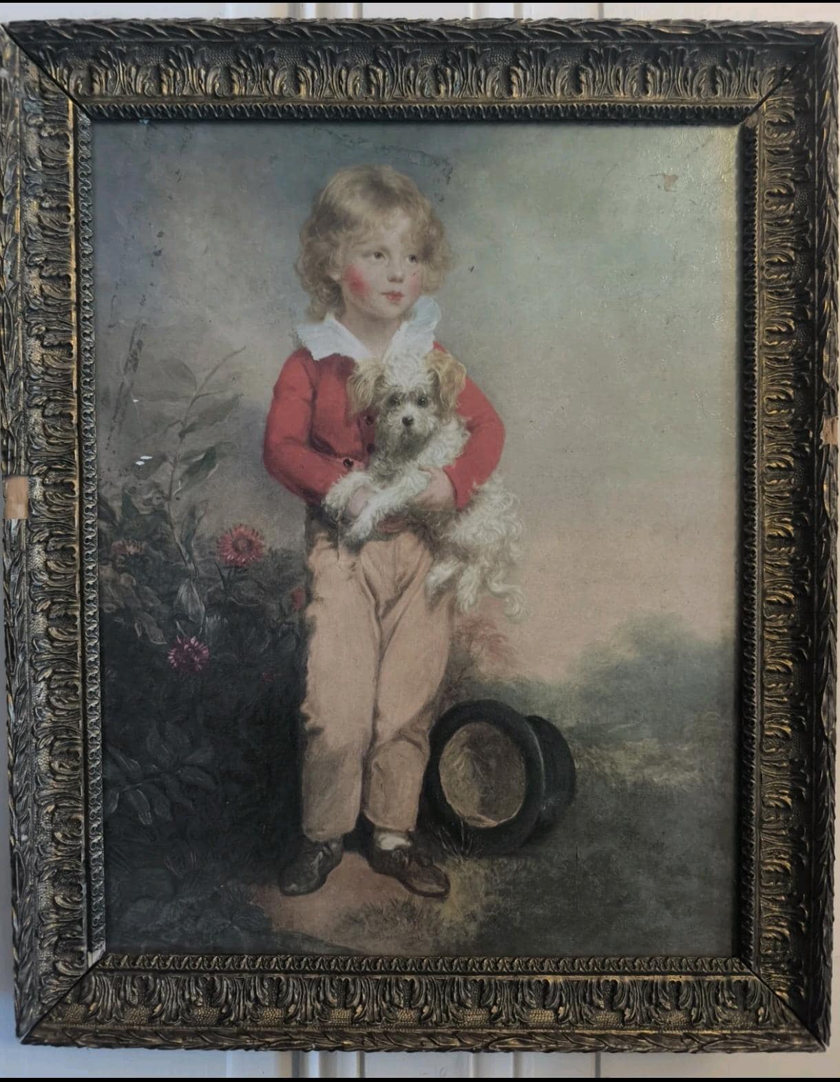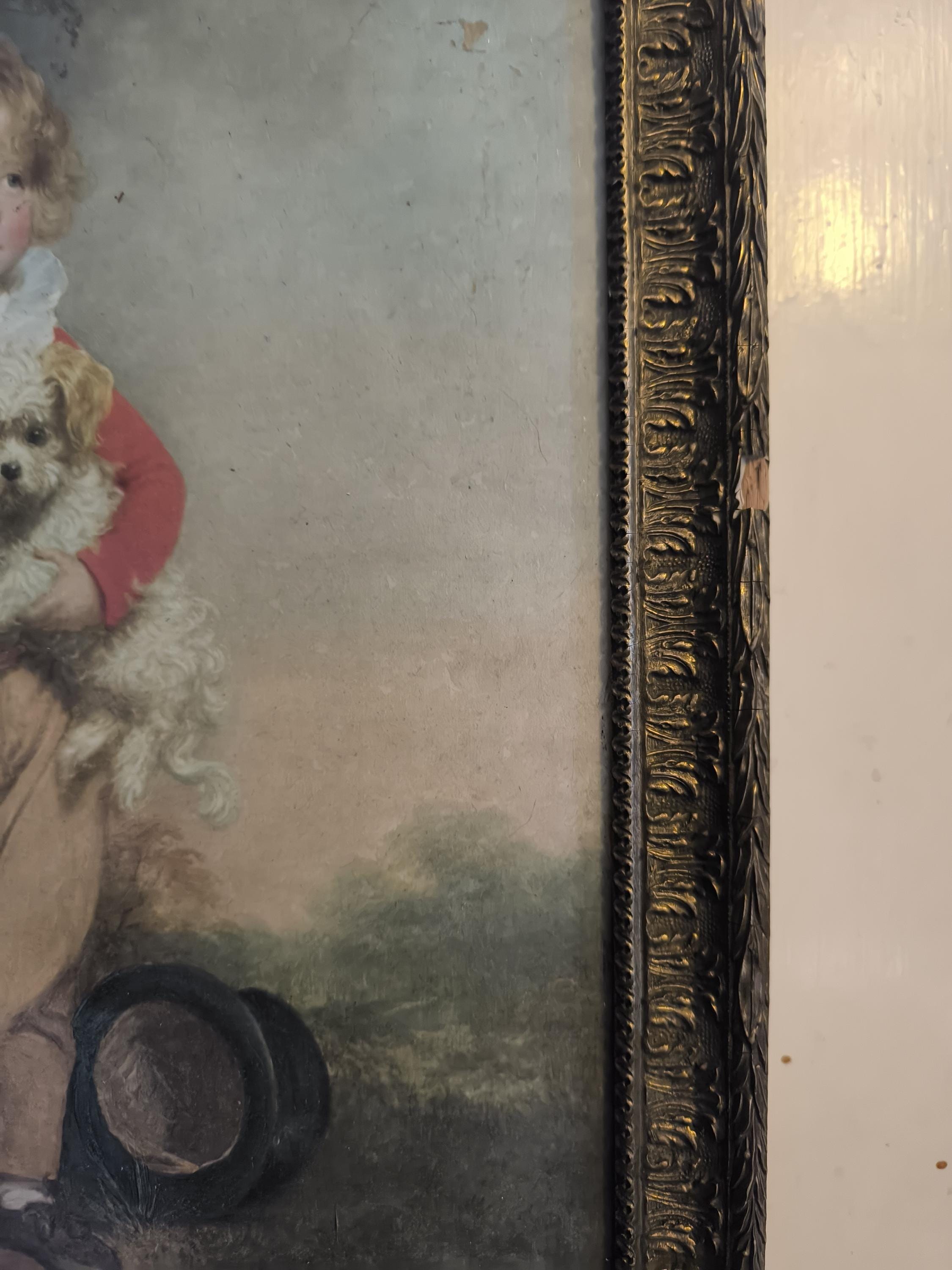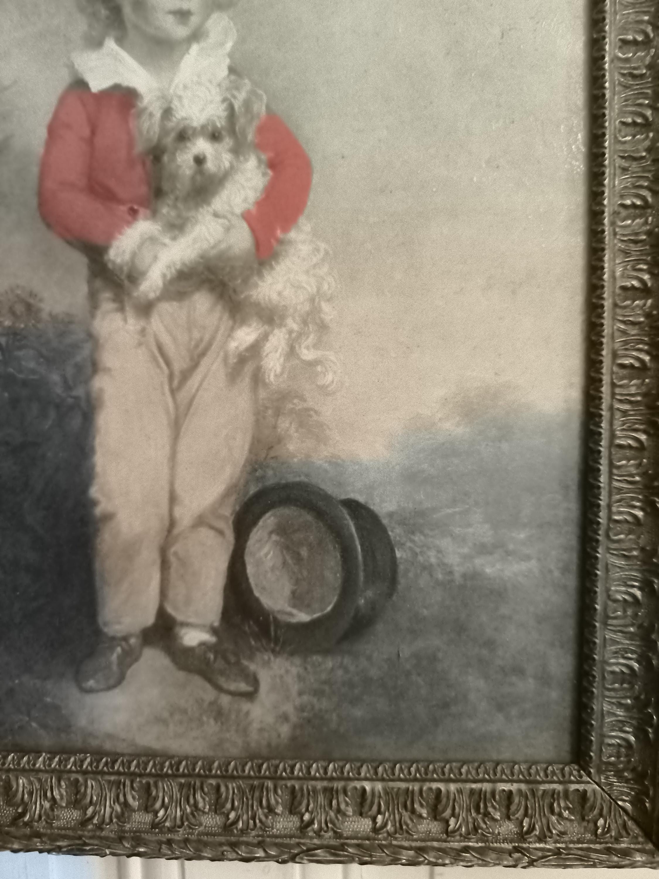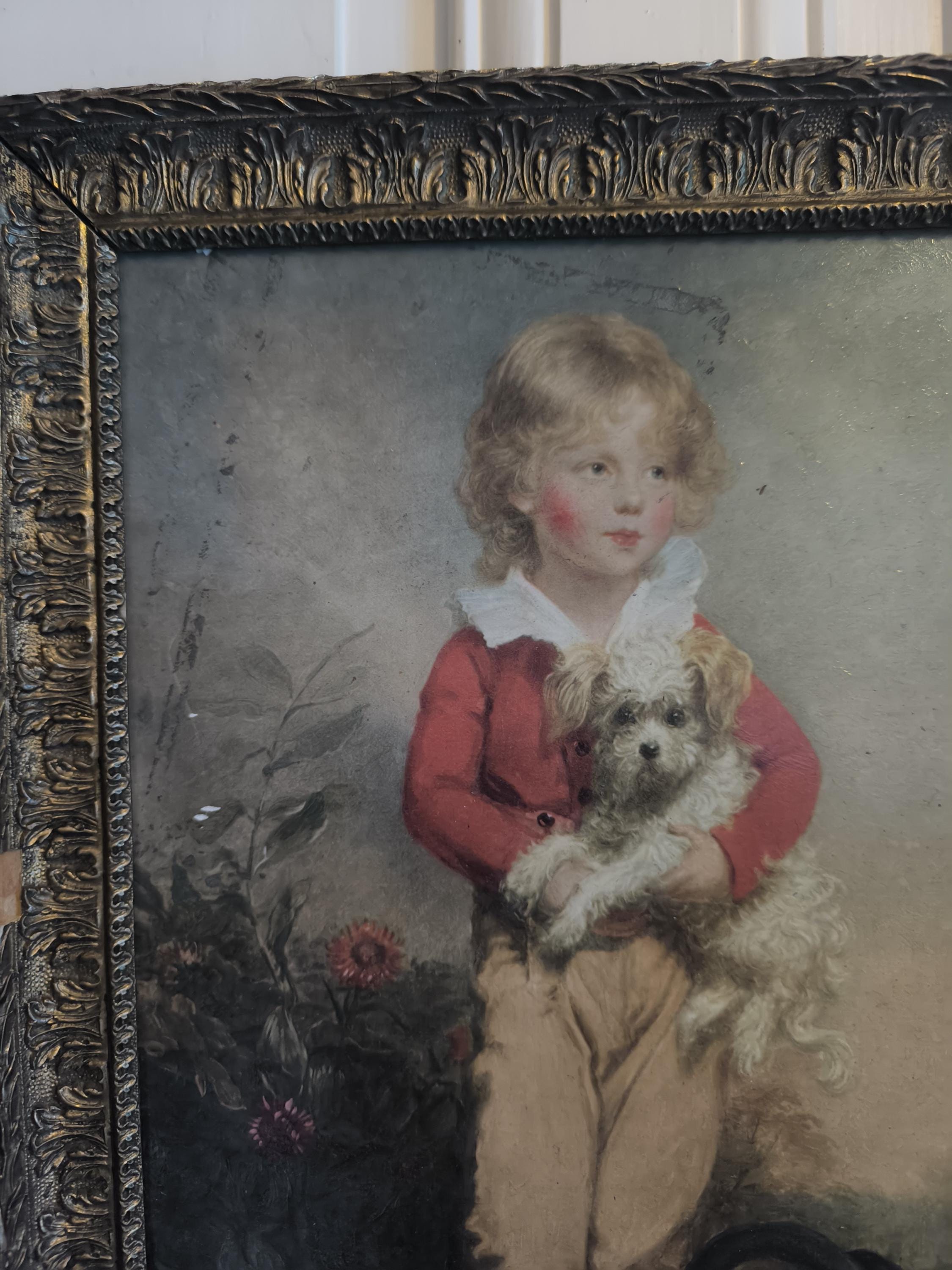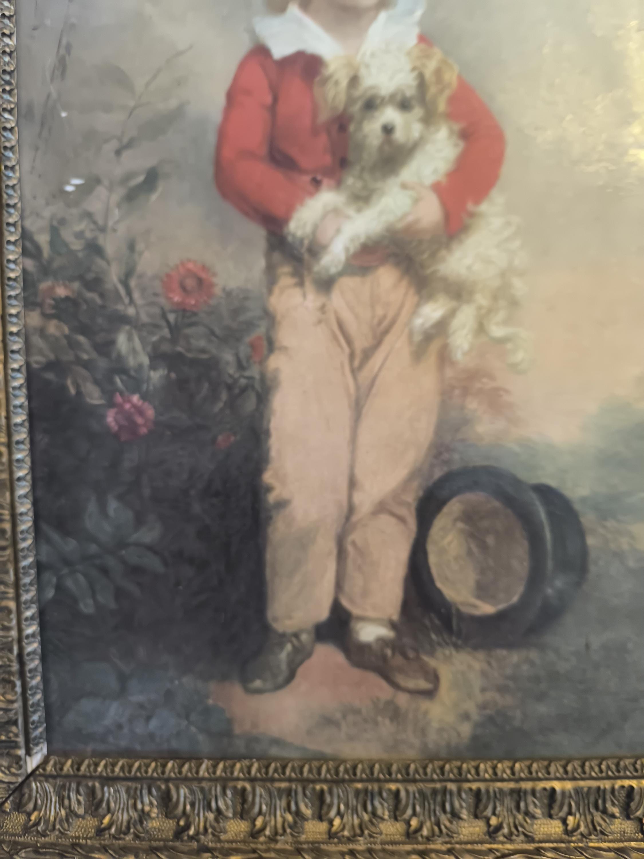 Vintage reproduction "MasterSimpson" after Arthur William Devis boy and his dog Baroque gilt frame