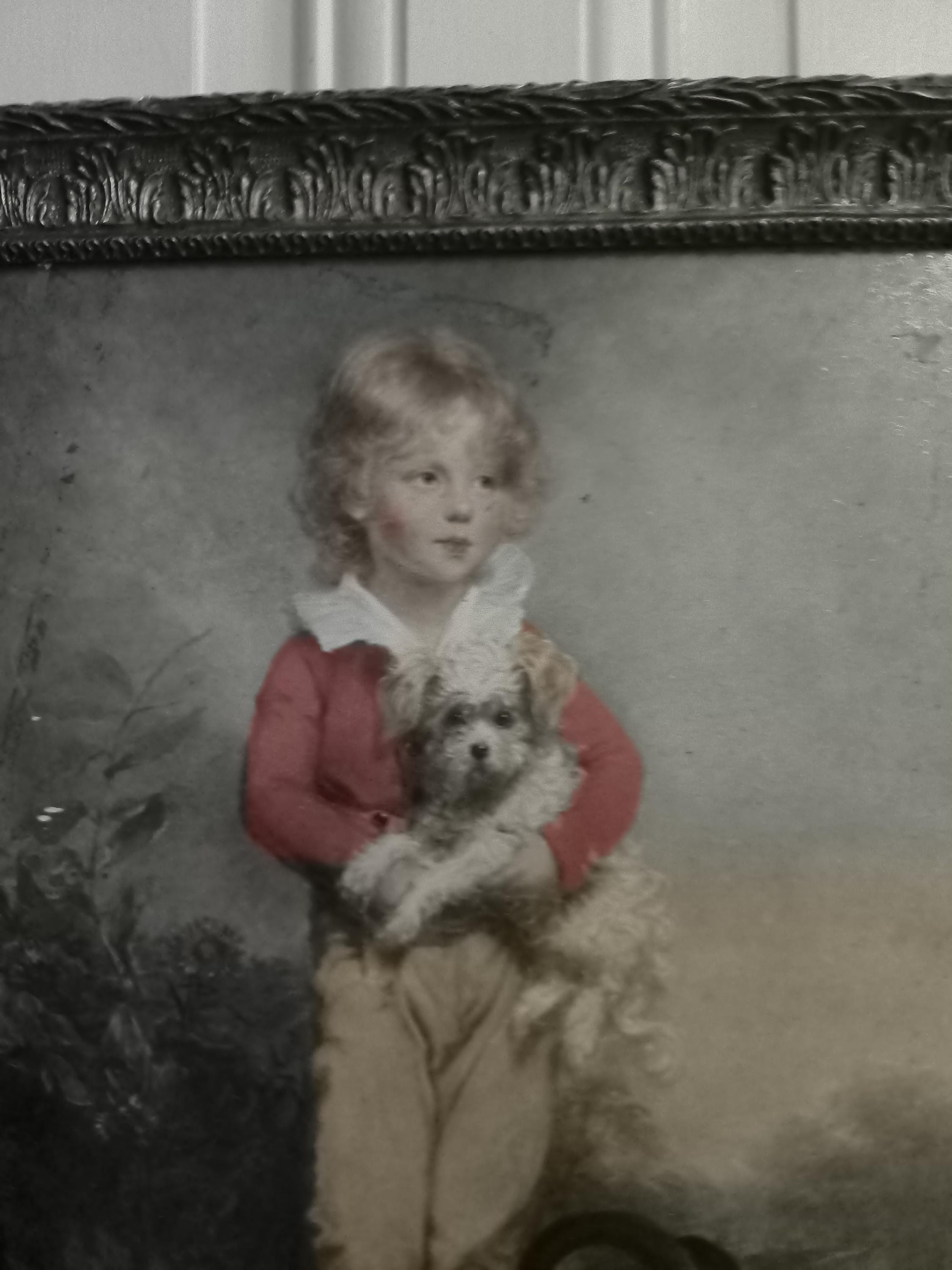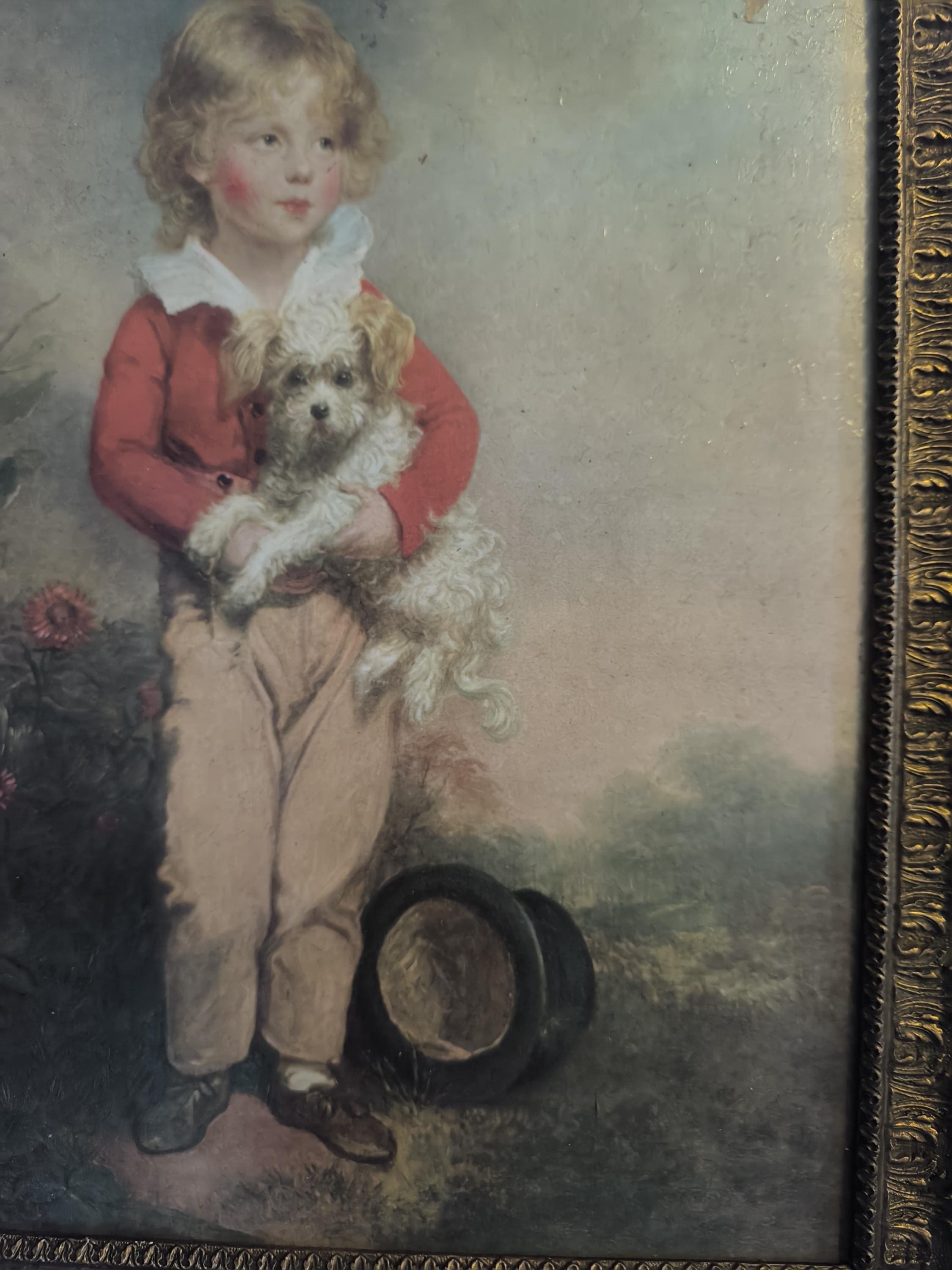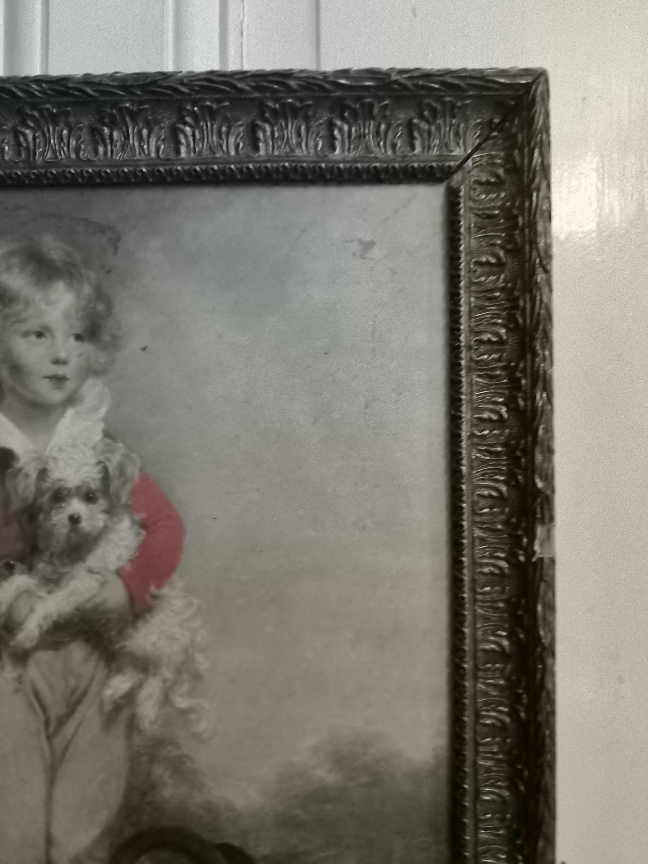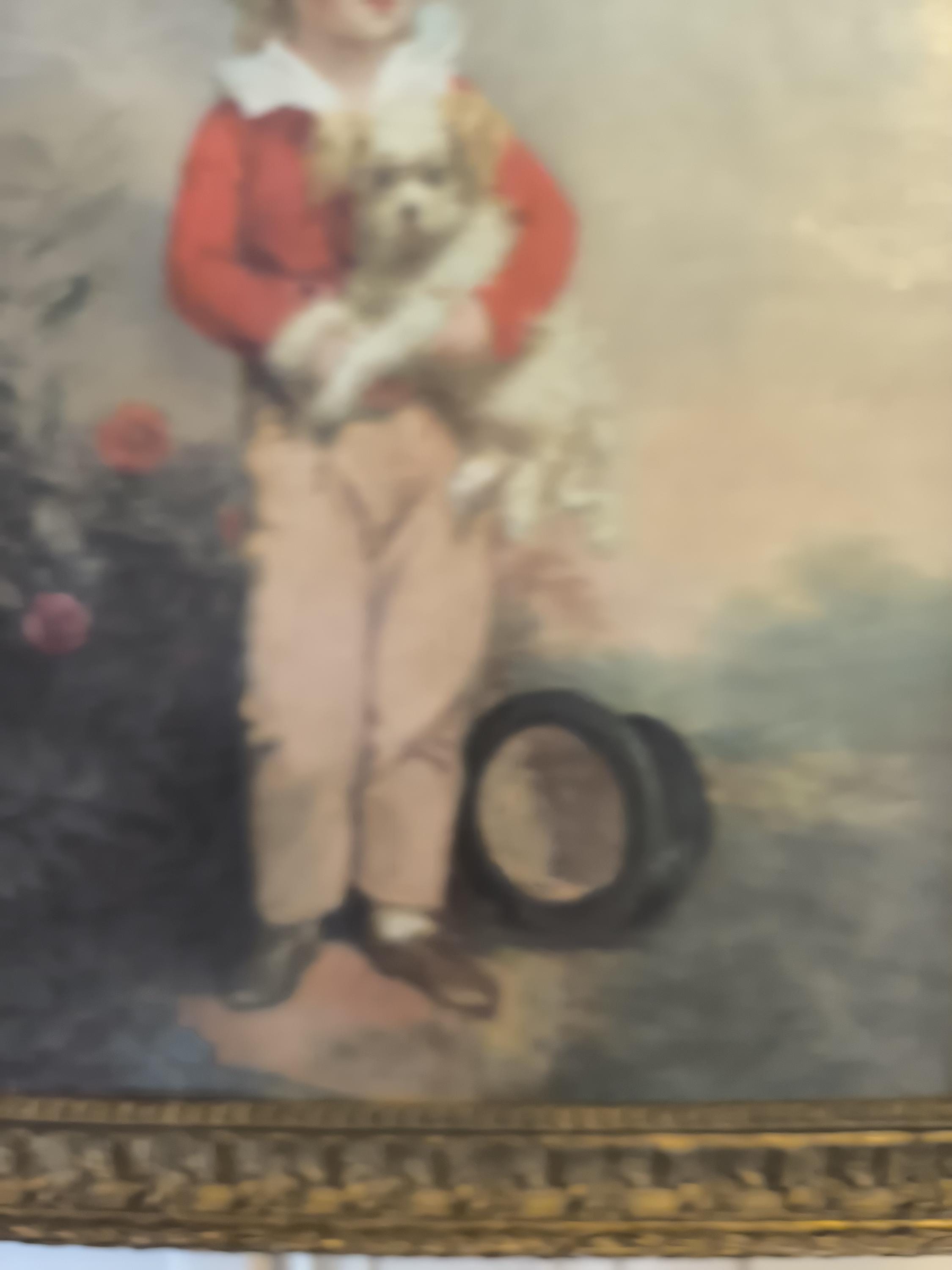 Vintage reproduction "MasterSimpson" after Arthur William Devis boy and his dog Baroque gilt frame