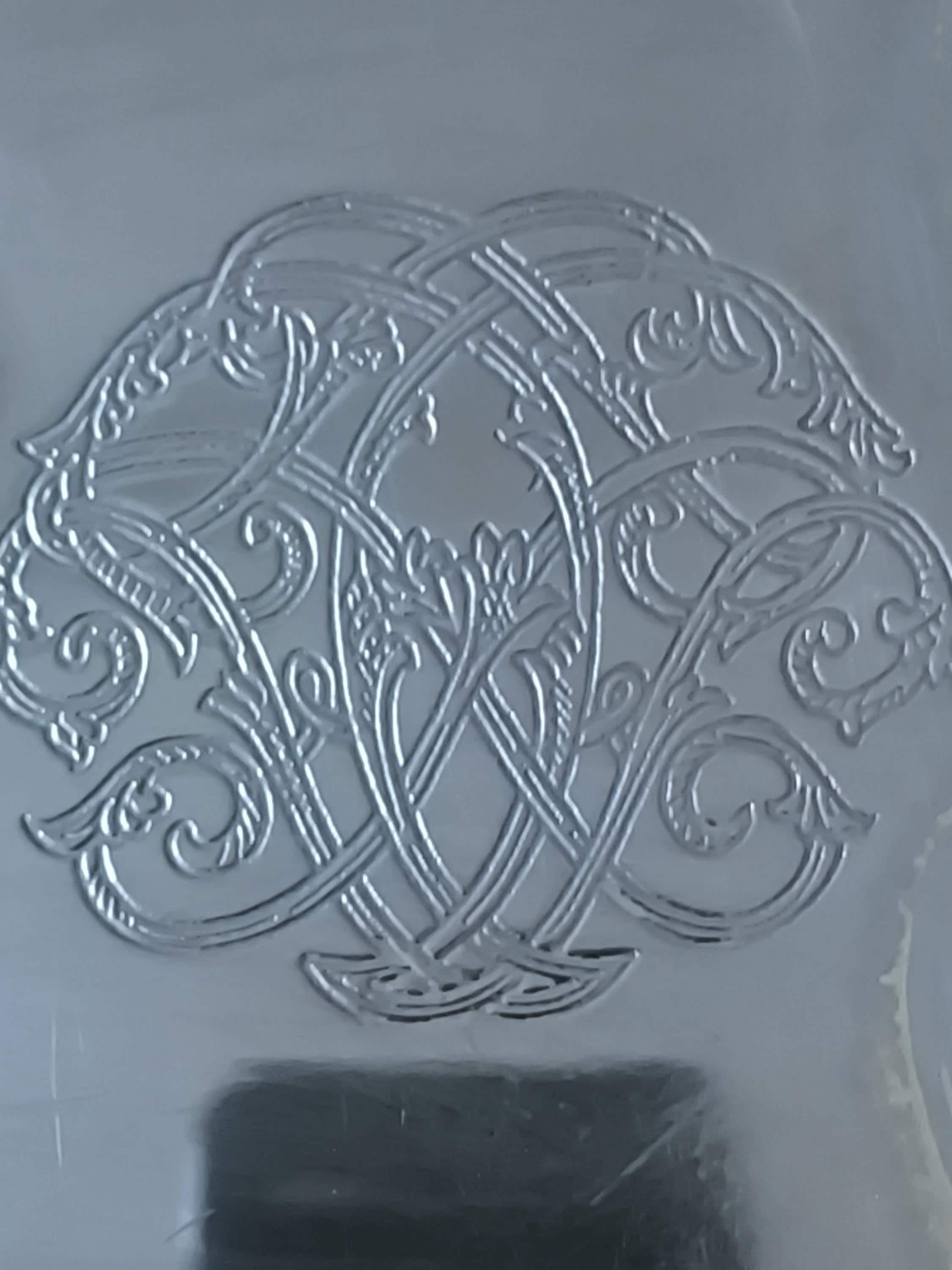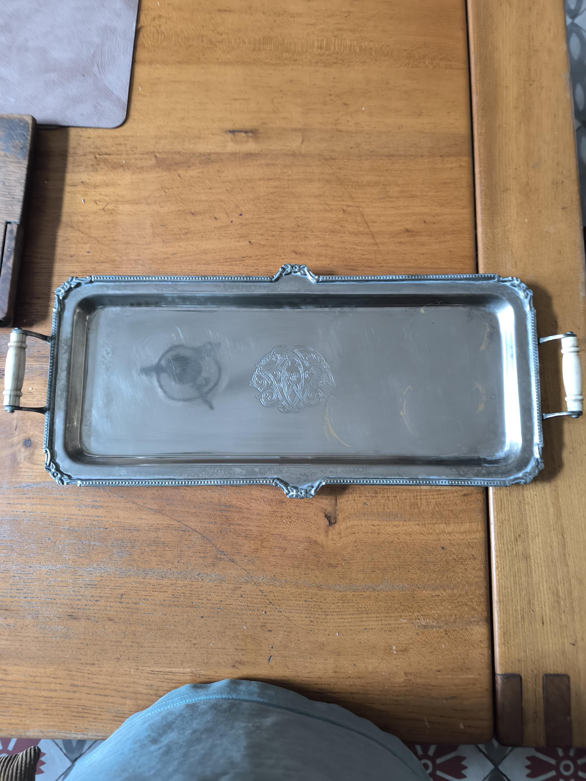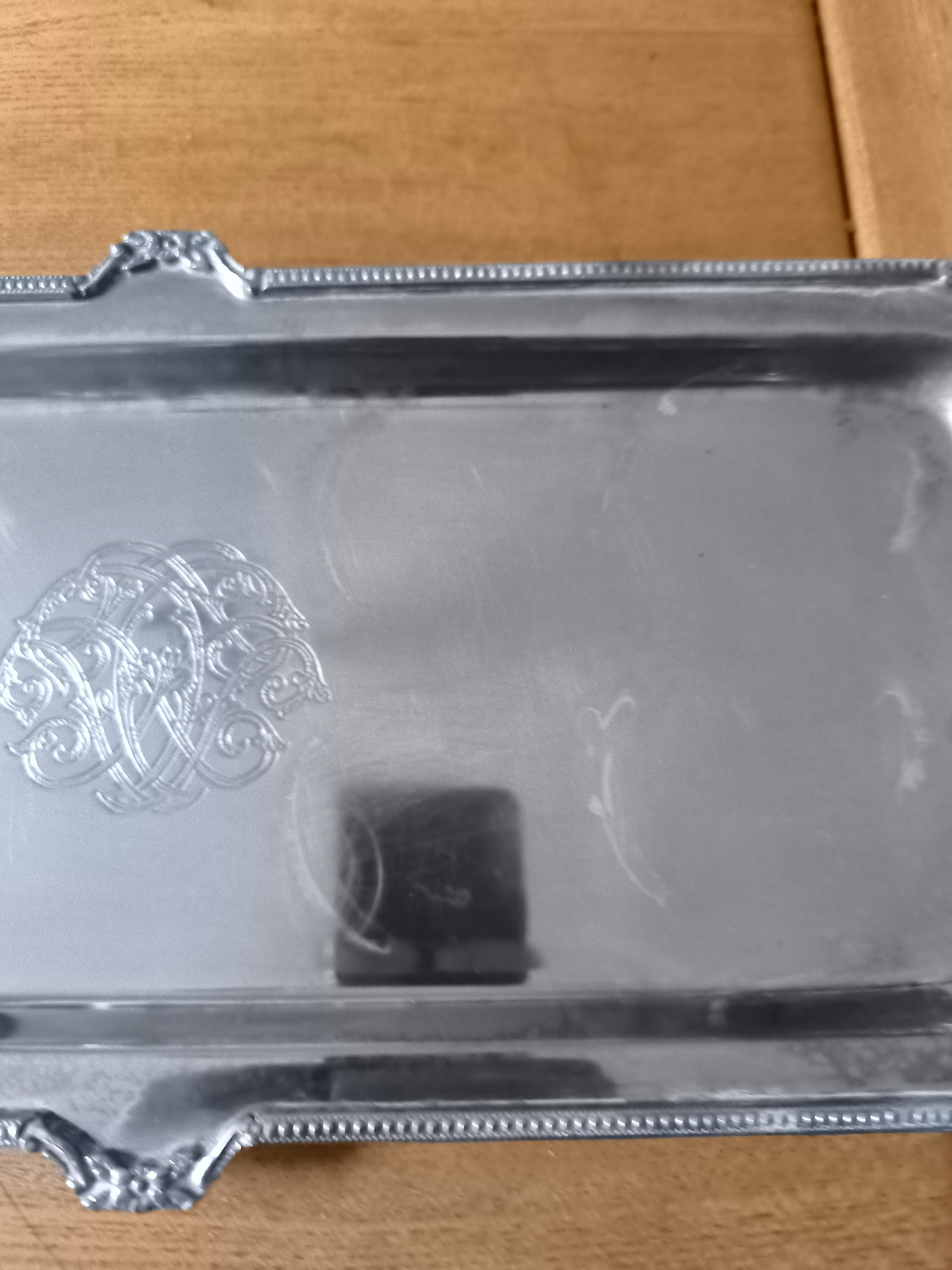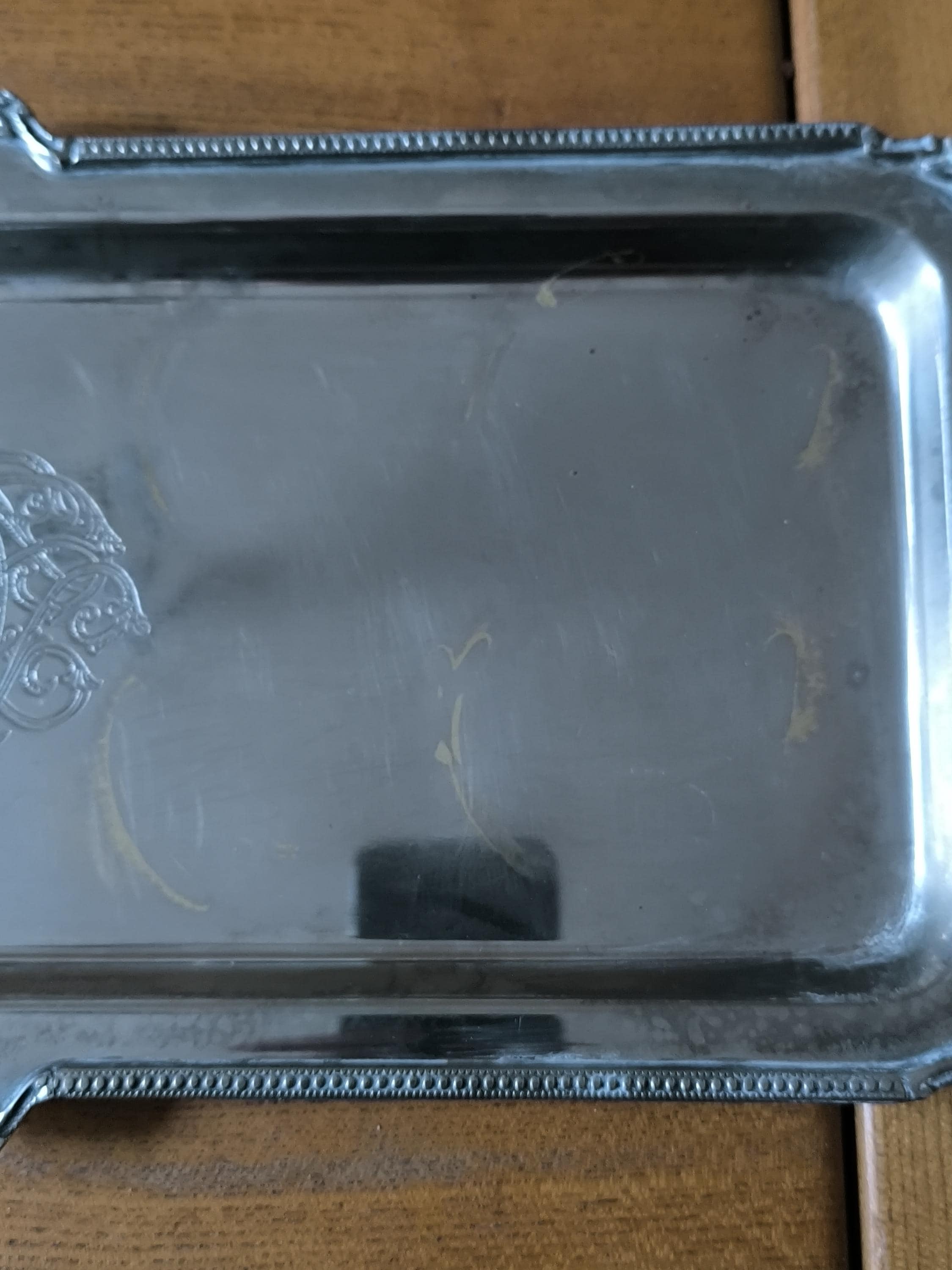 Antique Silver Metal Serving Tray with Monogram - Vintage Elegance