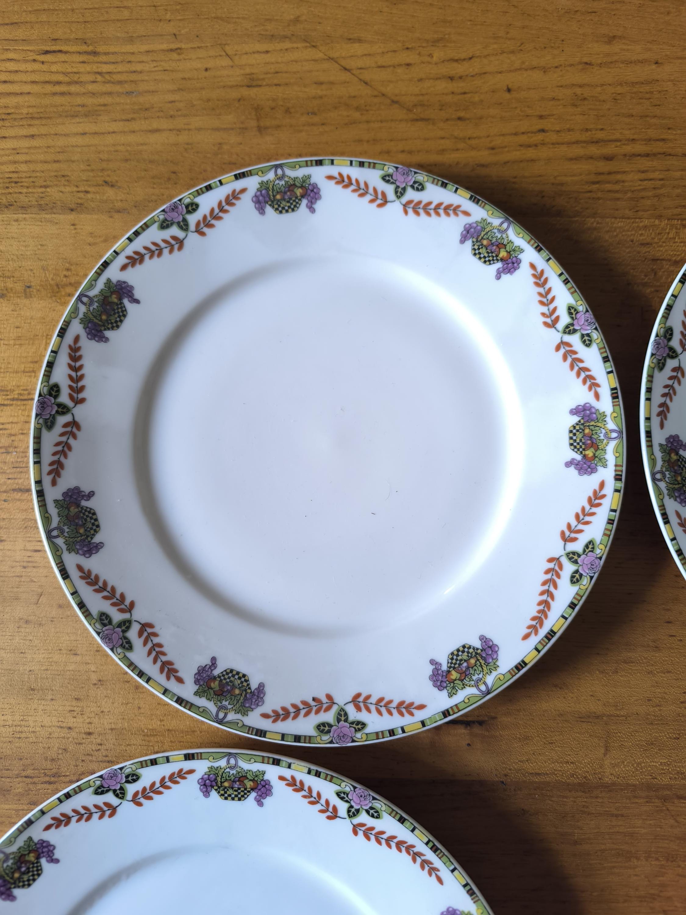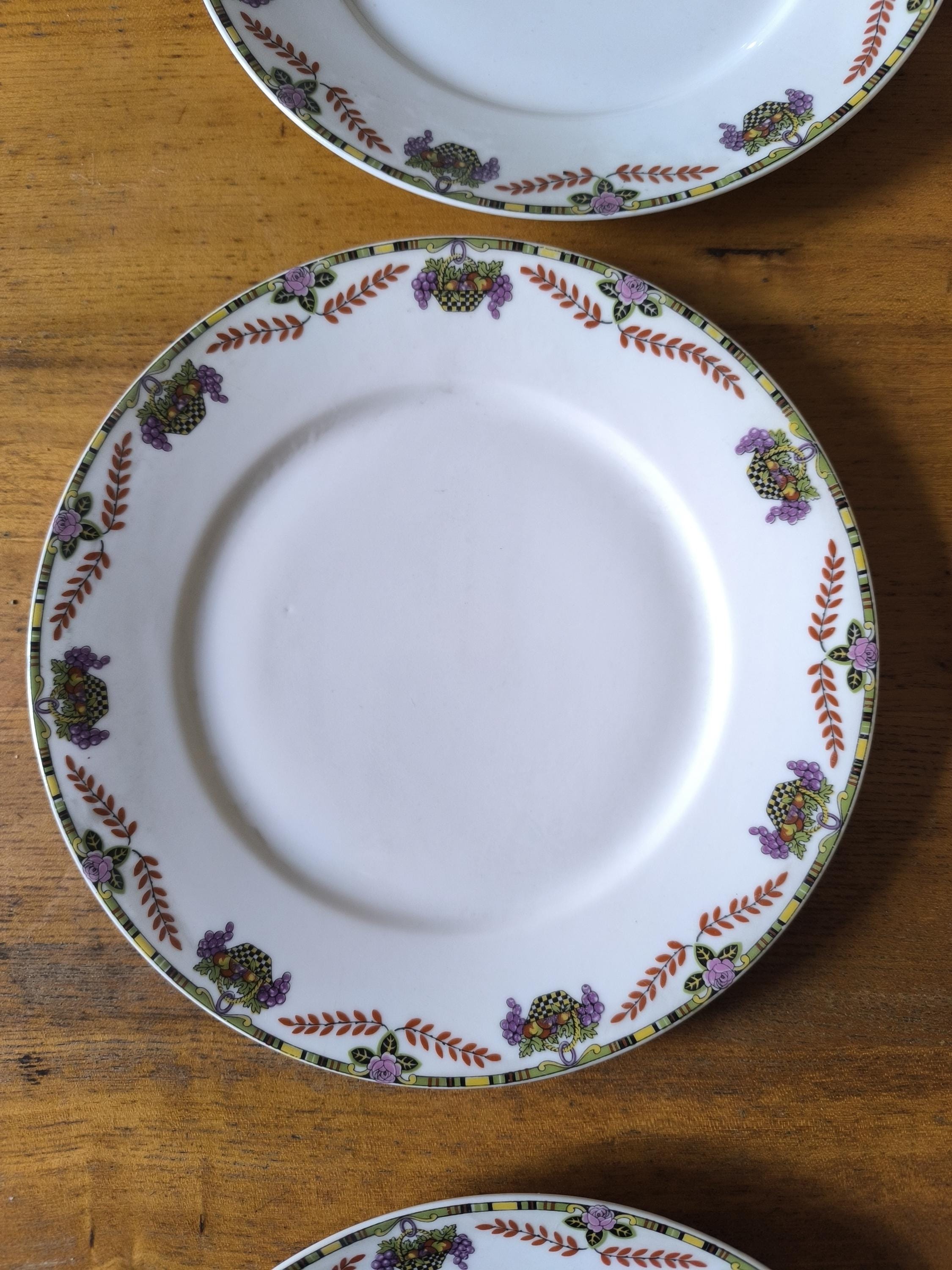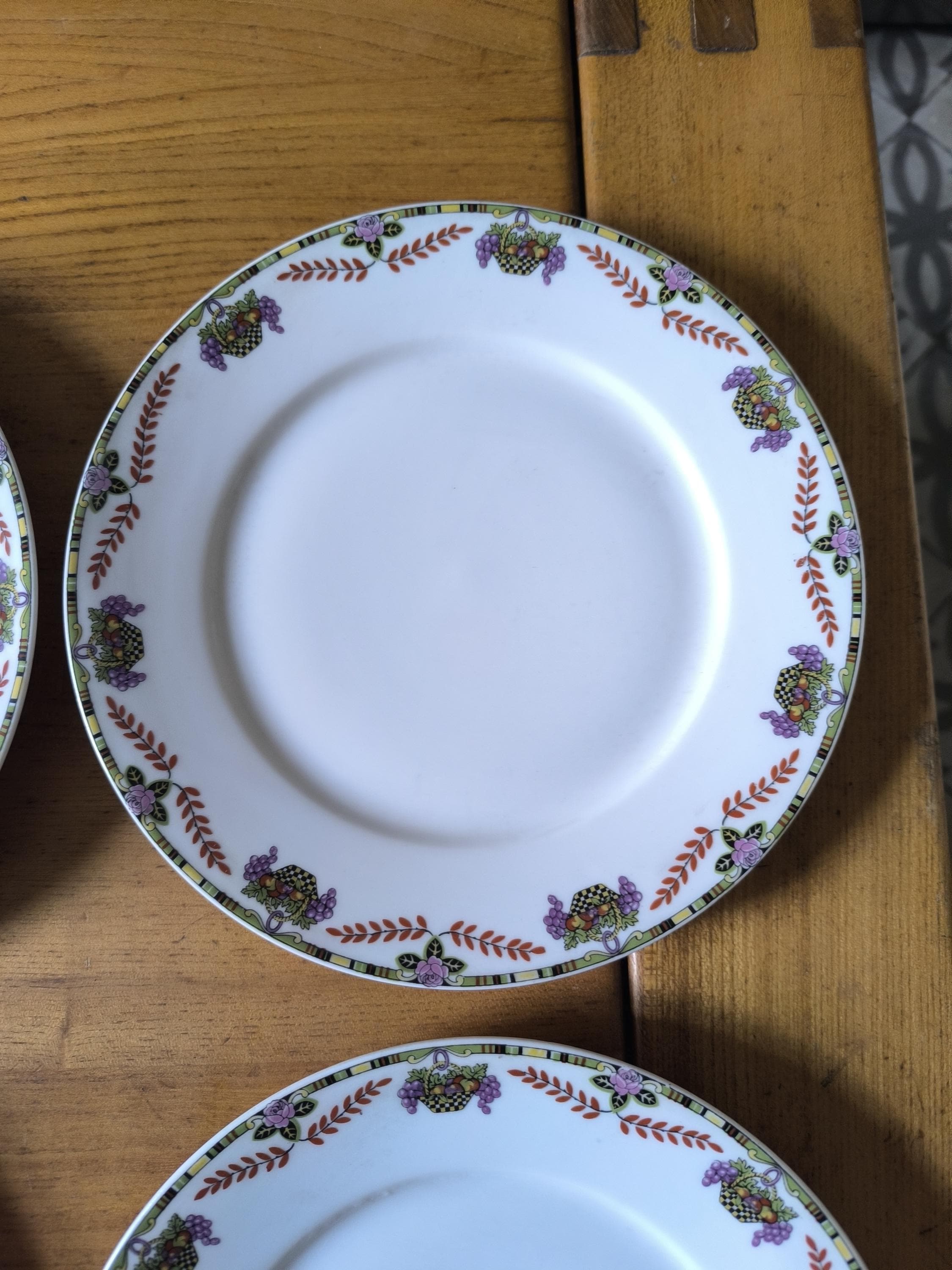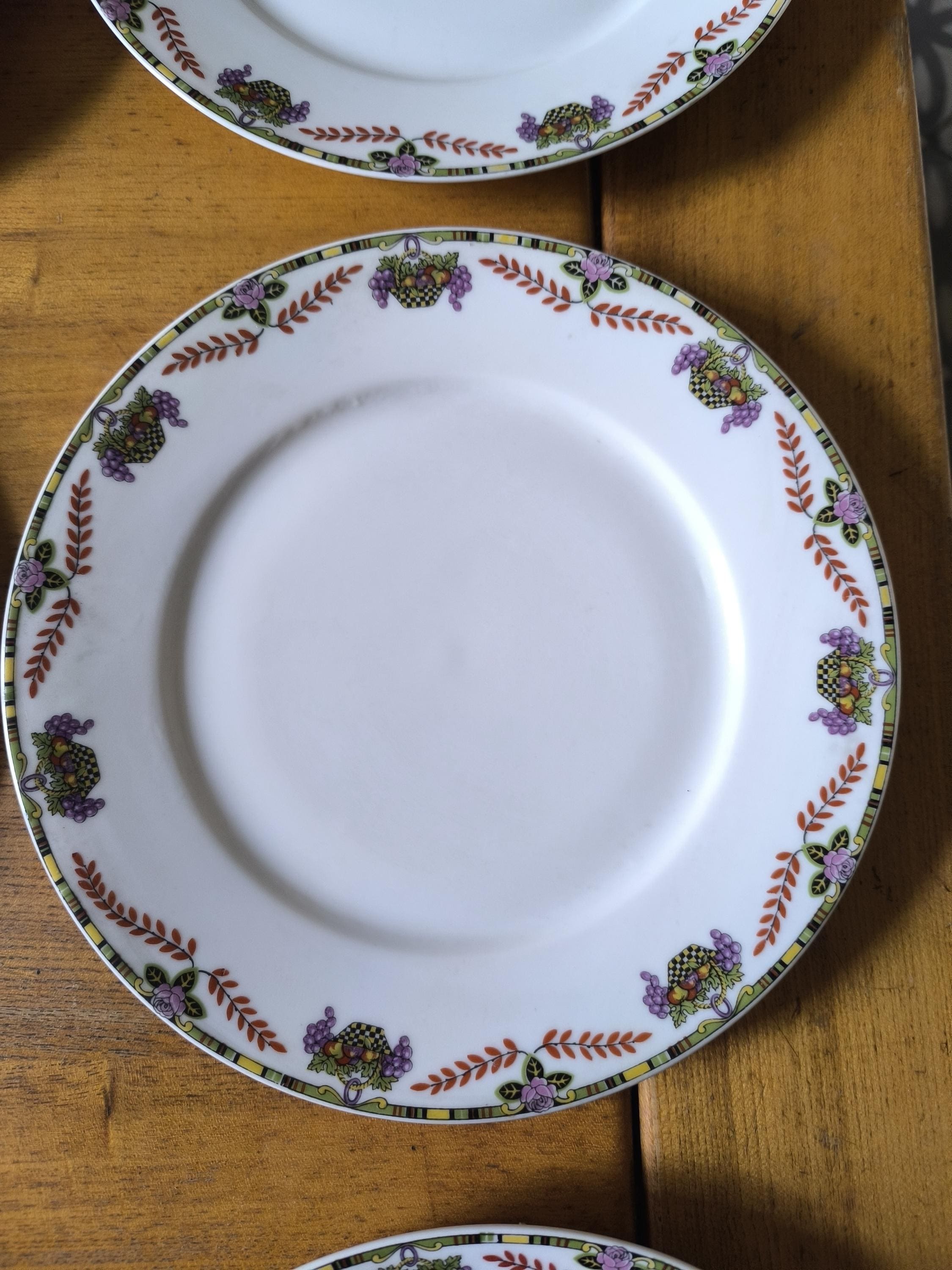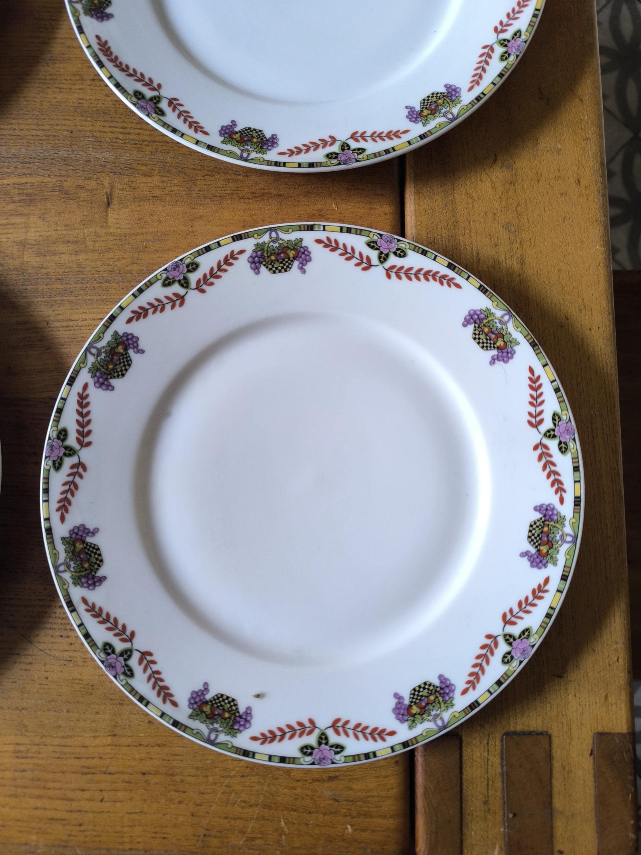 Six small Limoges Balleroy & Cie France dinner plates - Fruit Baskets and Foliage design - Art Deco style, French porcelain