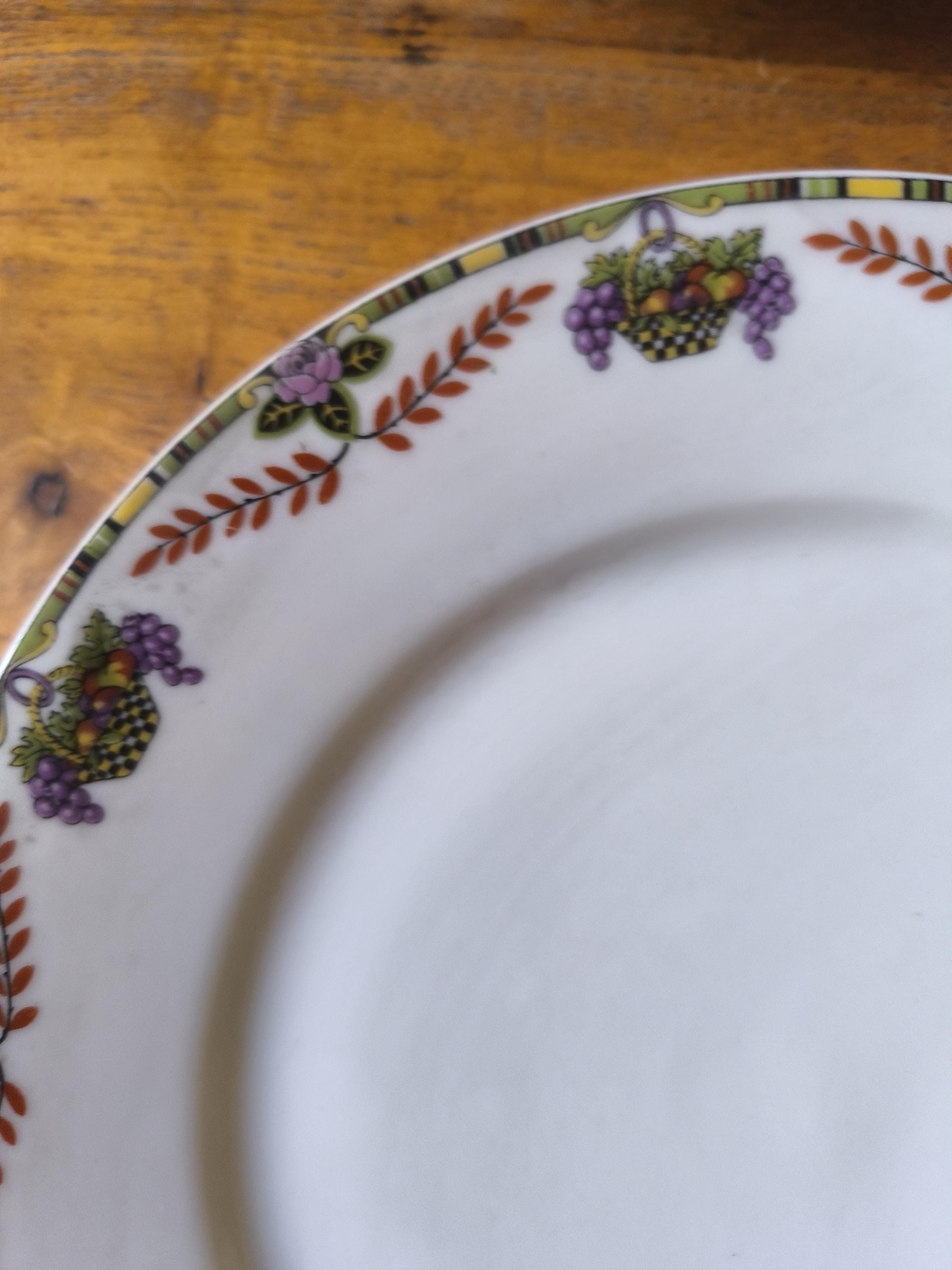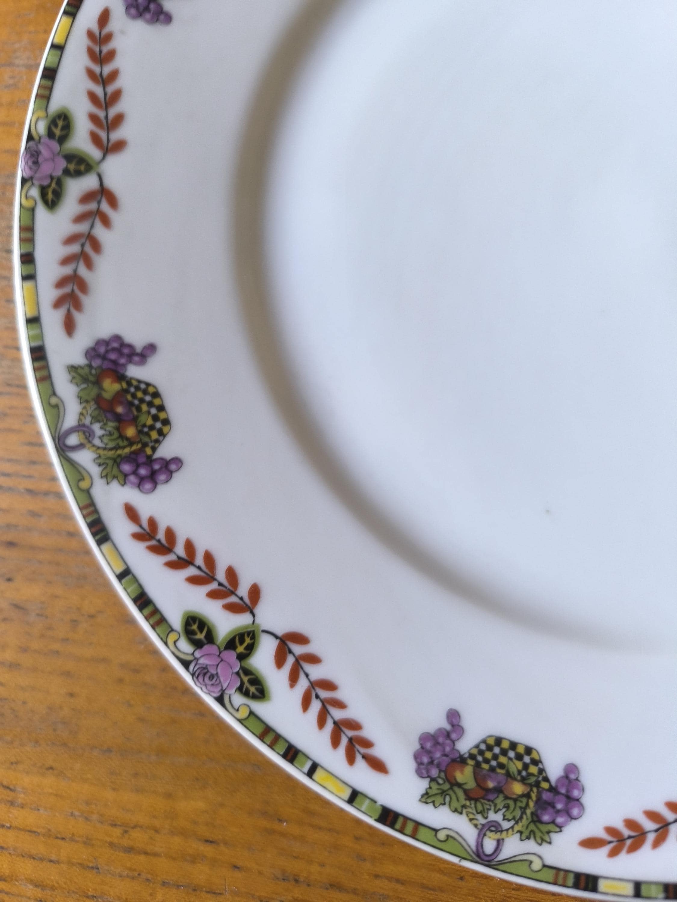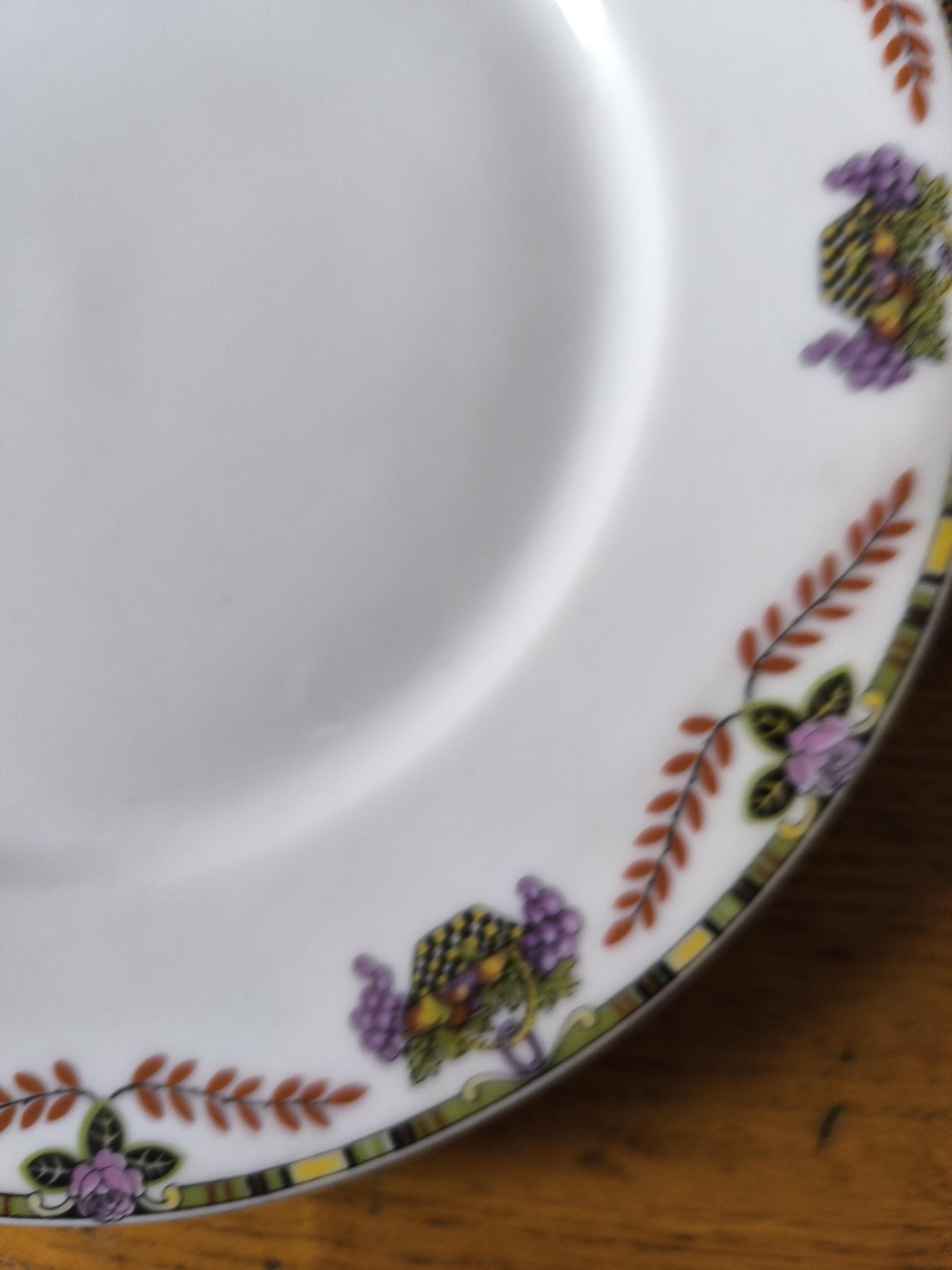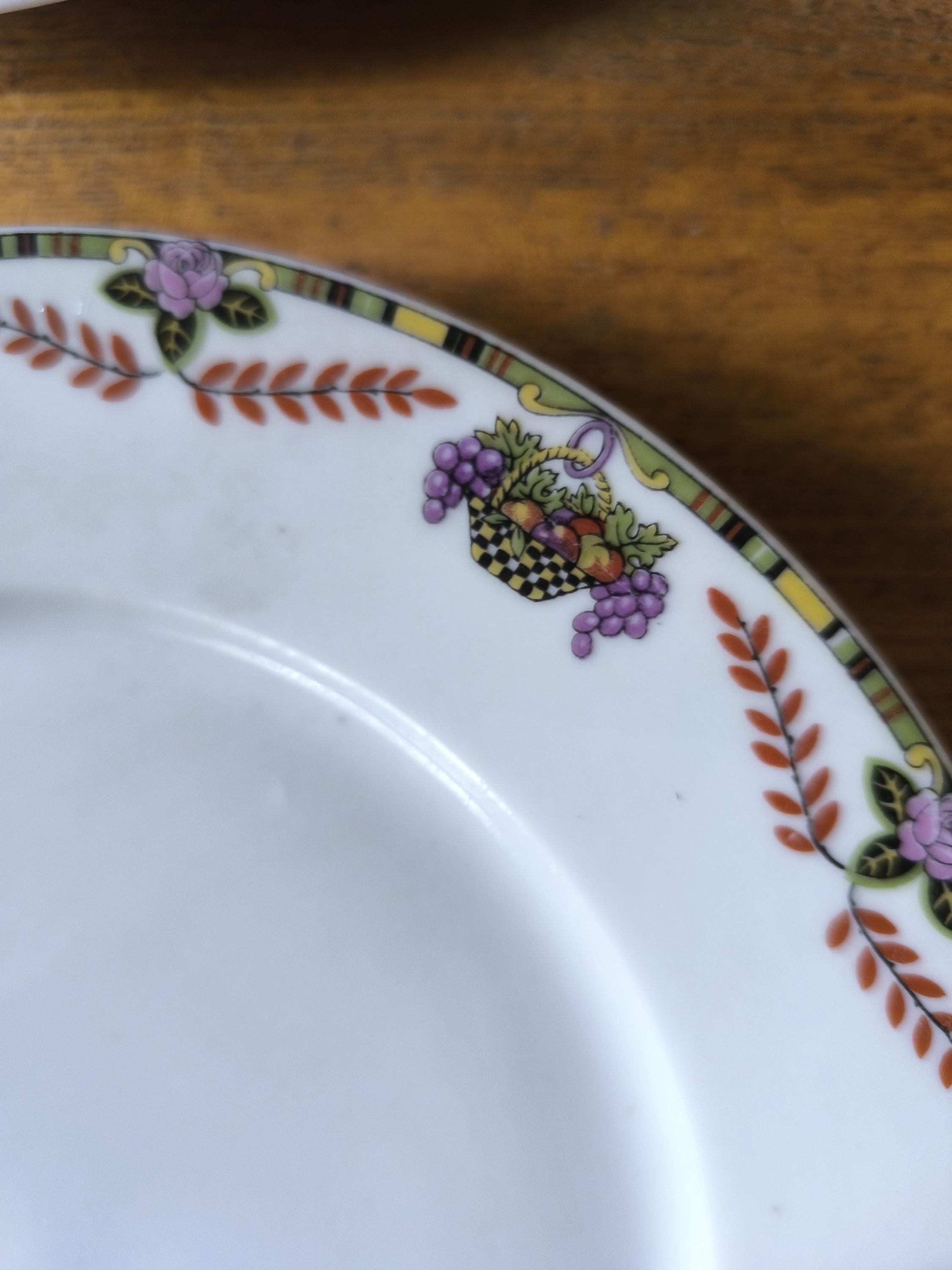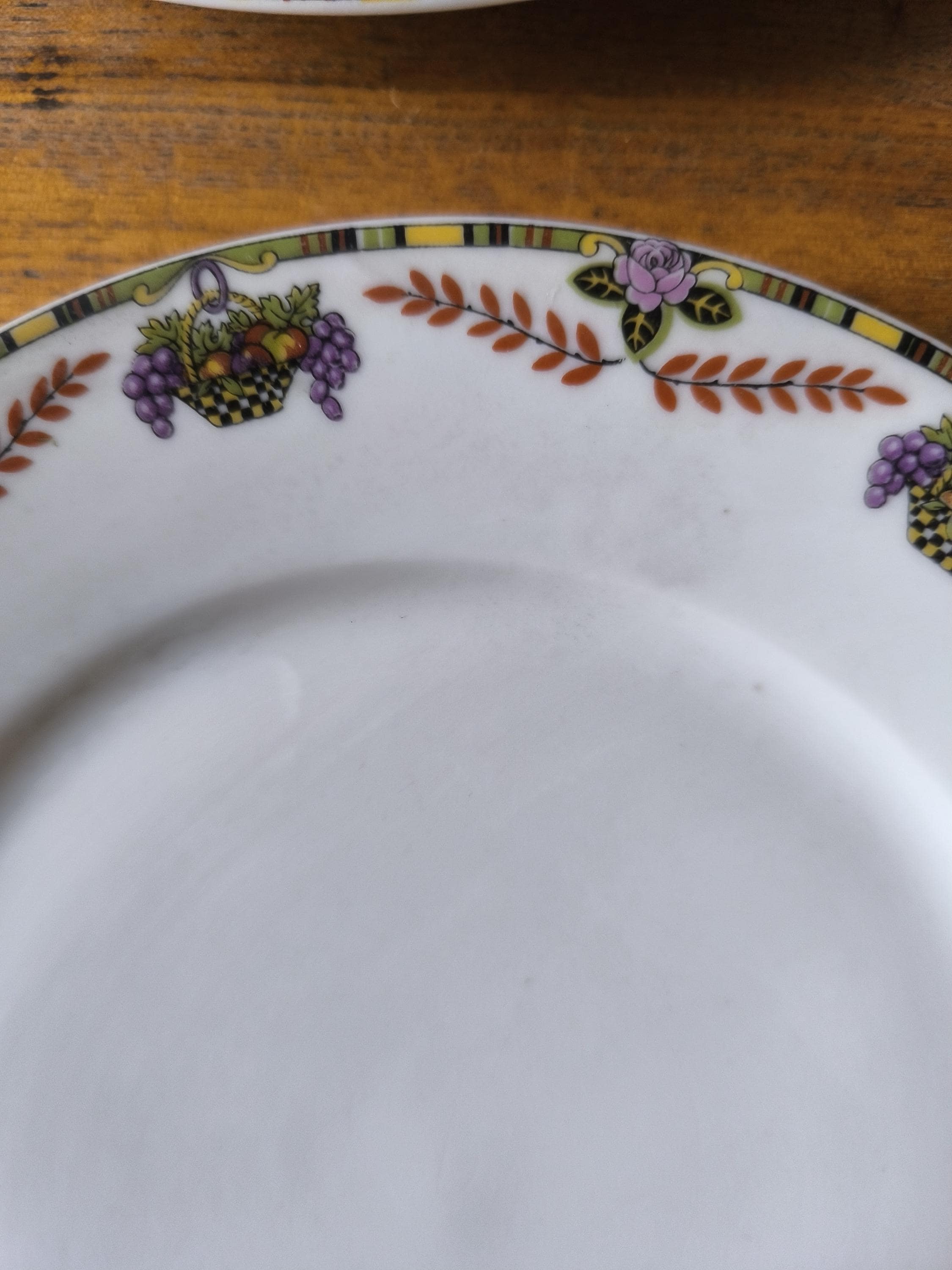 Six small Limoges Balleroy & Cie France dinner plates - Fruit Baskets and Foliage design - Art Deco style, French porcelain