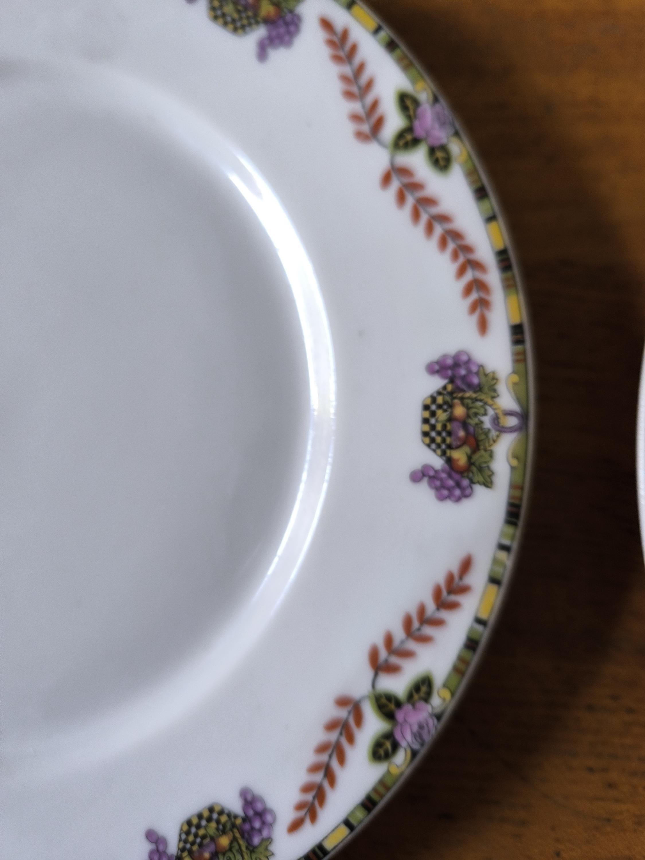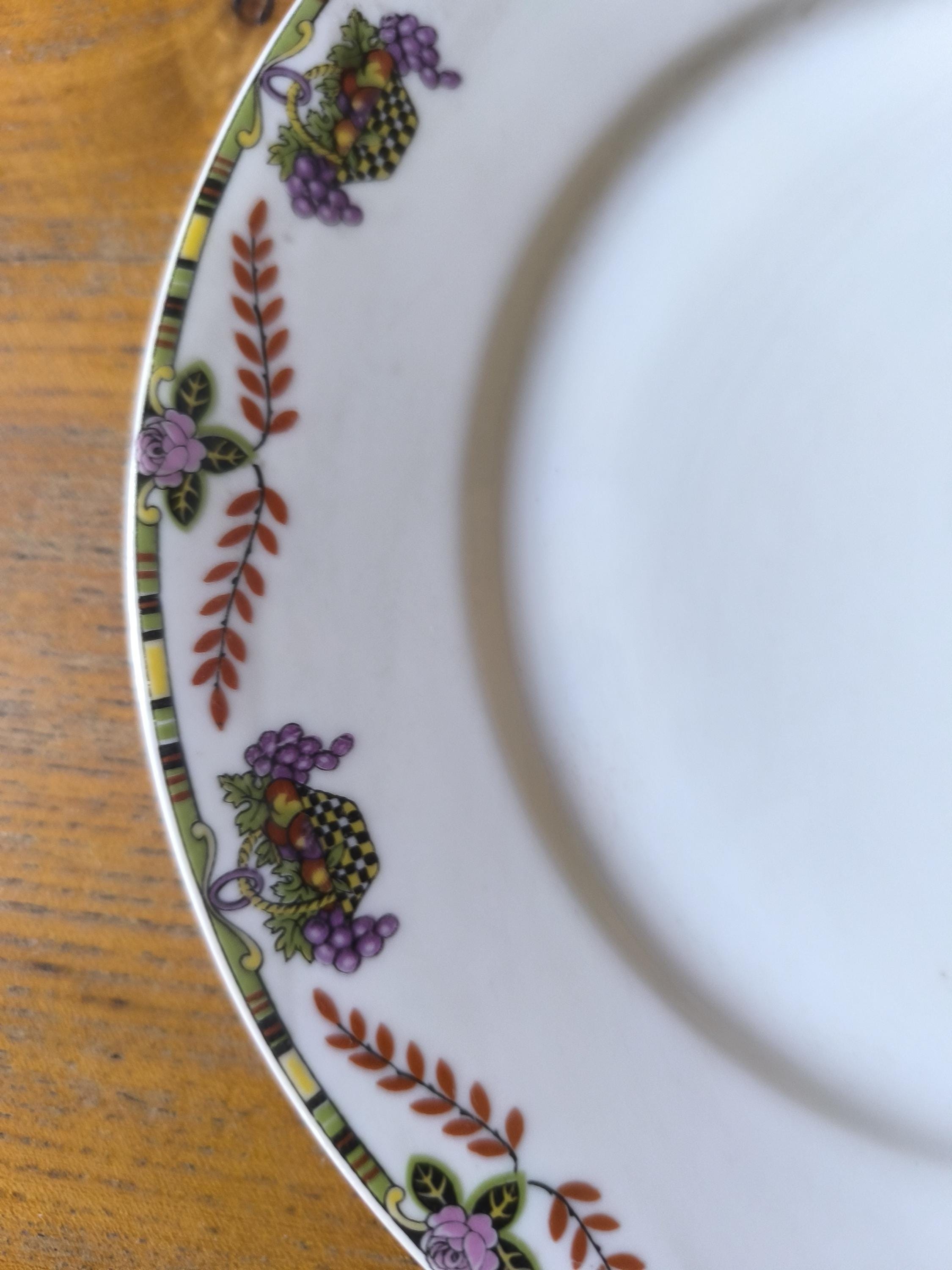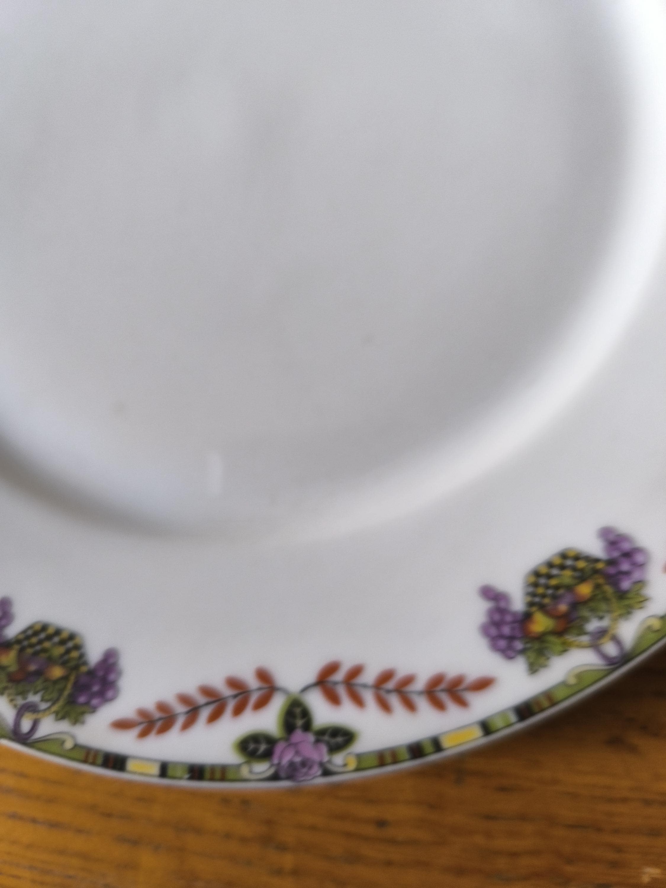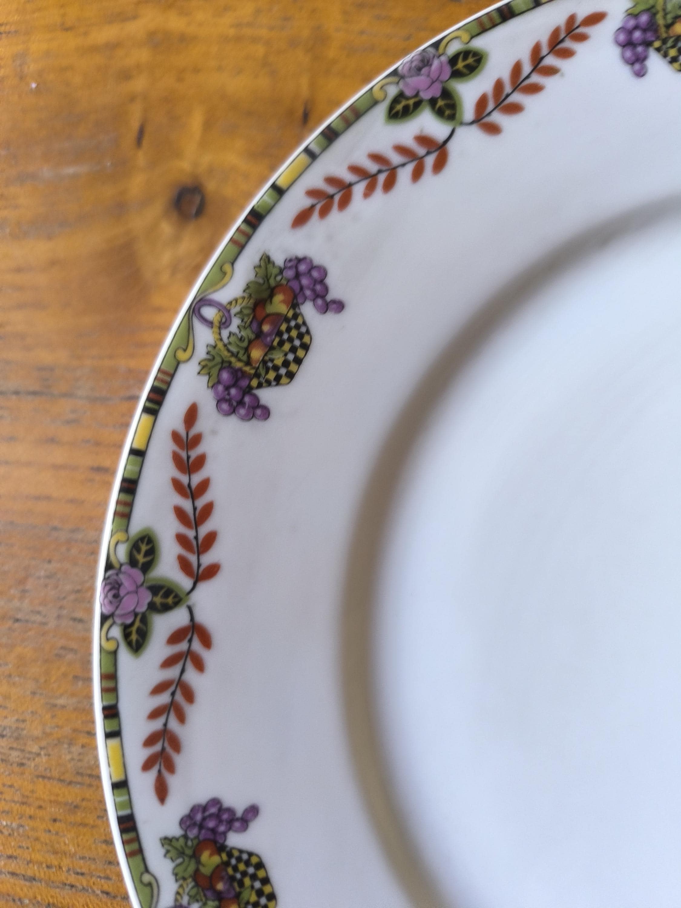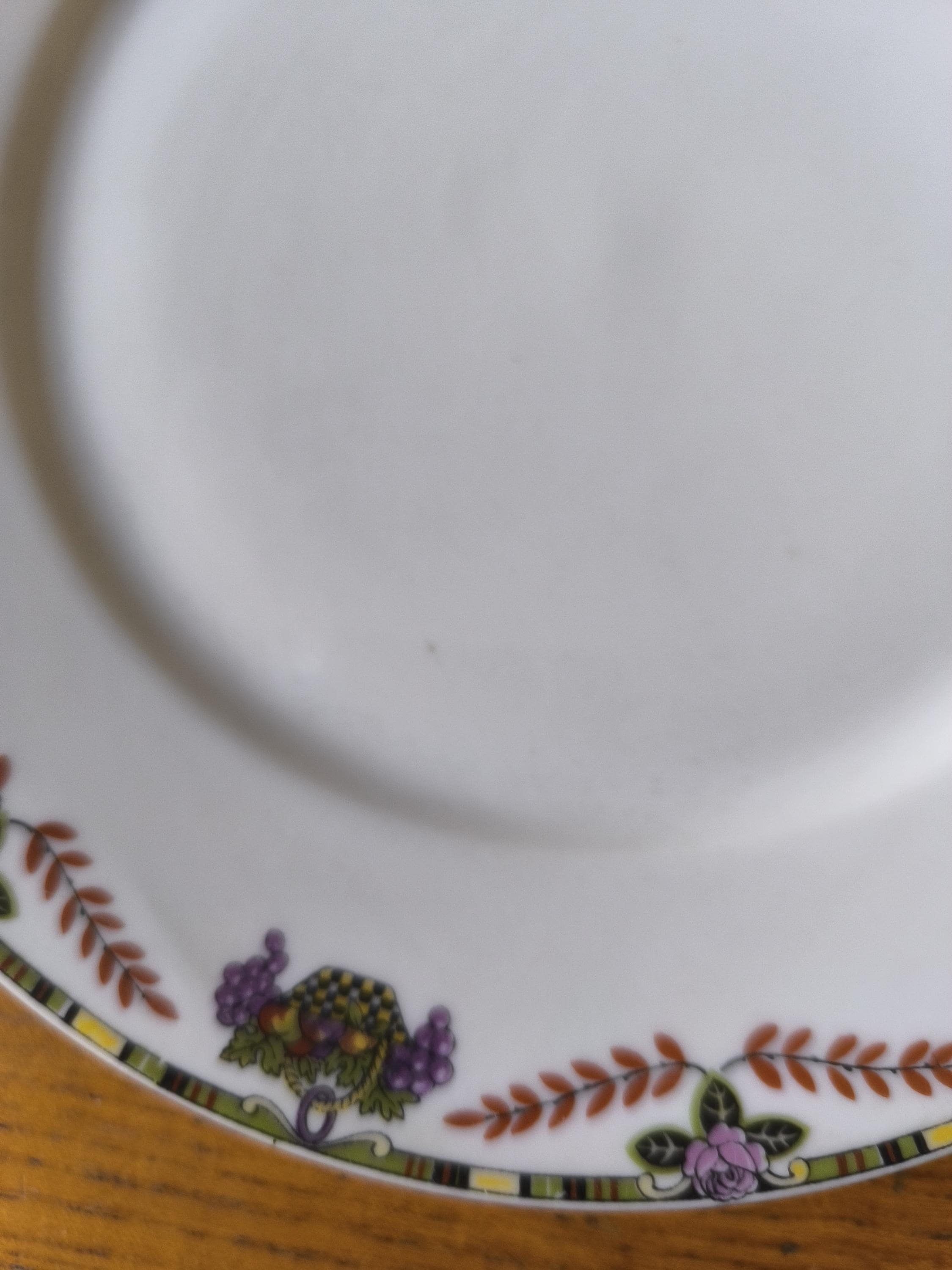 Six small Limoges Balleroy & Cie France dinner plates - Fruit Baskets and Foliage design - Art Deco style, French porcelain