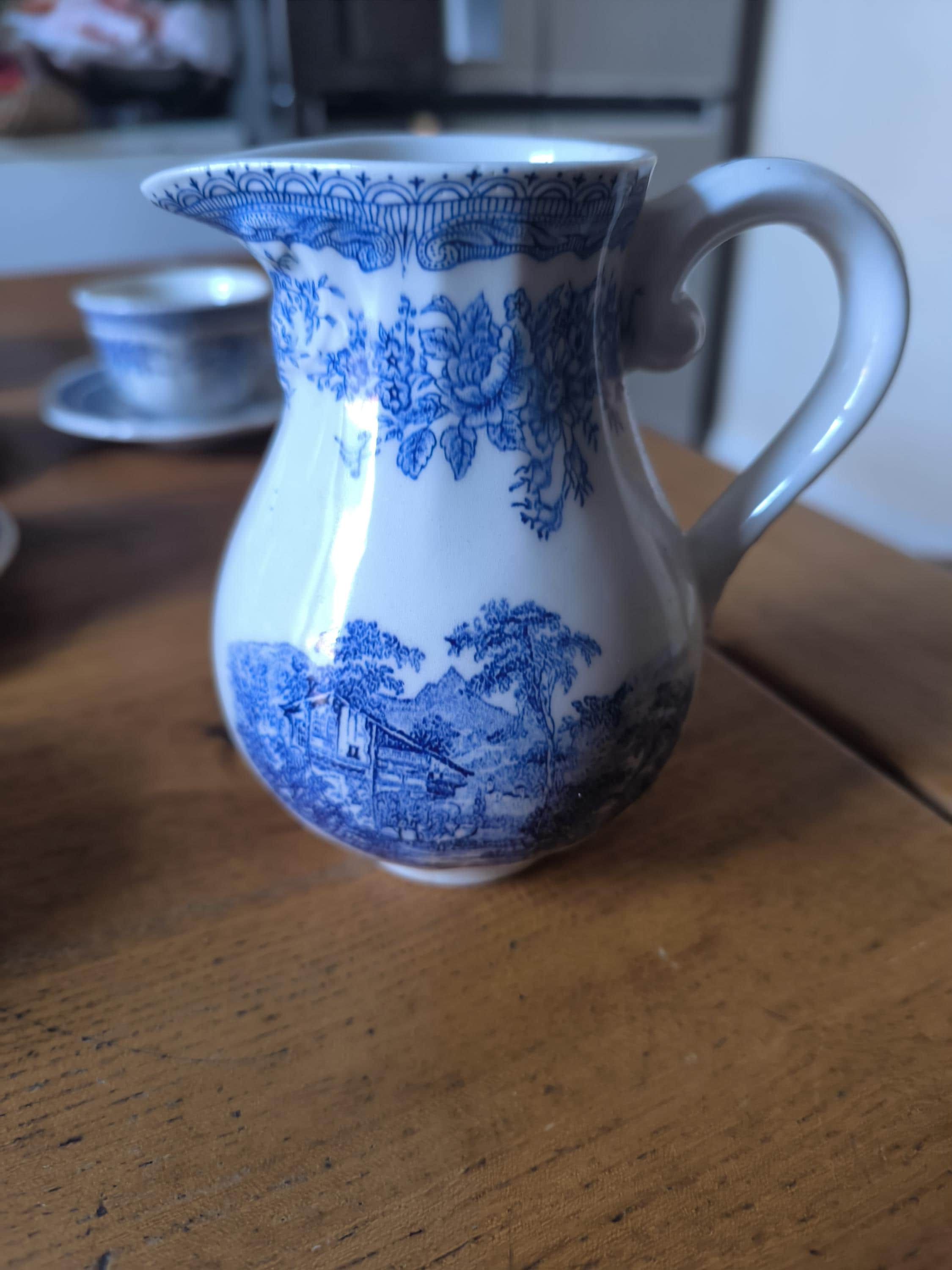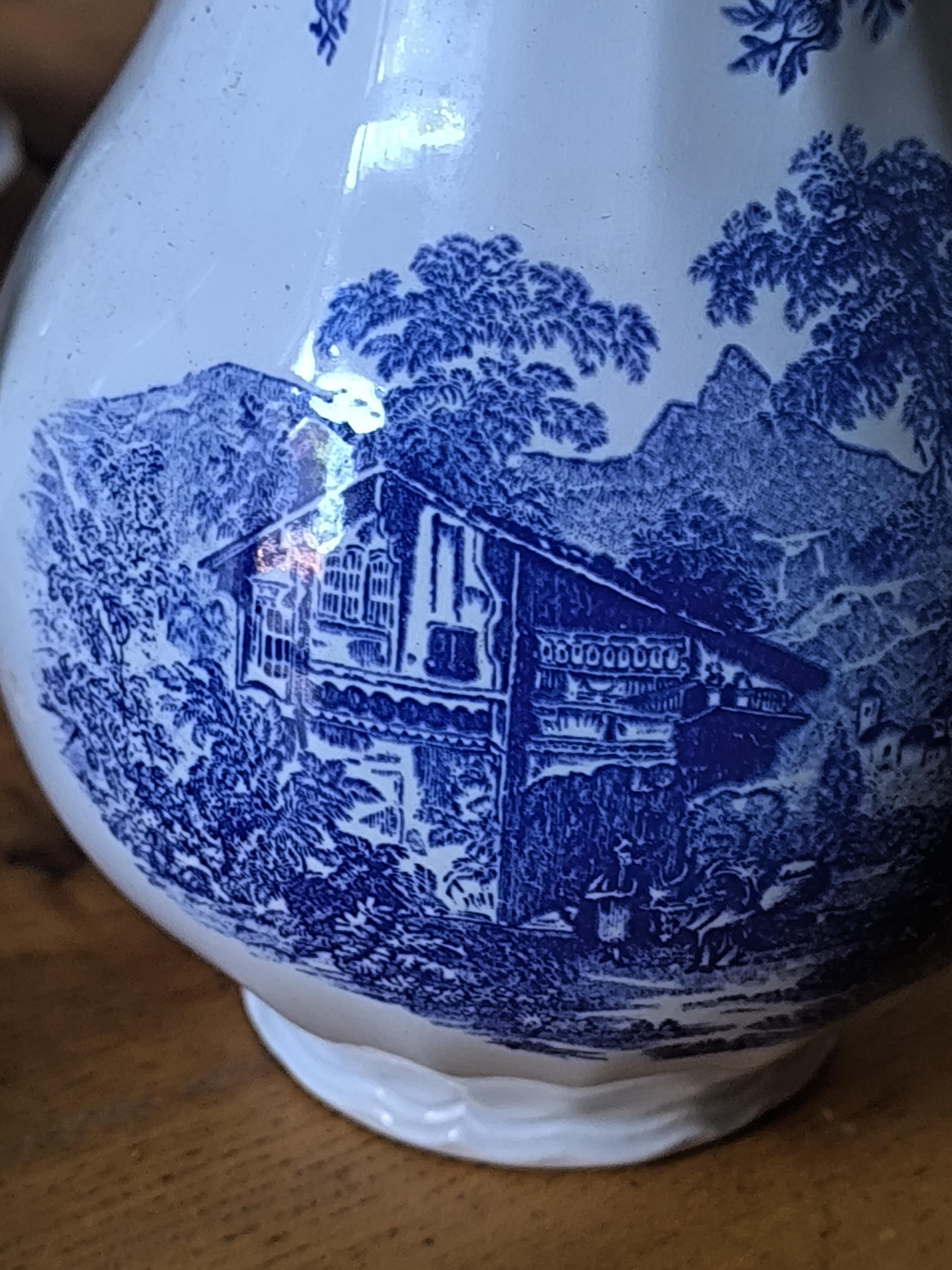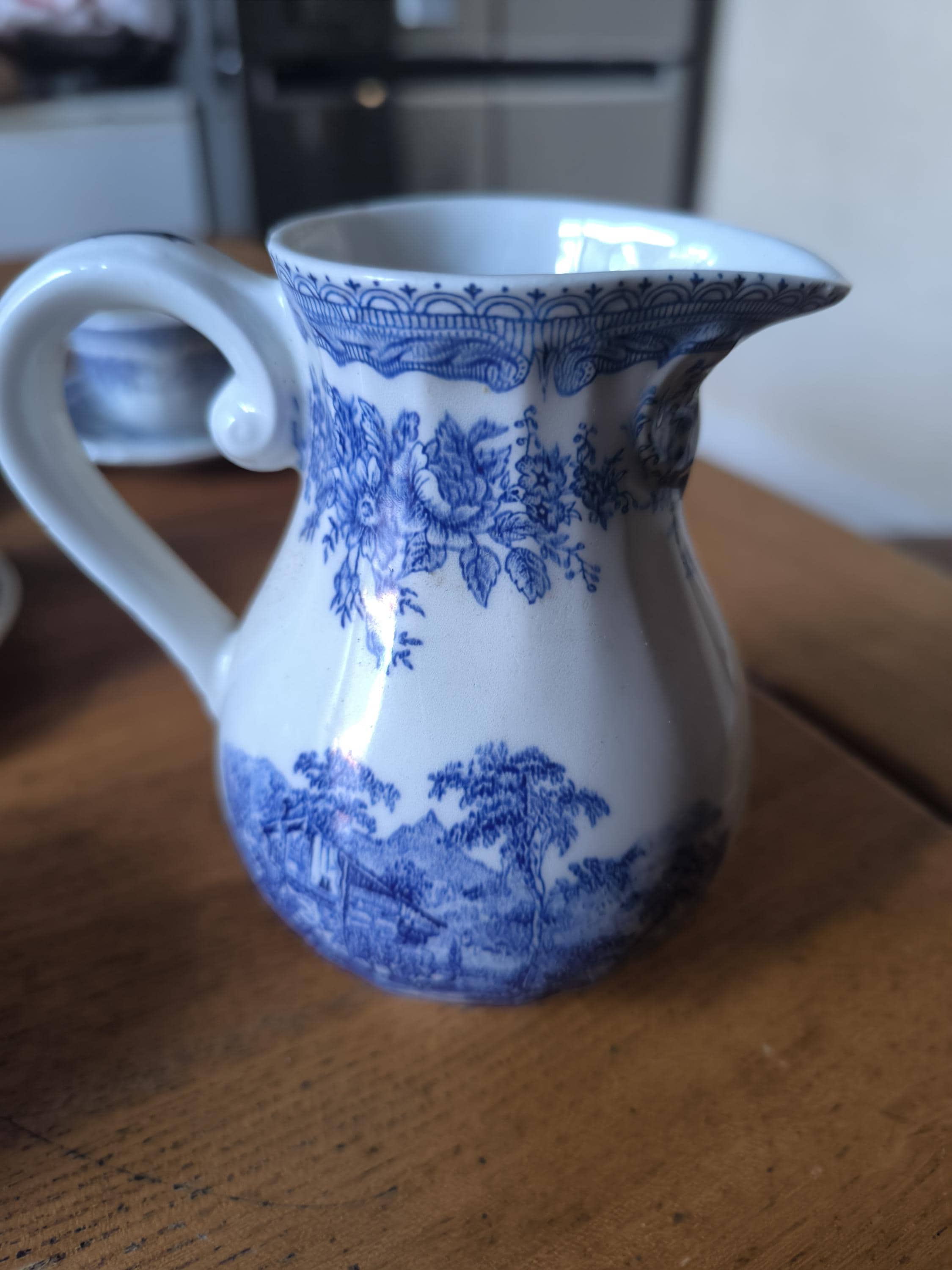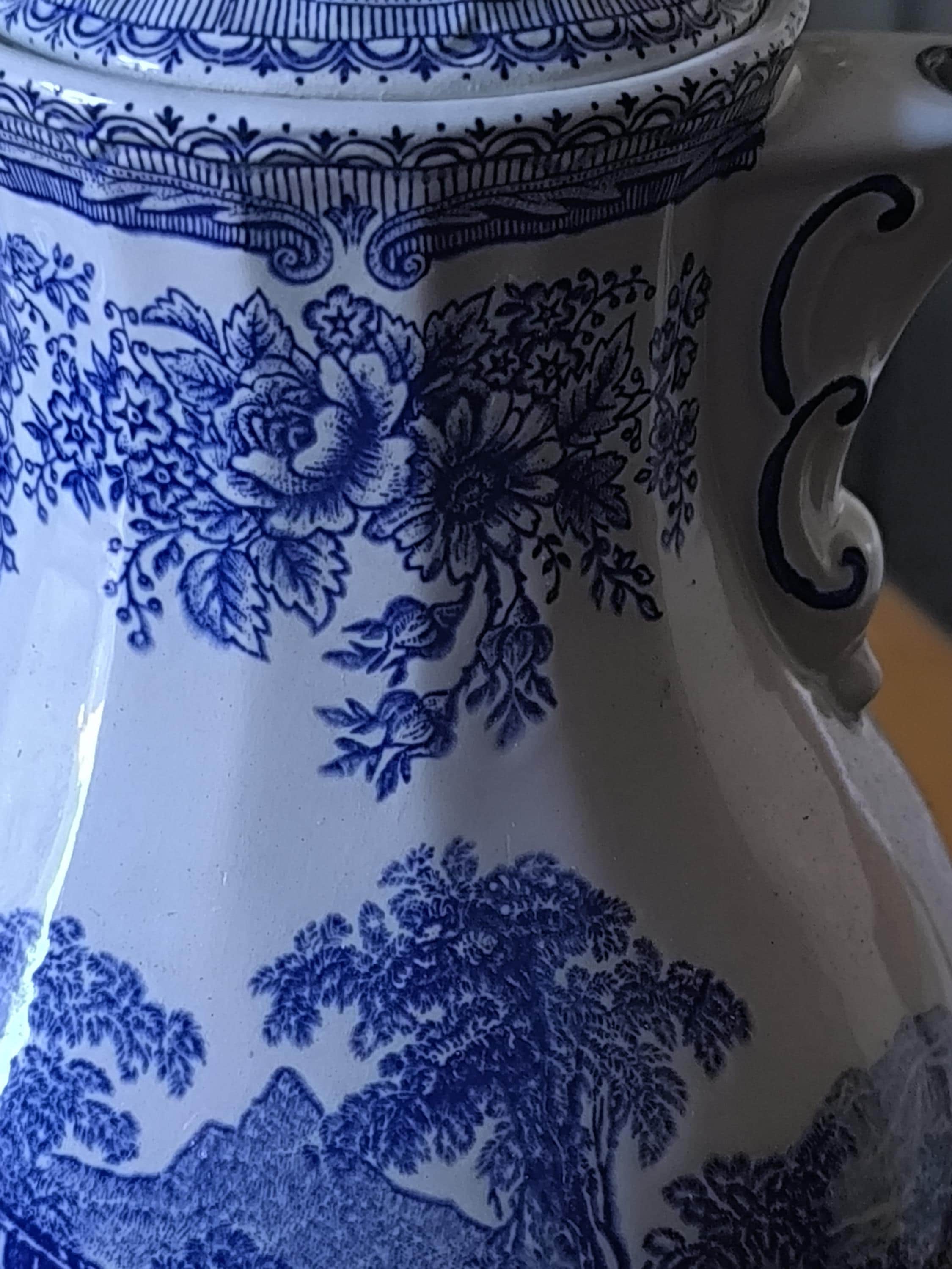 Discover this magnificent Lunéville earthenware coffee service by Keller & Guérin, "English" pattern, an exceptional piece that will bring a touch of timeless elegance to your gatherings. Inspired by the Louis XV style, this service is distinguished by its delicate blue and white motifs, evoking refined pastoral and floral scenes.