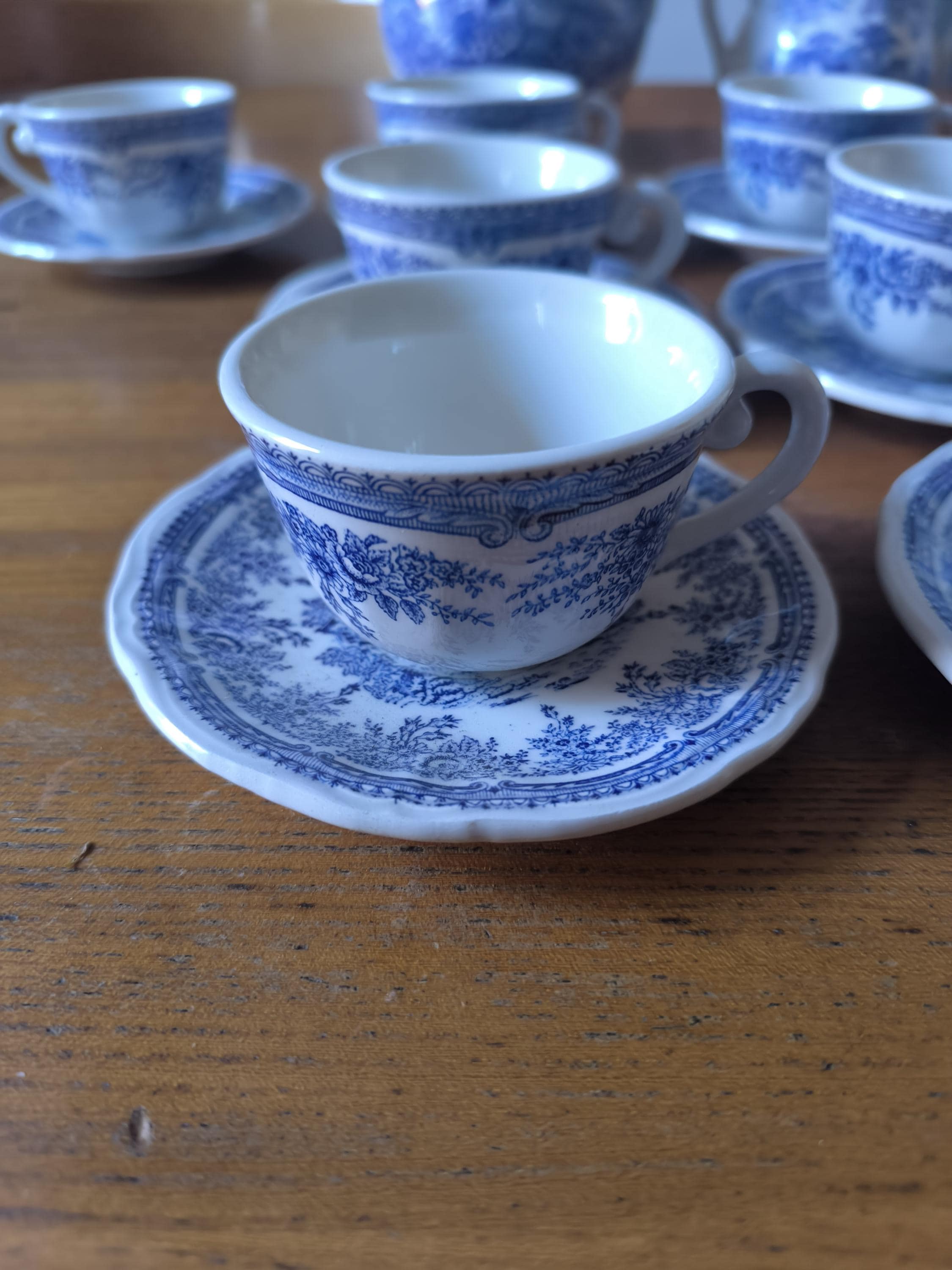 Lunéville coffee service, English pattern, country decor, circa 1950/1970, ten cups and saucers, coffee pot, sugar bowl, creamer, French tableware