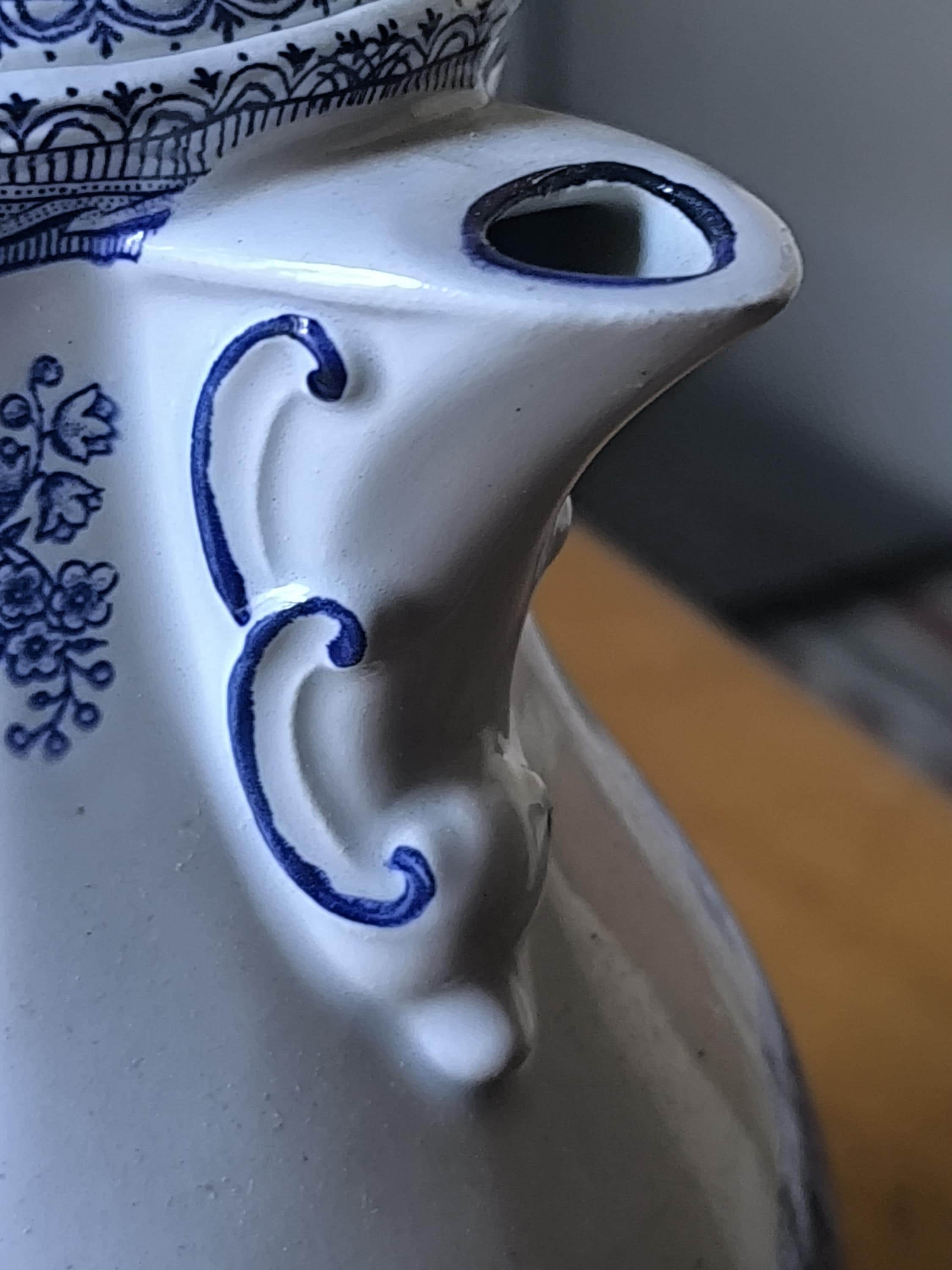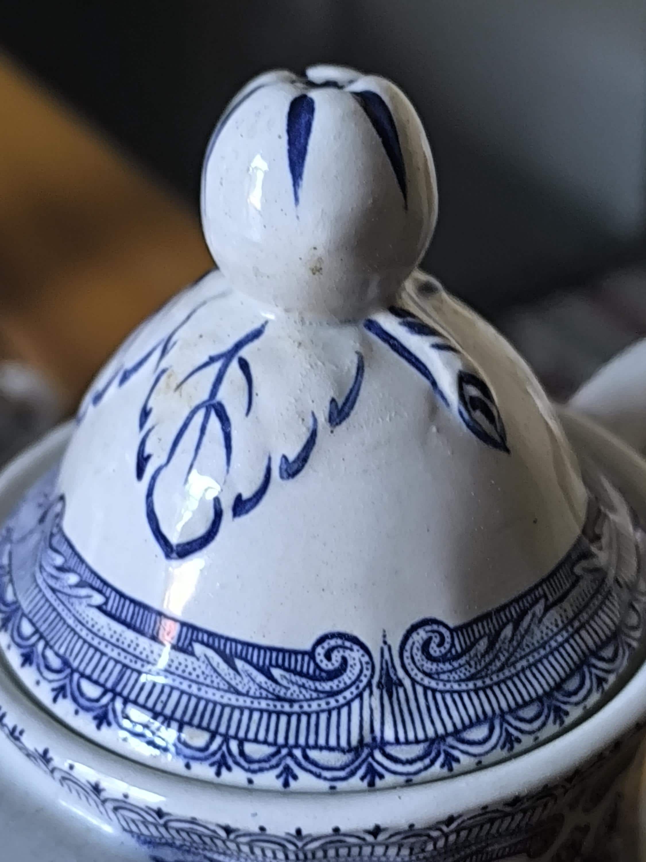Vintage Lunéville Keller & Guérin "English" Coffee Set - Blue & White Earthenware with Country Decor