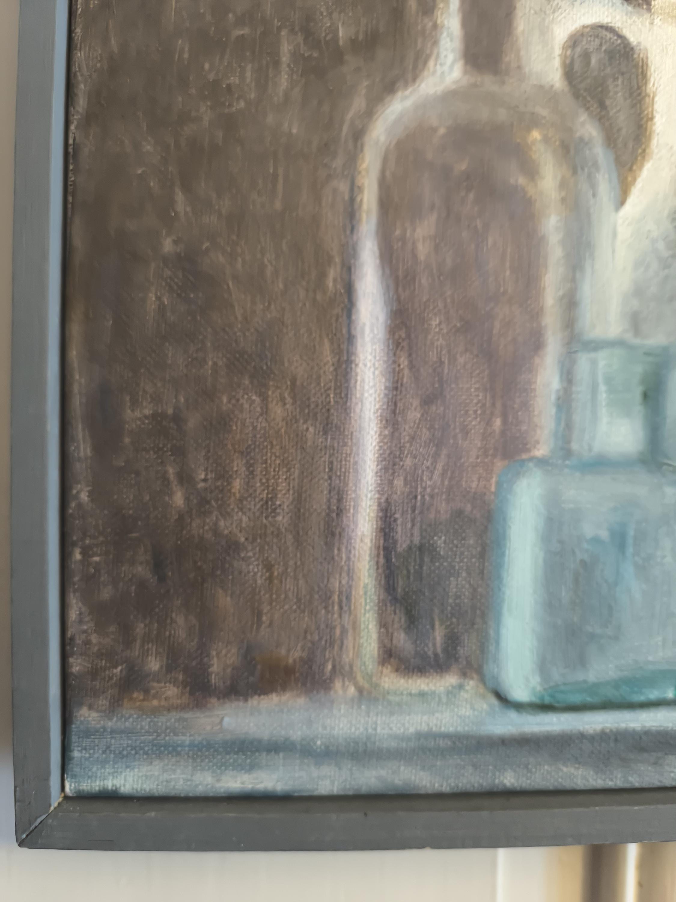 Oil on canvas signed Mireille BESSON (1931- "Still Life with Coffee Pot" Timeless Elegance and Rustic Charm