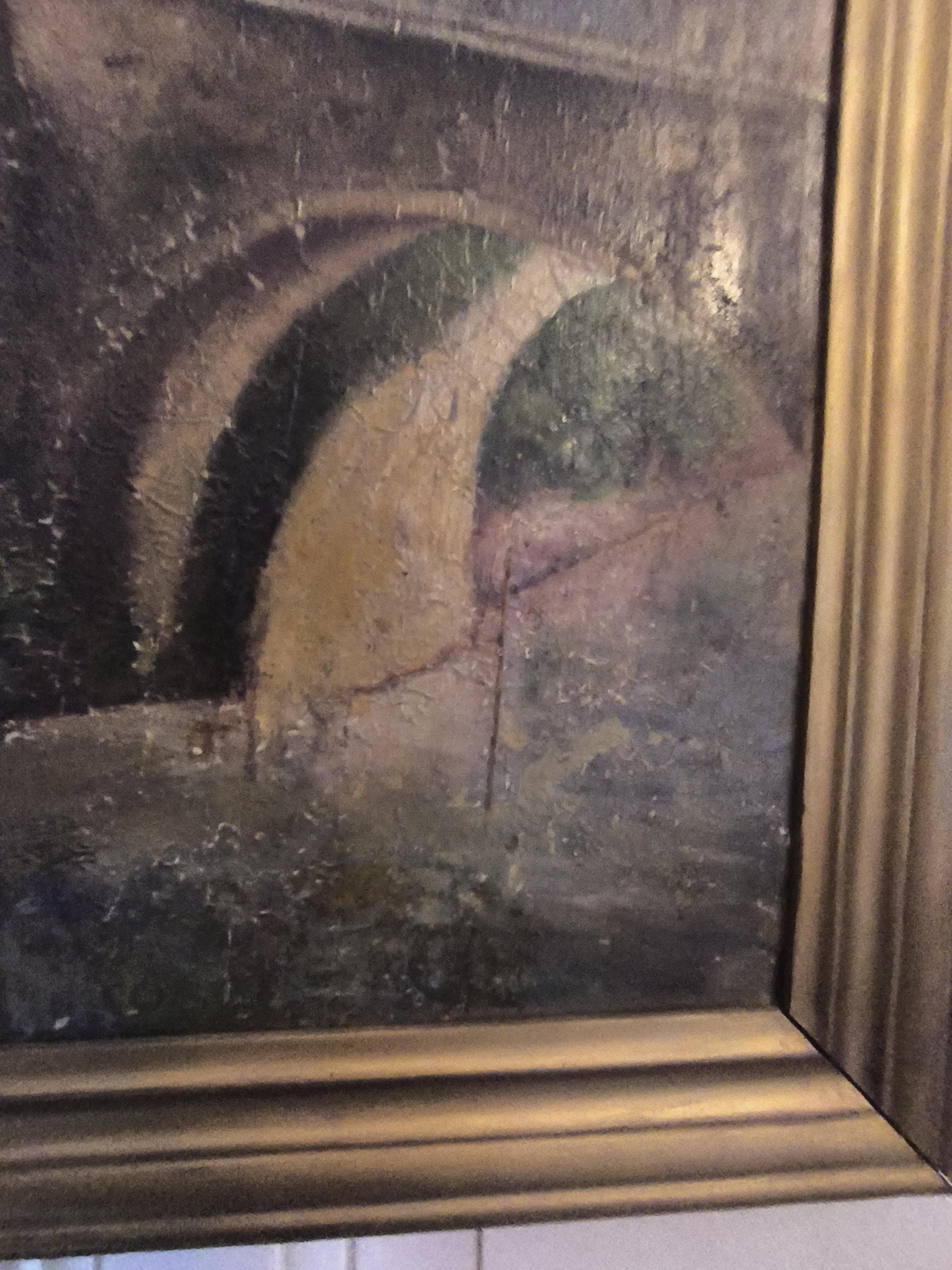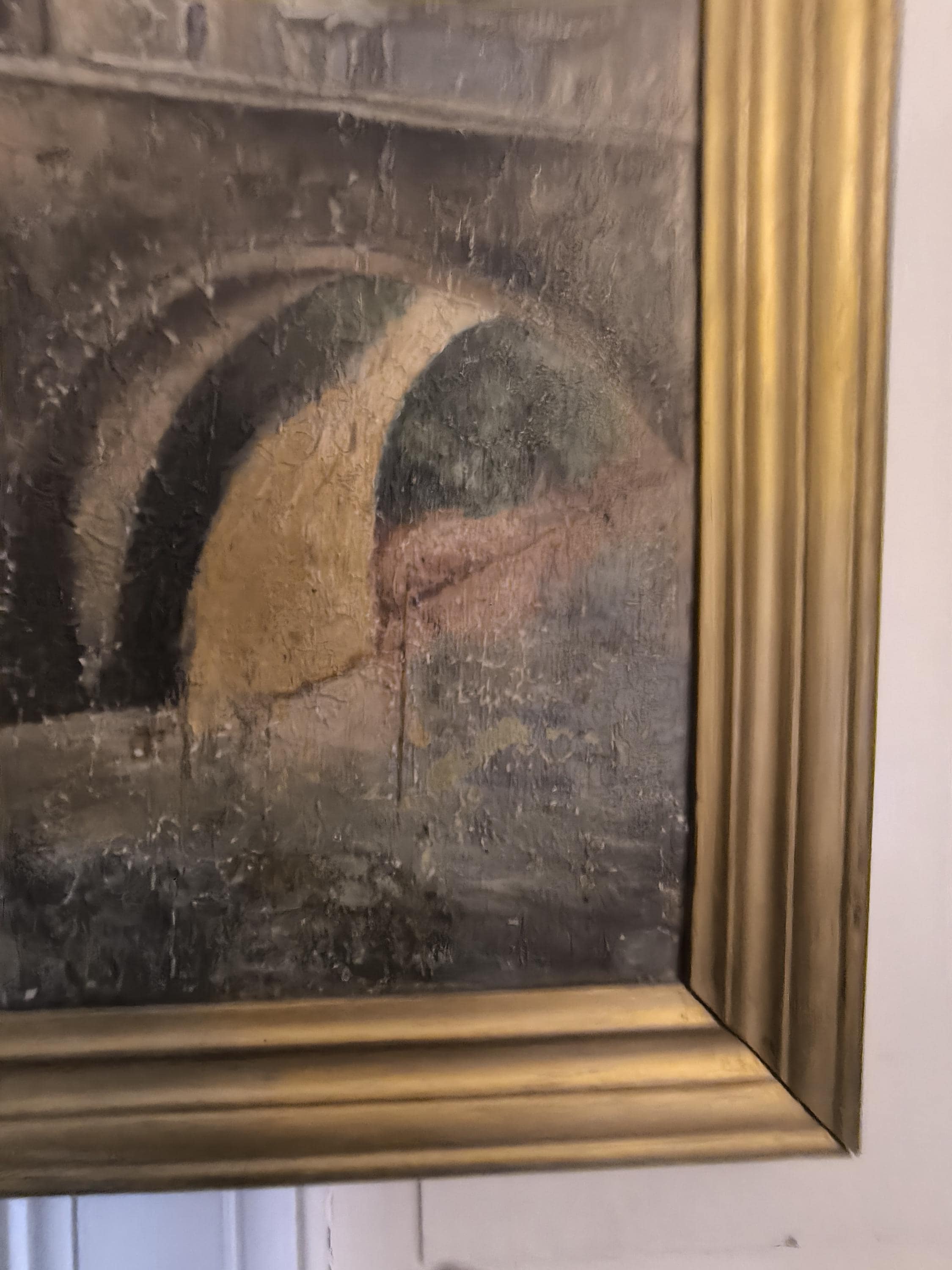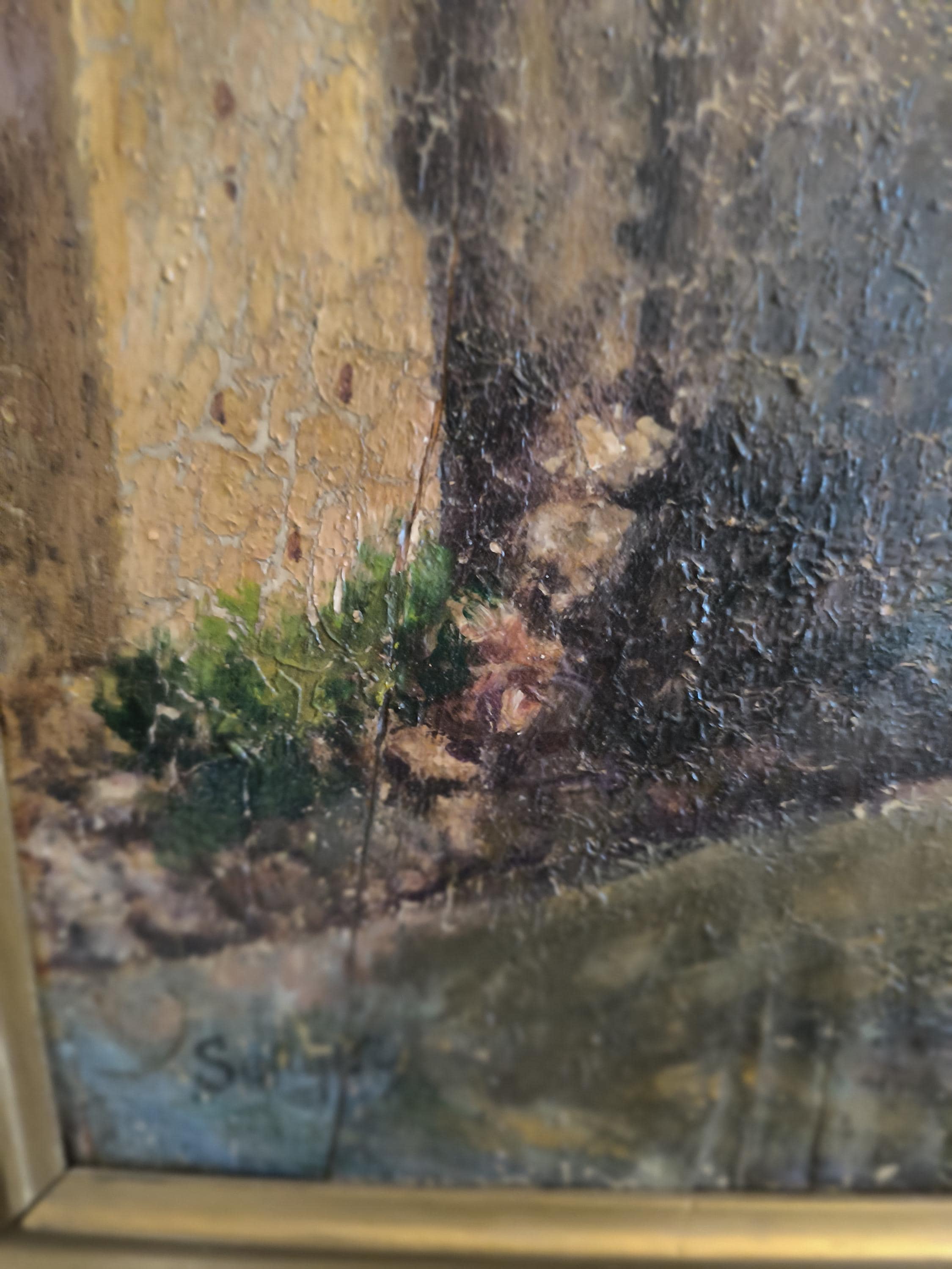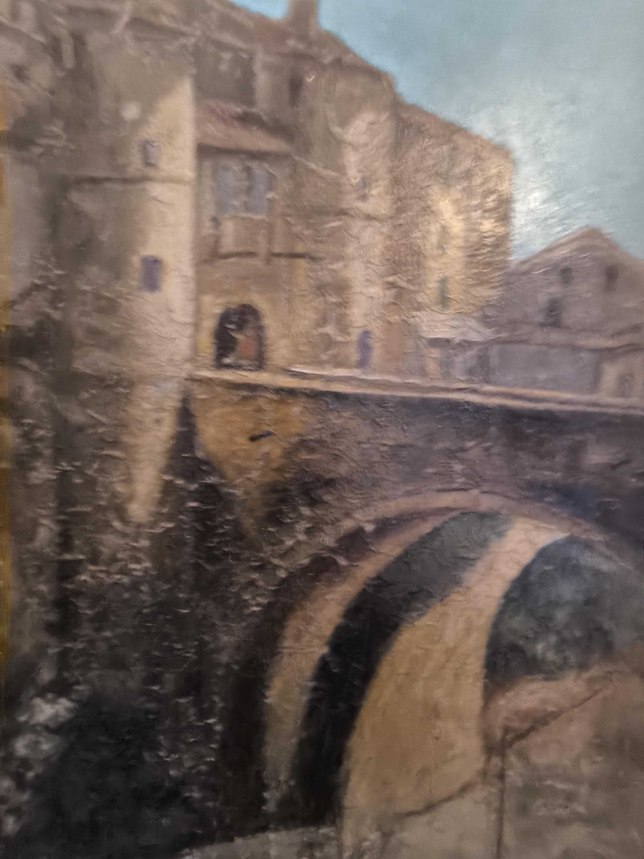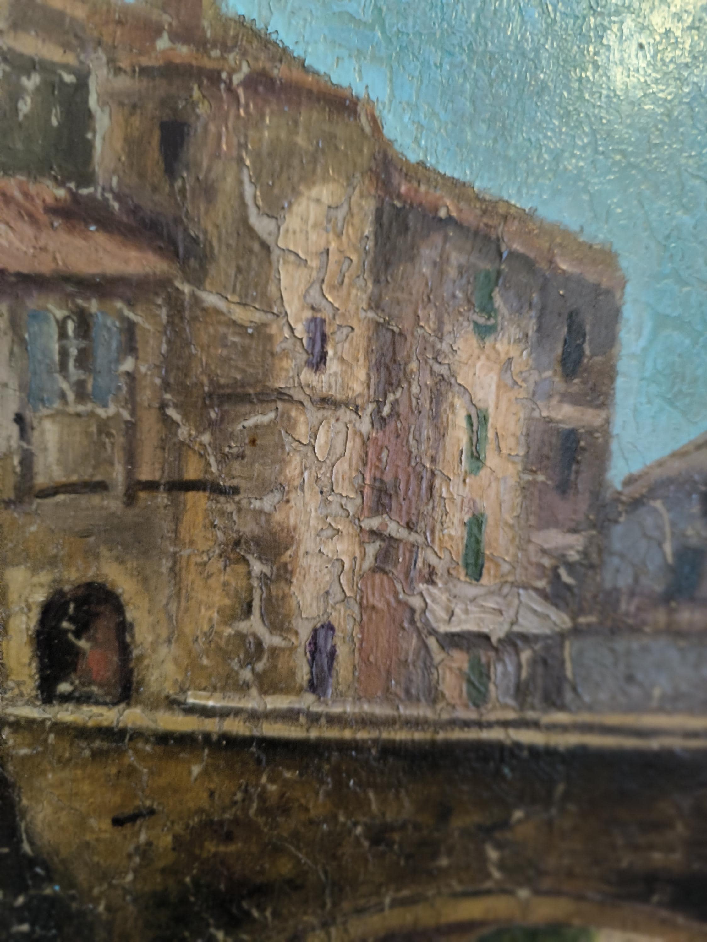 Historic bridge of Entrevaux: Oil on panel signed Senger, picturesque landscape of the south of France