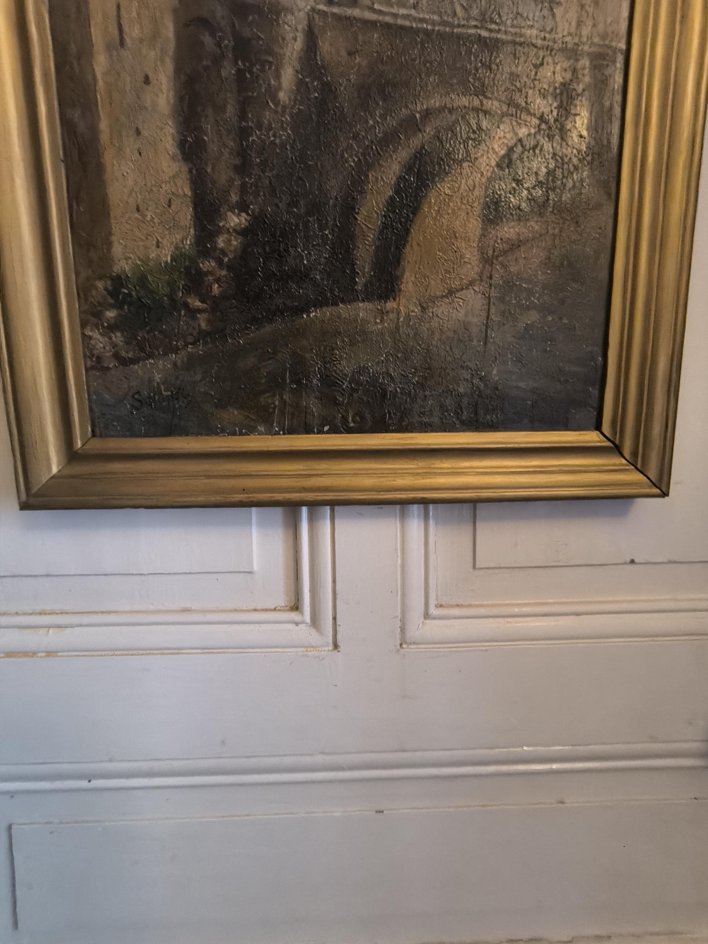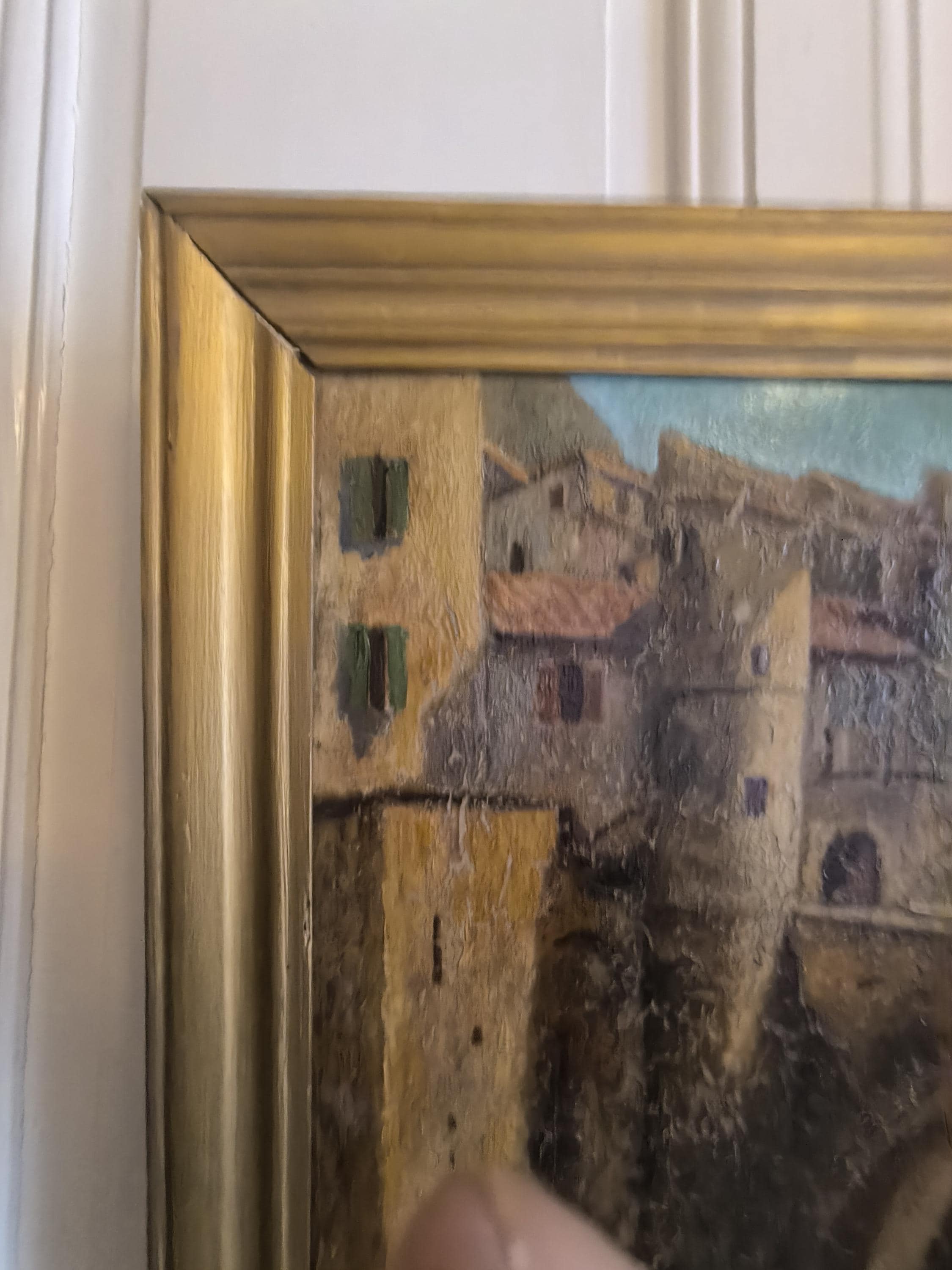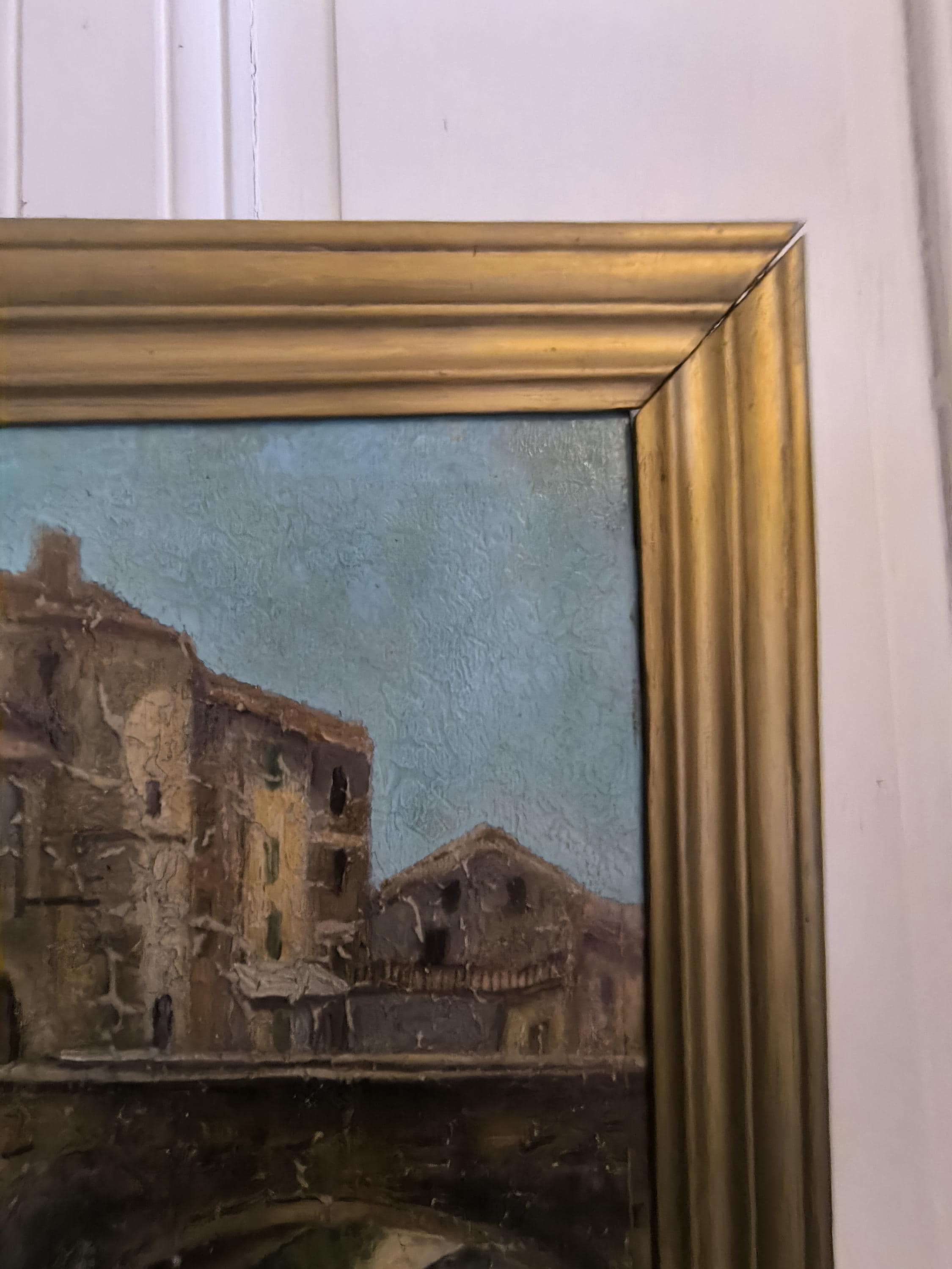 The painting is presented in a classic gold frame, which enhances the artwork without overwhelming it. This painting is an ideal piece for art lovers, collectors of vintage works, or anyone looking to add a touch of history and French charm to their home. It evokes the timeless beauty of the landscapes of southern France and the region's architectural heritage.