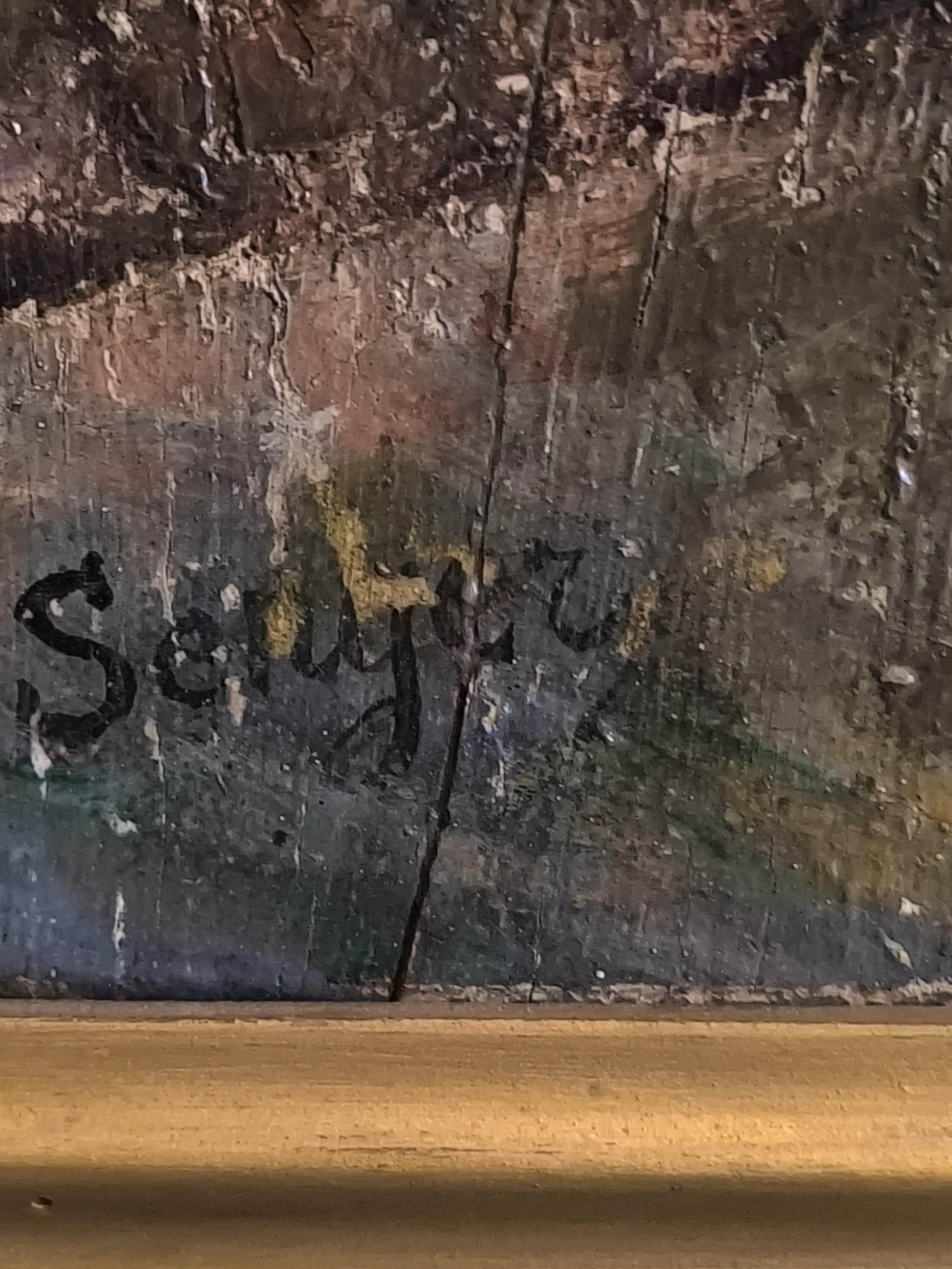 This oil on panel, signed by the artist Senger, captures the majesty of the renowned Pont d'Entrevaux, an architectural marvel nestled in the heart of the picturesque village of Entrevaux in southern France. The work exquisitely depicts the bridge's imposing structure, its sturdy stone arches rising gracefully above a tranquil river. Ancient buildings, with ochre facades and red-tiled roofs, cling to the hillside, bearing witness to the rich history and authenticity of this medieval village.
