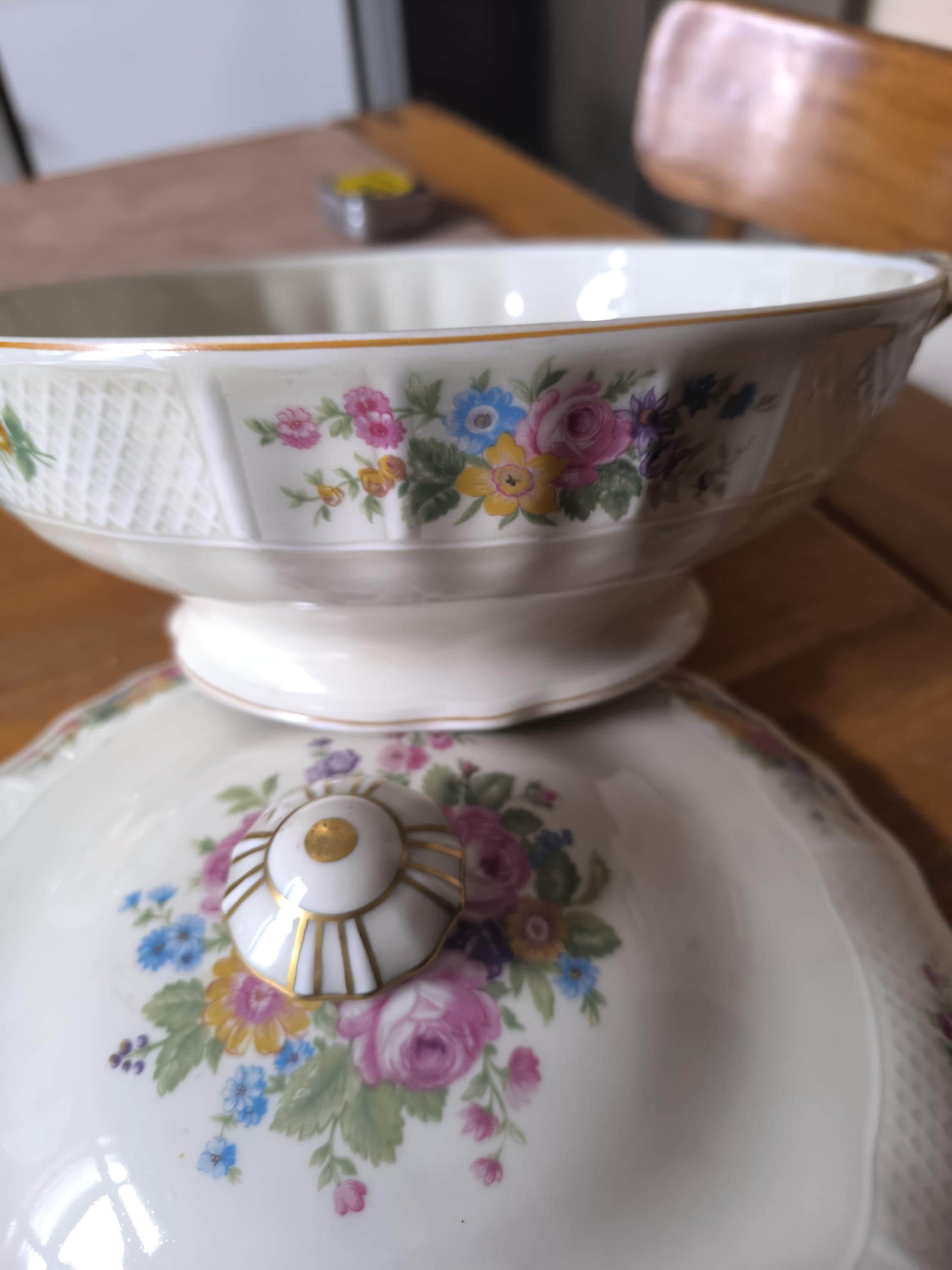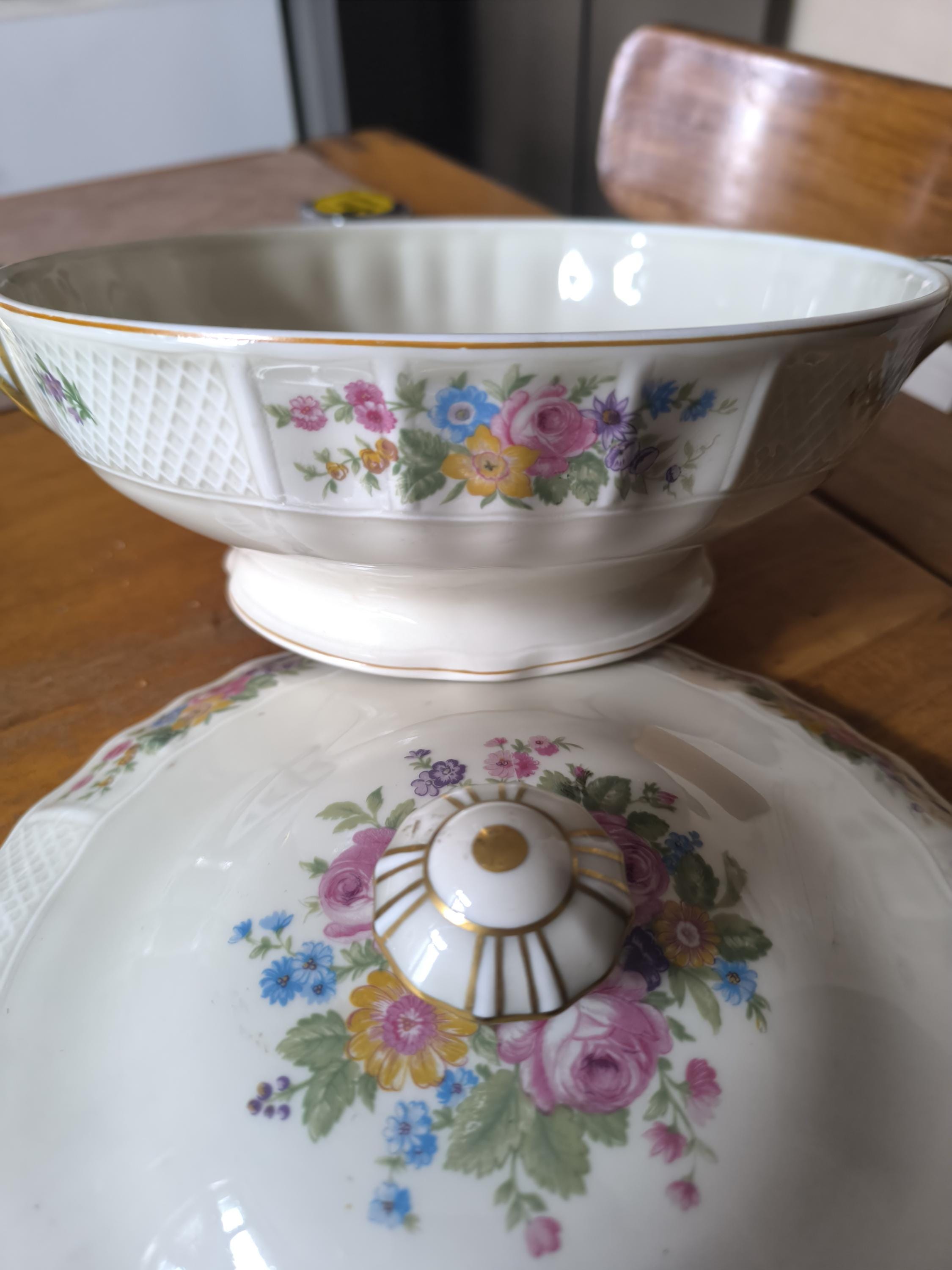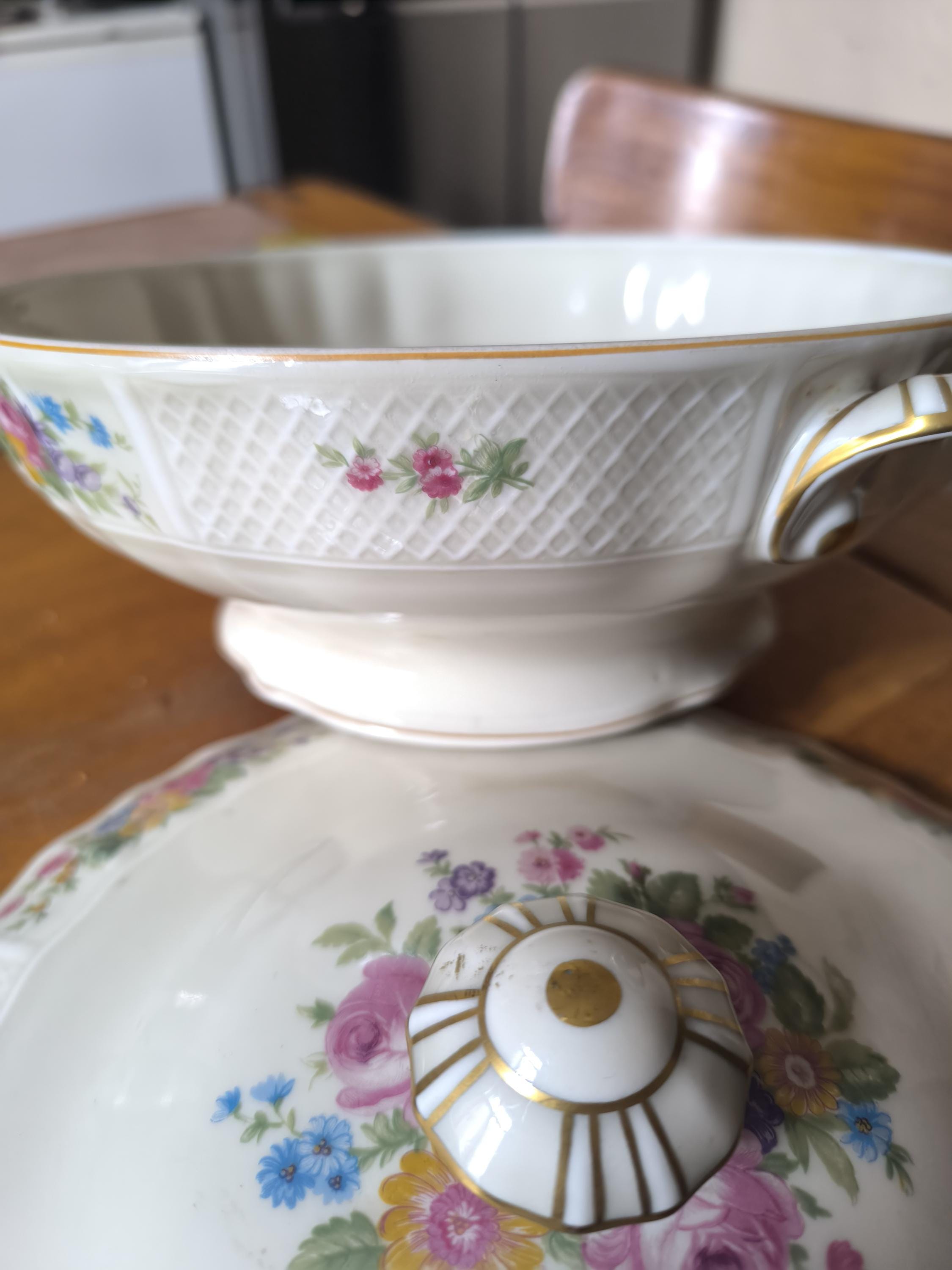 Bernardaud & Cie Limoges porcelain tureen with floral decoration, 1900/1927
