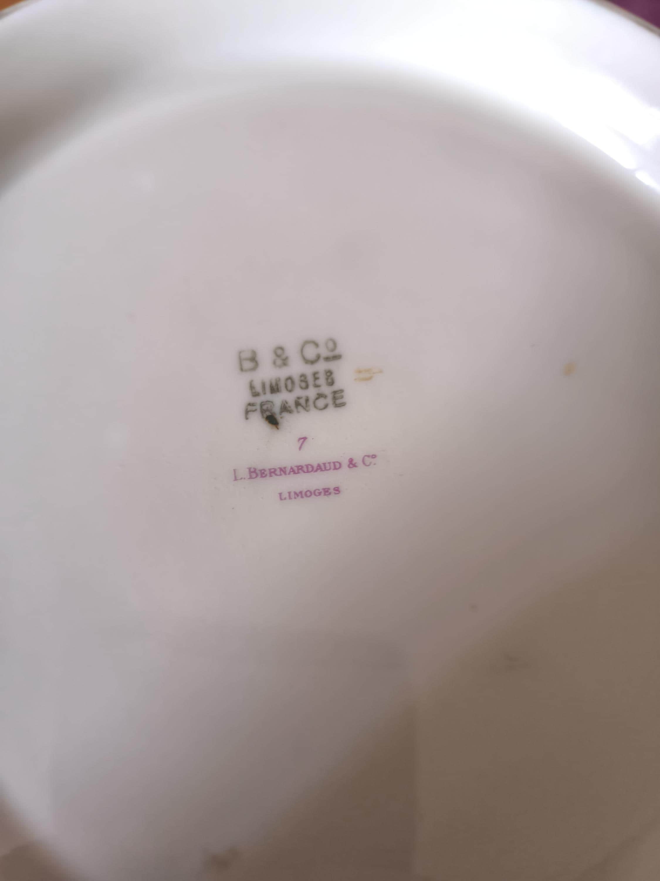 A lovely Limoges porcelain tureen by Bernardaud & Cie, with the manufacturer's mark in use from 1900 to 1927. The company was located at 5 chemin de la Borie in Limoges at the time.