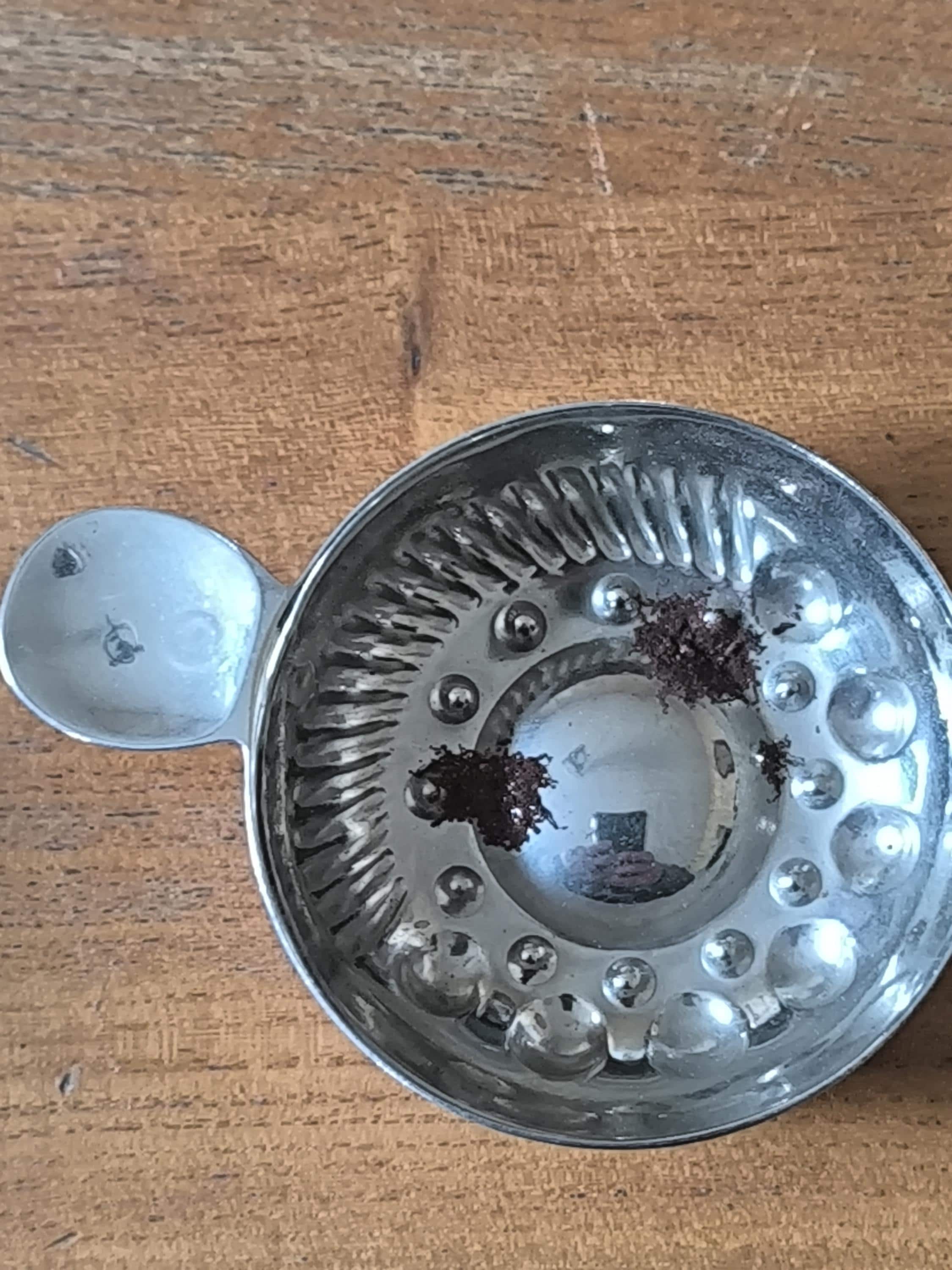 Set of silver-plated metal and tinplate wine tasting glasses, including Amora