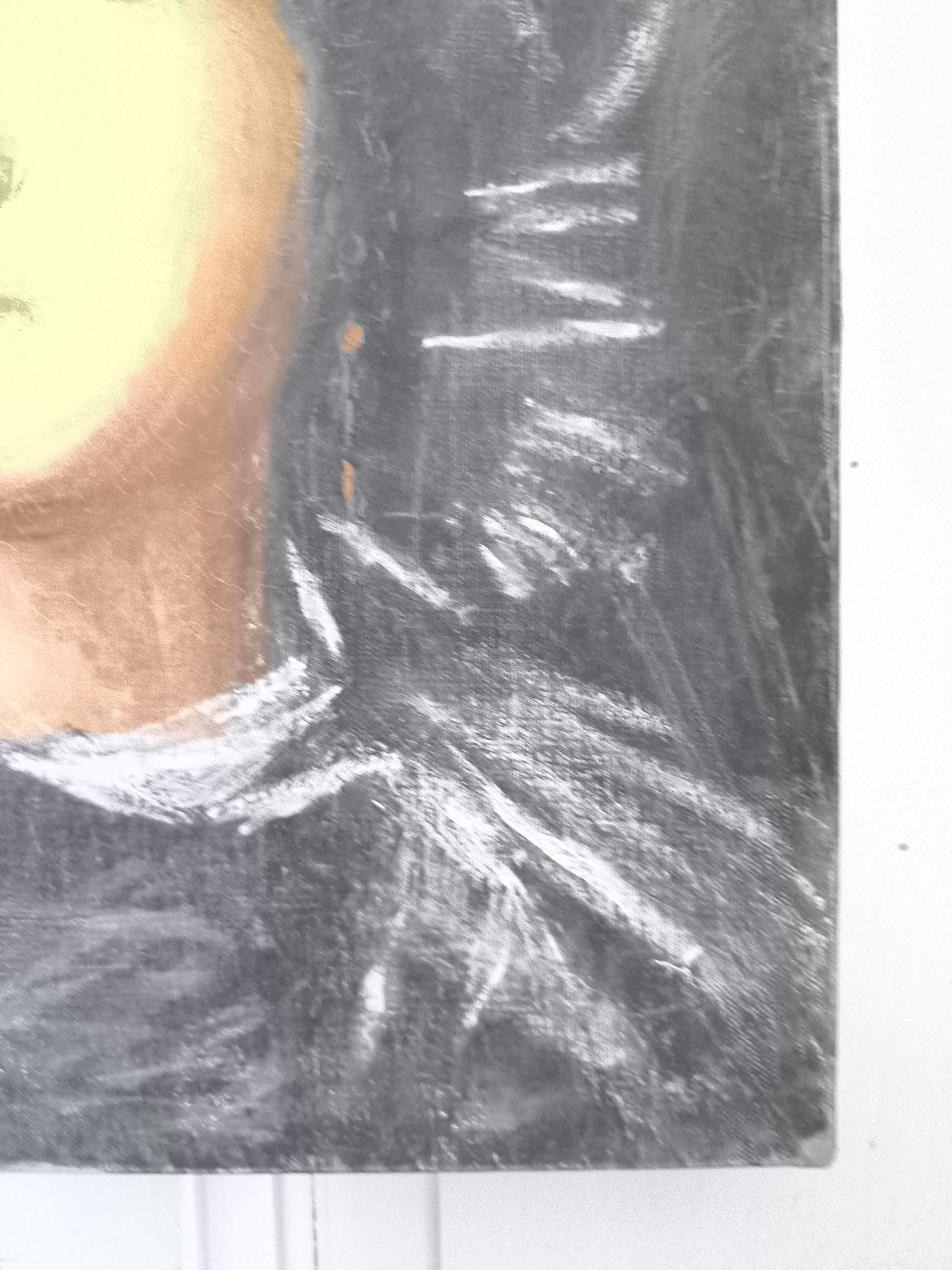 La toile est en bon état on note un manque en haut à gauche et de petites perforations