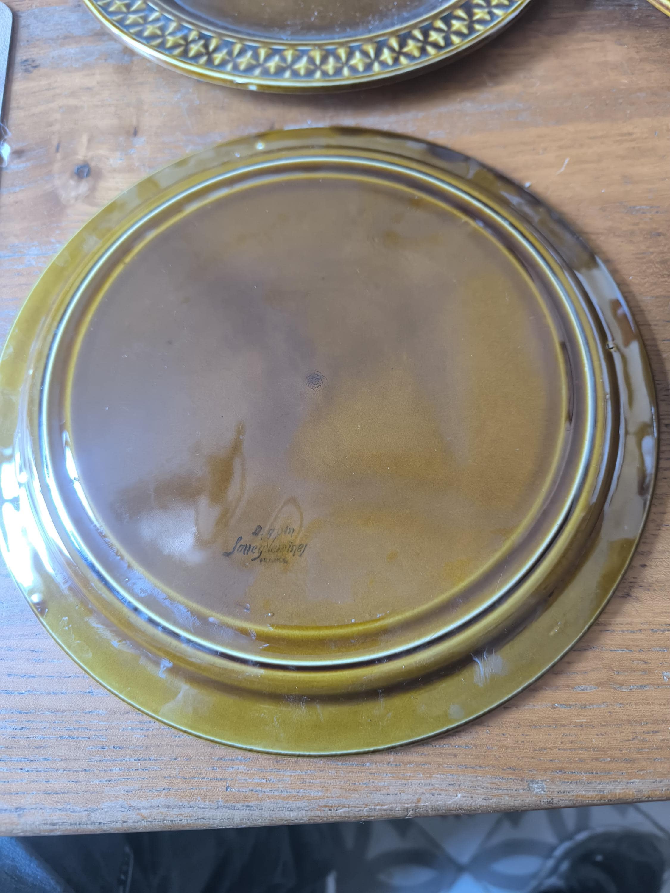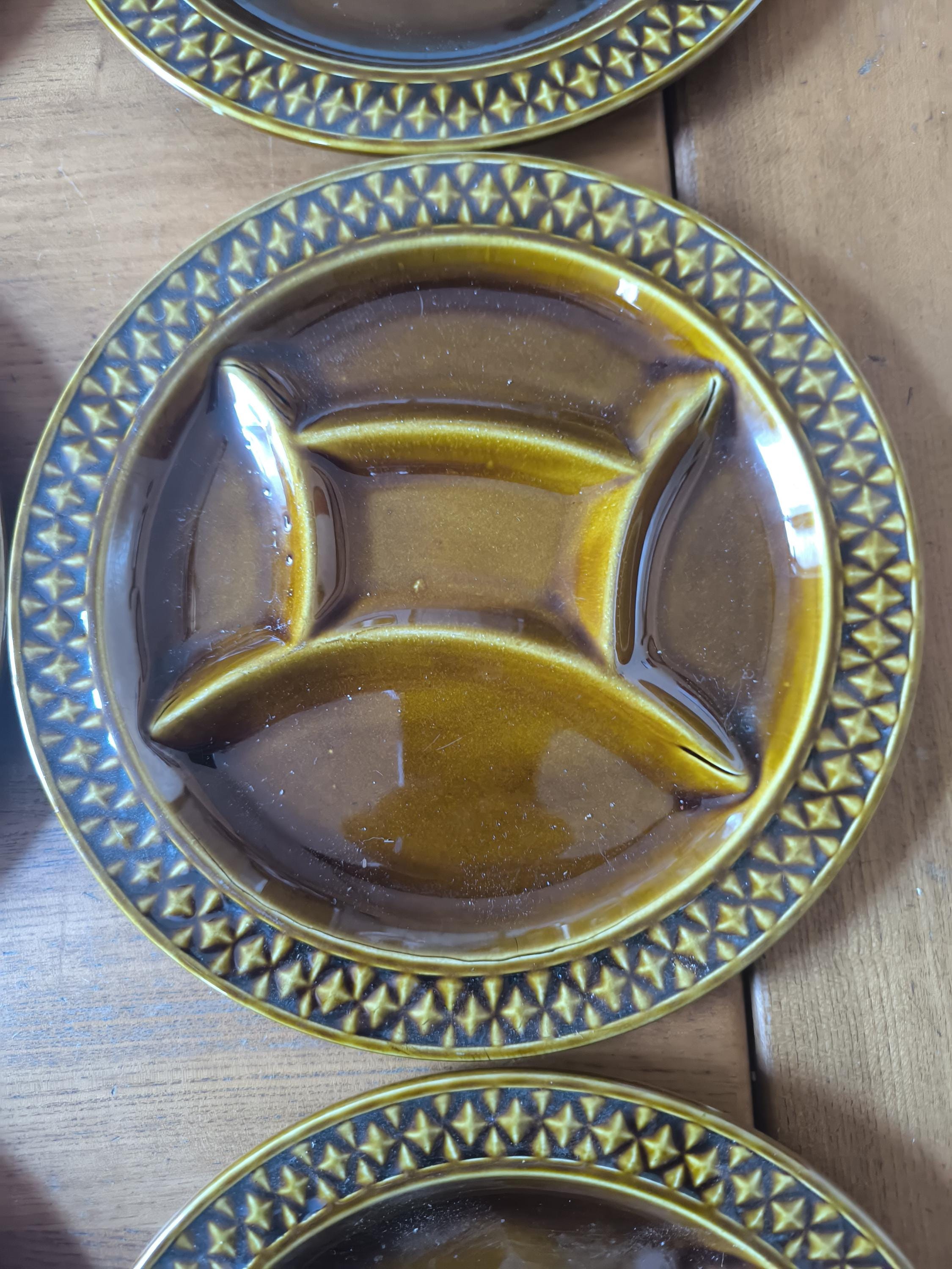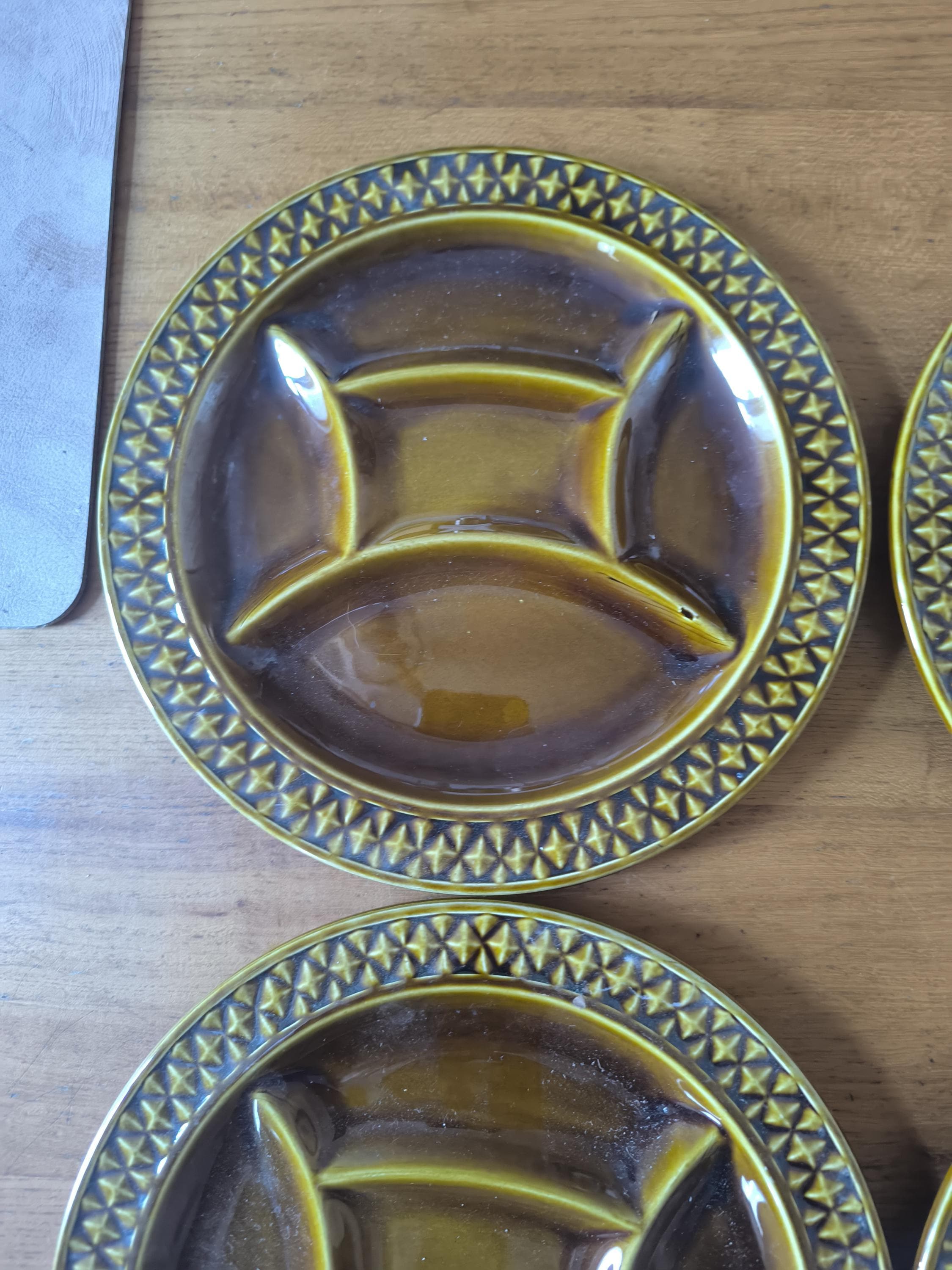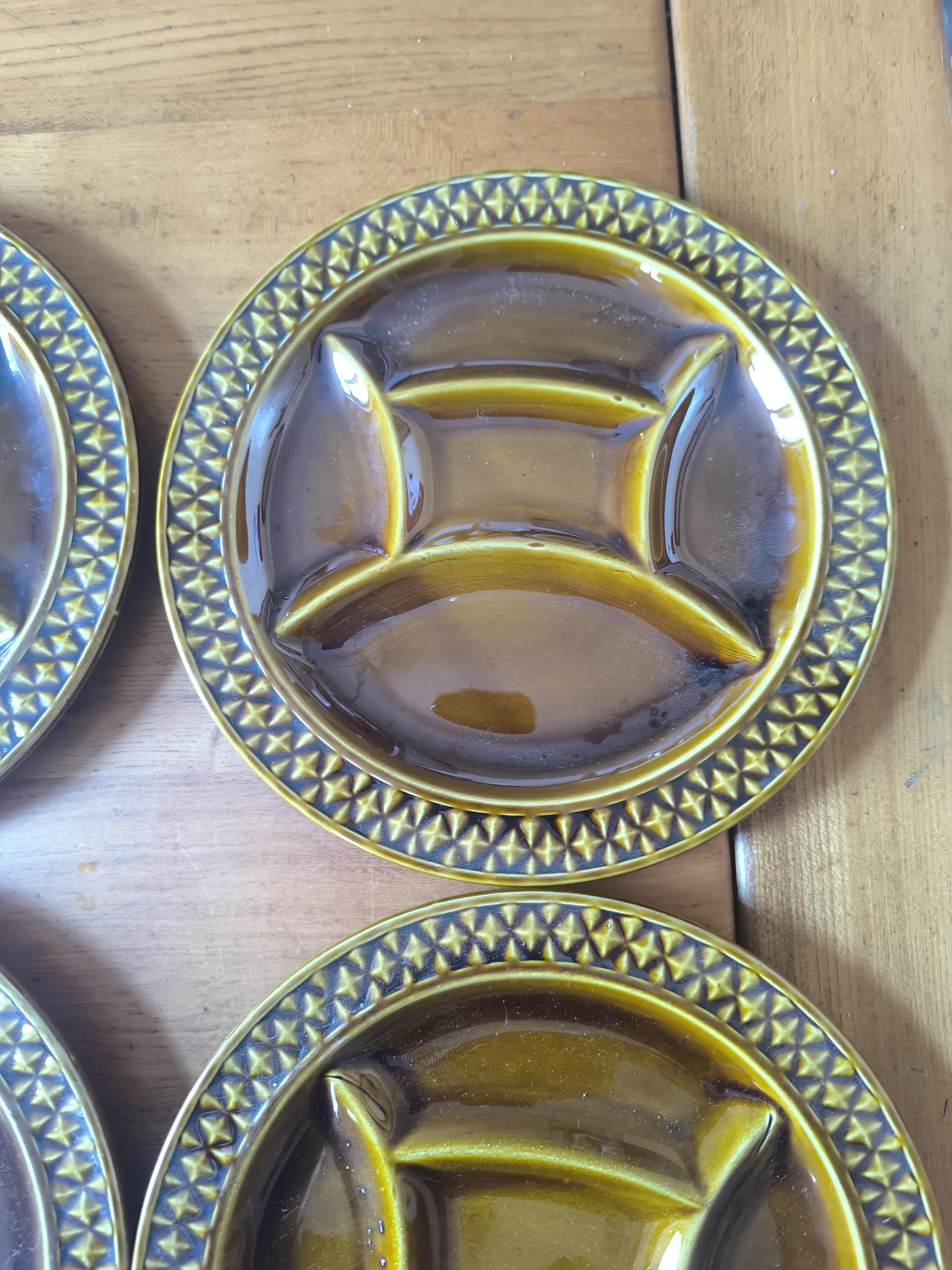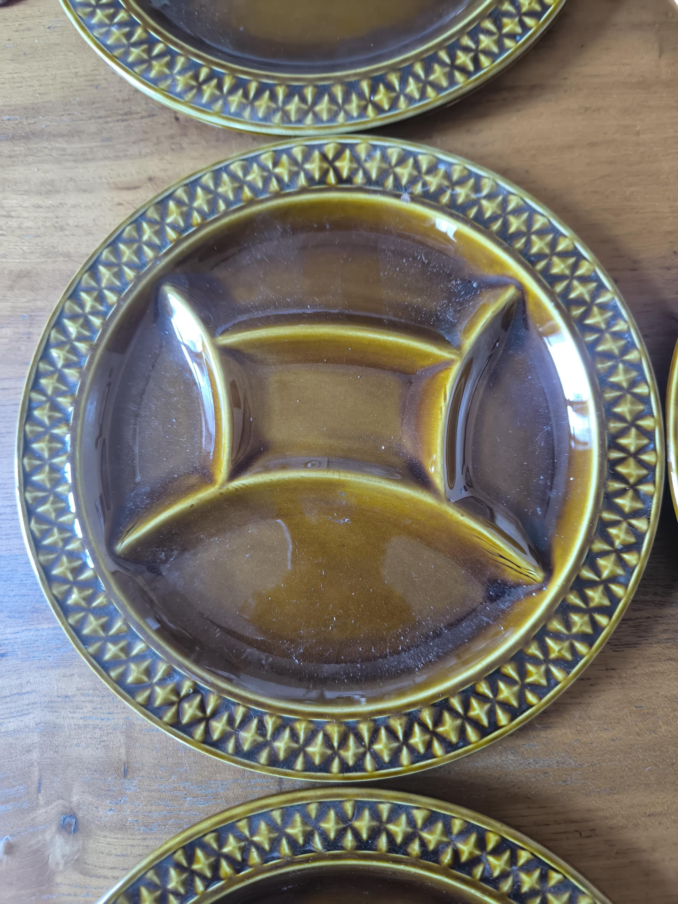 belle suite de 8 assiettes à fondue en faïence de Sarreguemines