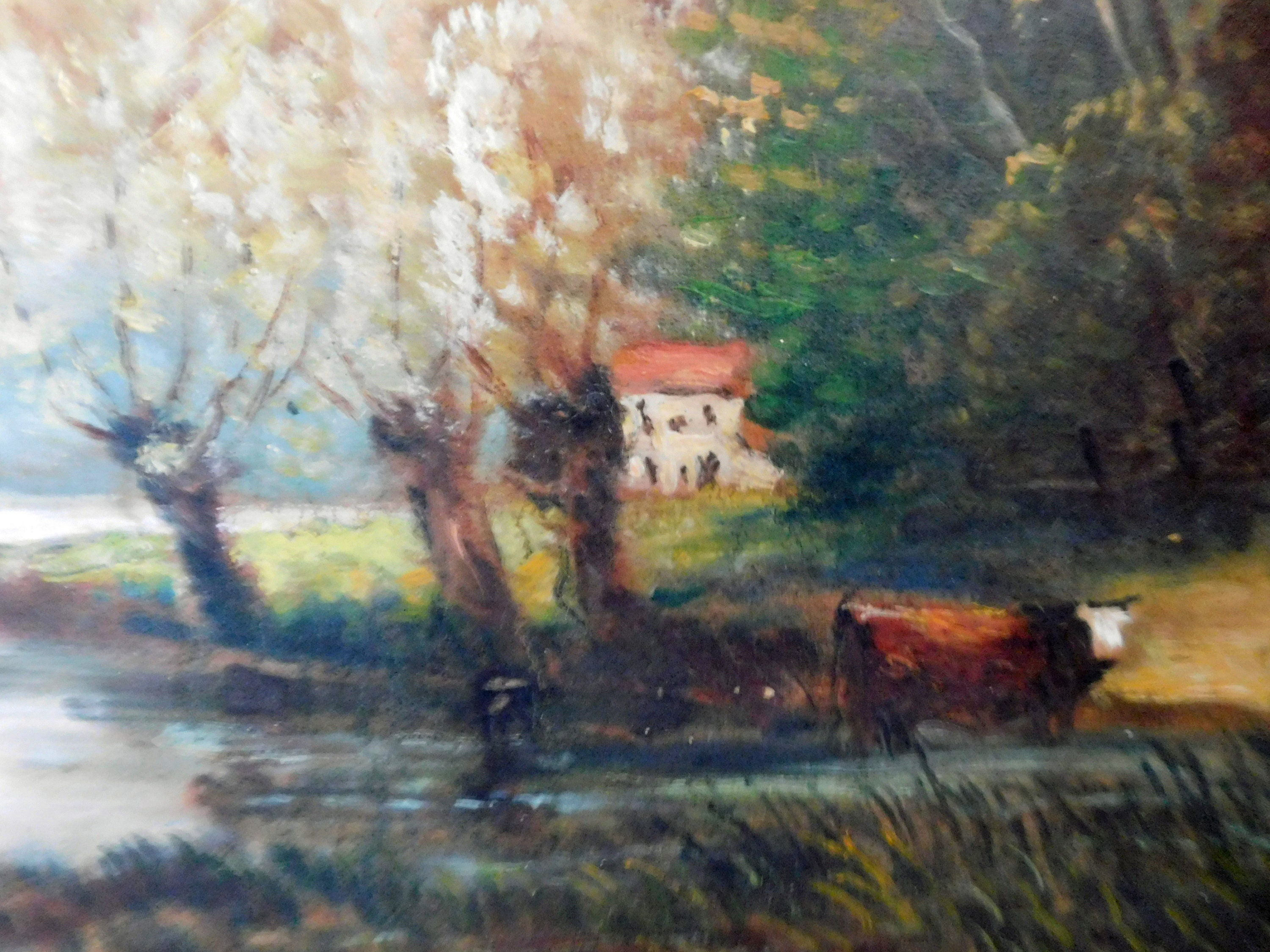 Lucien DALEZA (20th century) known as LAROUSSE "Farmer and Cow in the Meadow in Autumn" oil on canvas French school